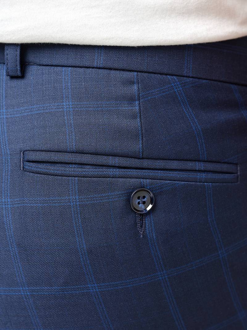 Classic fit (ПОЛУПРИЛЕГАЮЩИЙ СИЛУЭТ). Классические брюки без защипов с боковыми наклонными карманами и двумя задними.