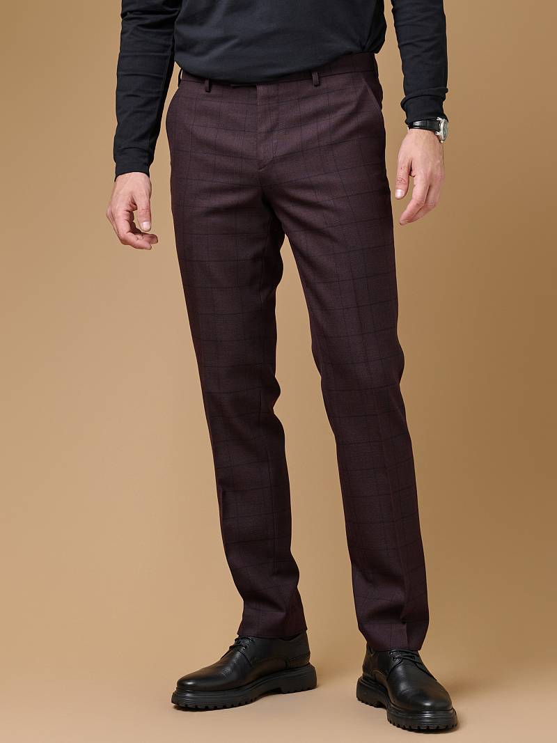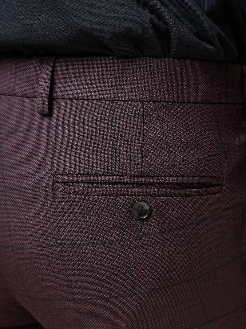Slim fit (ПРИЛЕГАЮЩИЙ СИЛУЭТ), рекомендуется брать на размер больше. Классические брюки без защипов, боковые наклонные карманы и два задниих кармана.