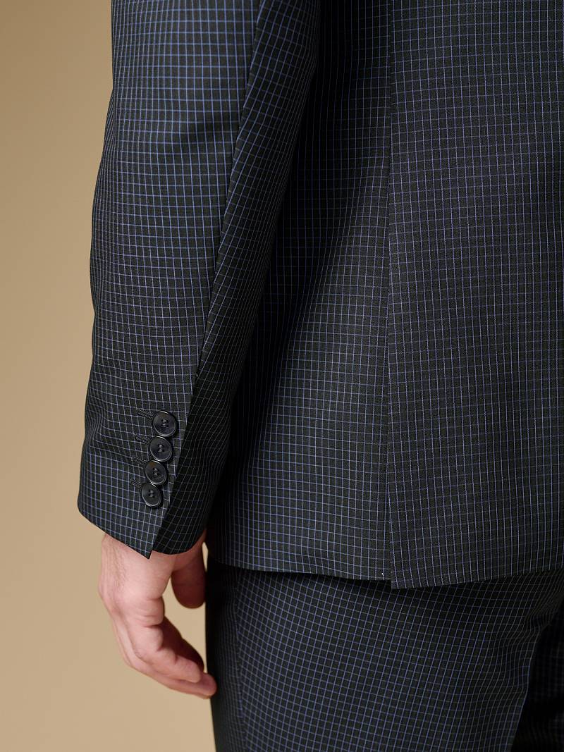 Классический костюм двойка Slim fit (ПРИЛЕГАЮЩИЙ СИЛУЭТ), рекомендуется брать на размер больше. Пиджак на две пуговицы, с боковыми и нагрудным карманами, по спинке две шлицы. Брюки без защипов с боковыми и двумя задними карманами.
