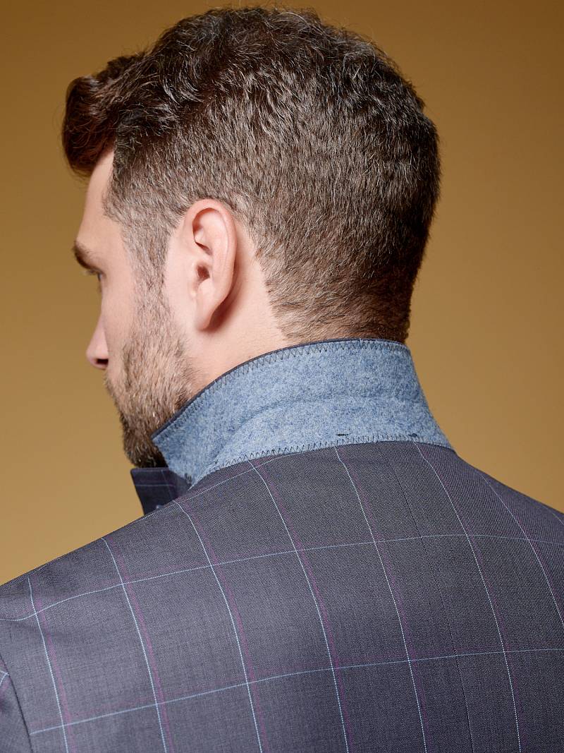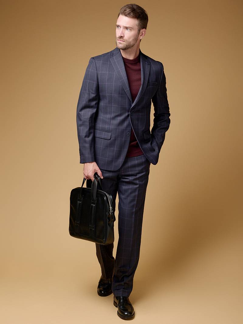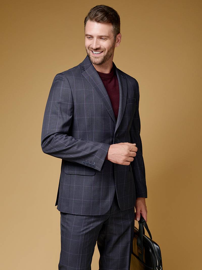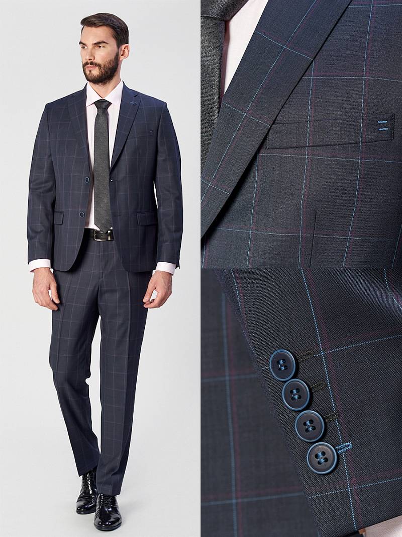 Классический костюм двойка Classic fit . Пиджак на две пуговицы, с боковыми и нагрудным карманами, по спинке две шлицы. Брюки без защипов с боковыми и одним задним карманом.