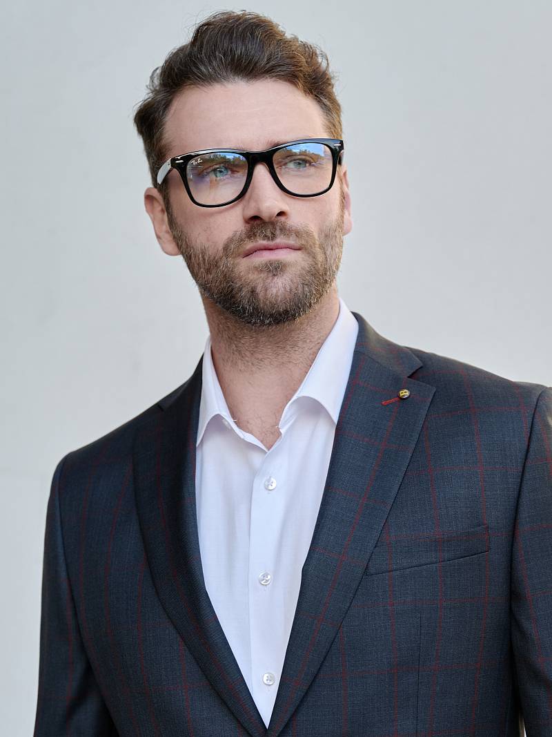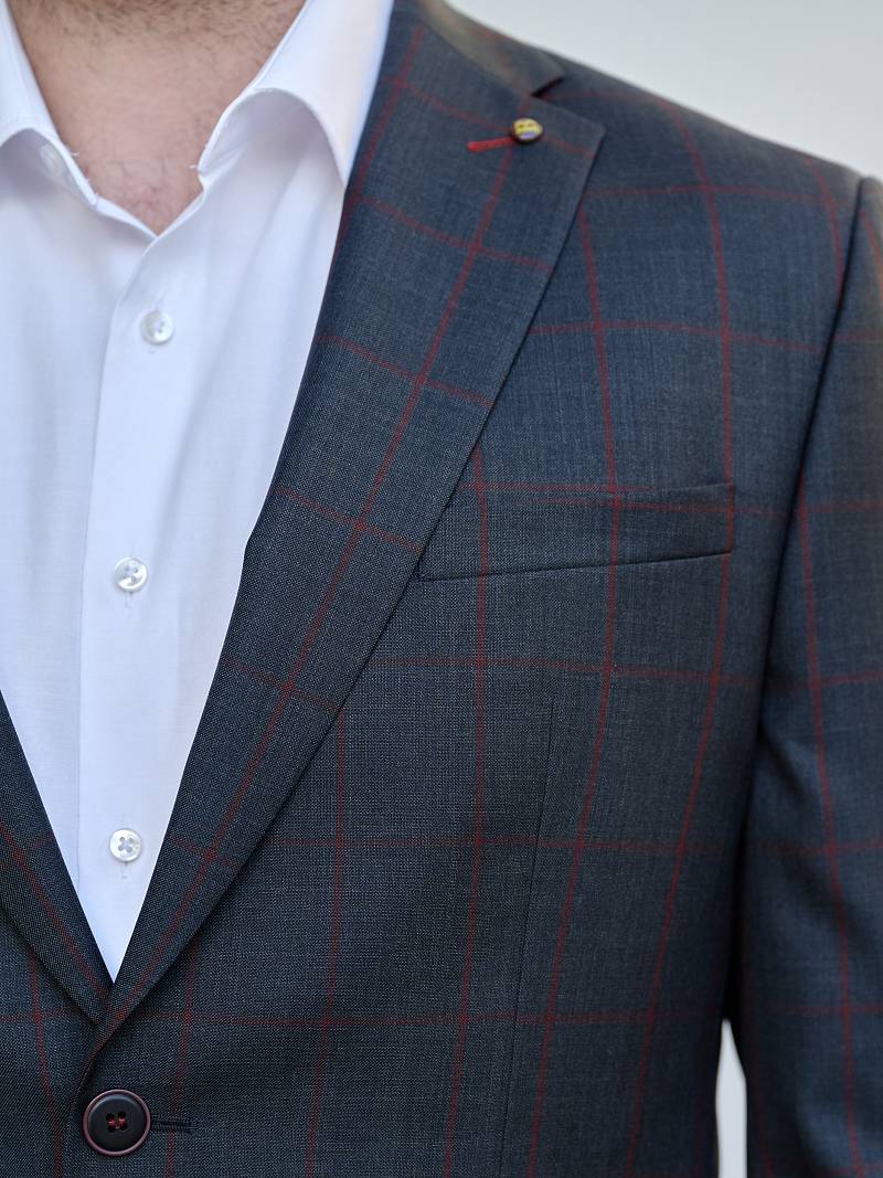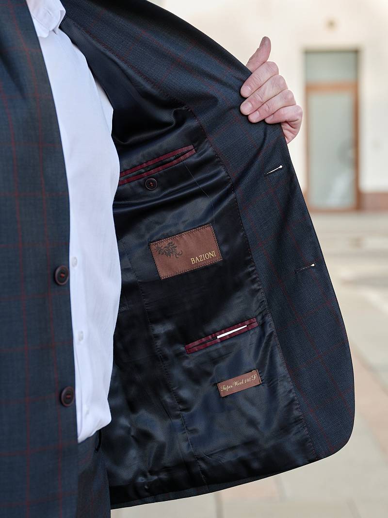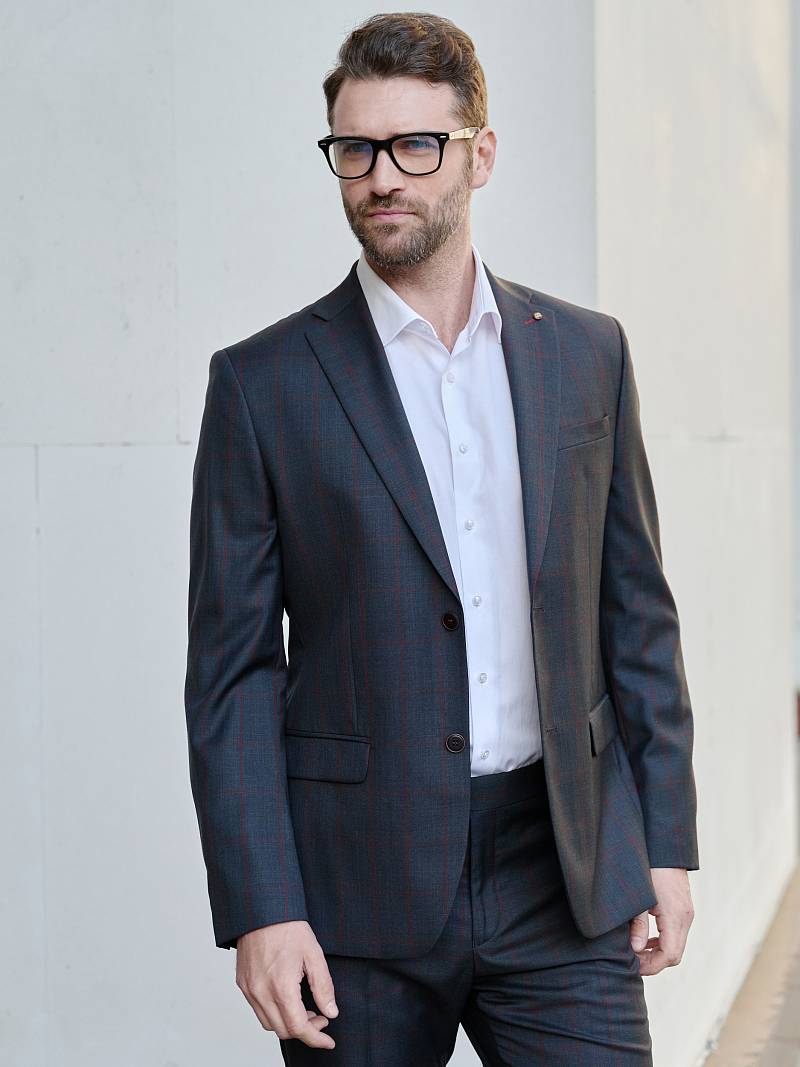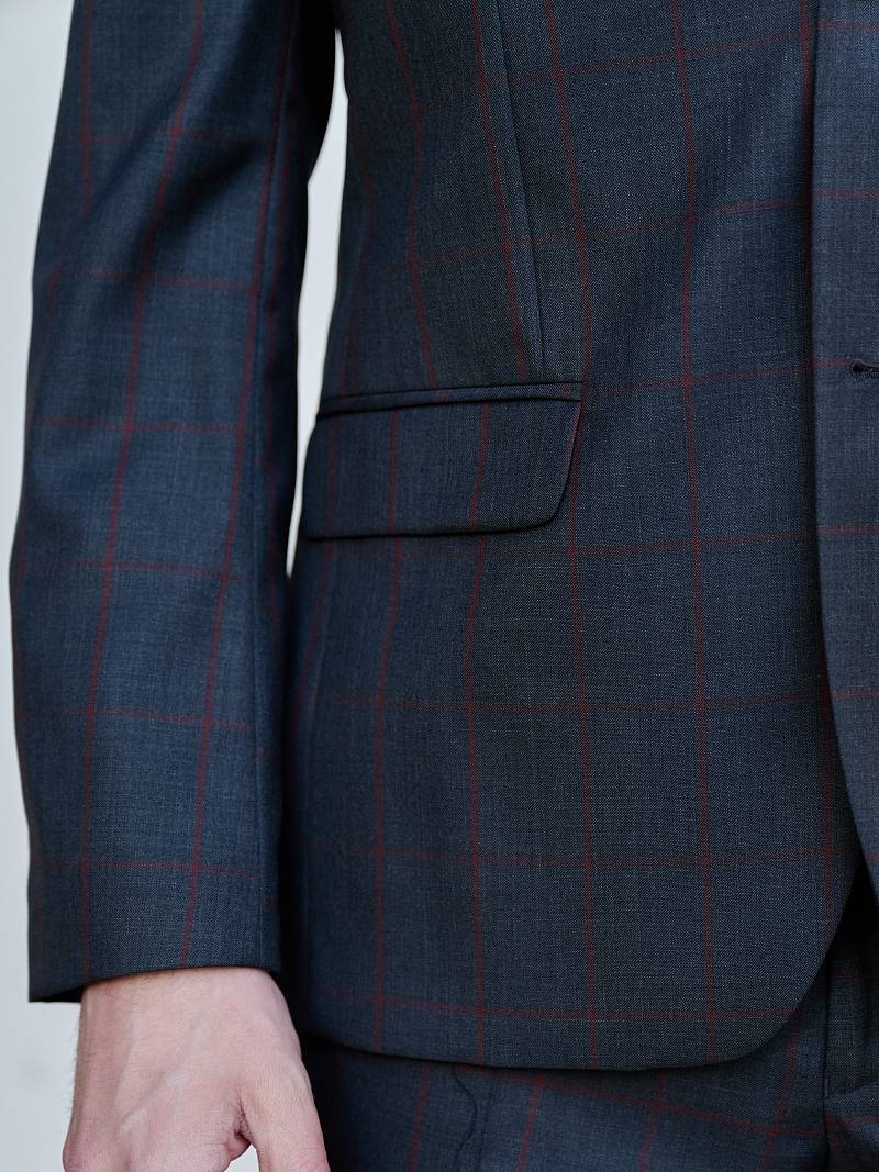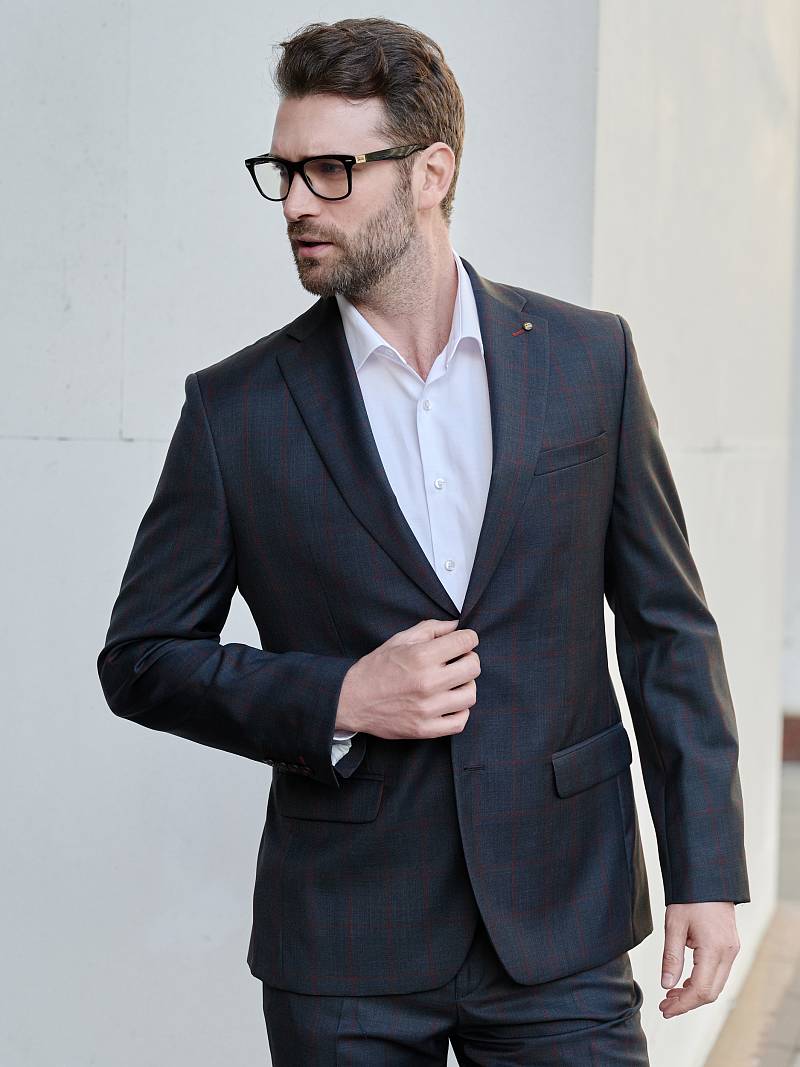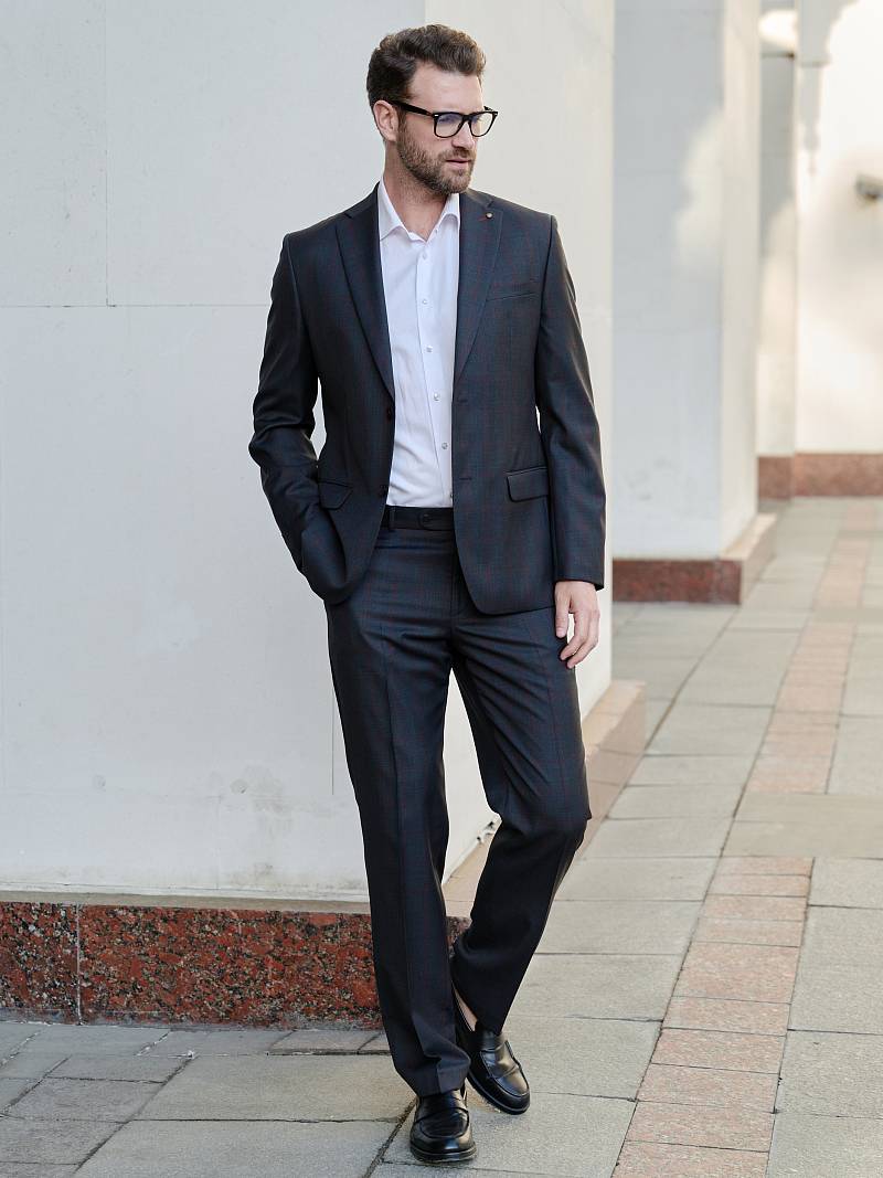 Классический костюм двойка Classic fit . Пиджак на две пуговицы, с боковыми и нагрудным карманами, по спинке две шлицы. Брюки без защипов с боковыми и одним задним карманом.