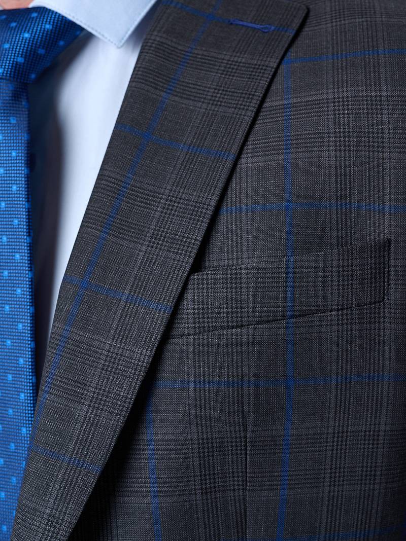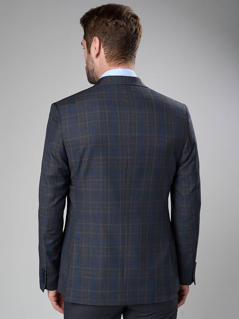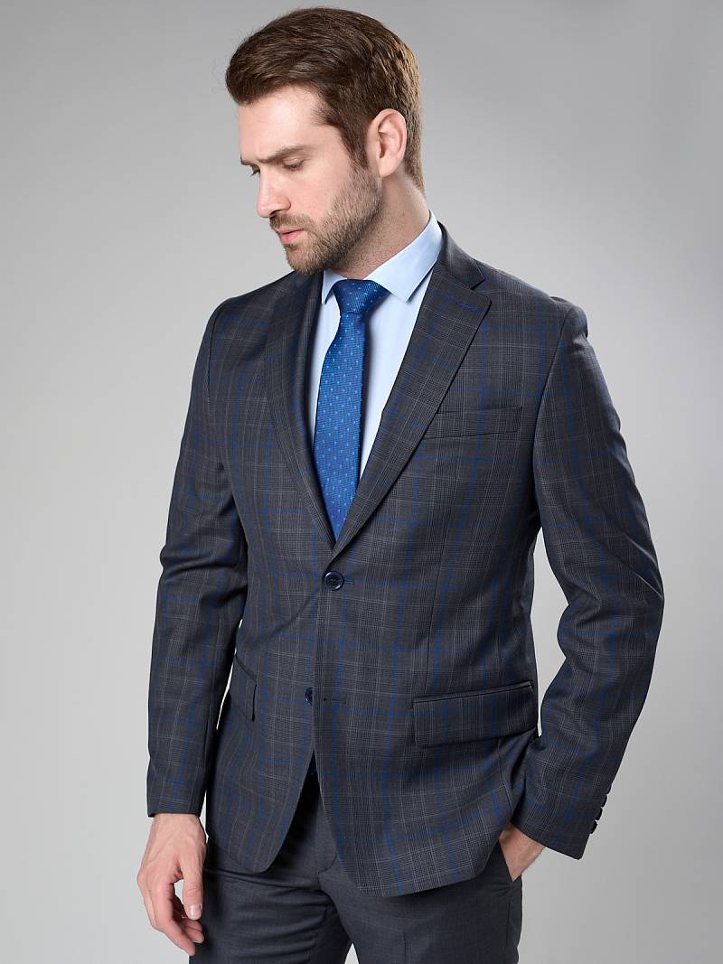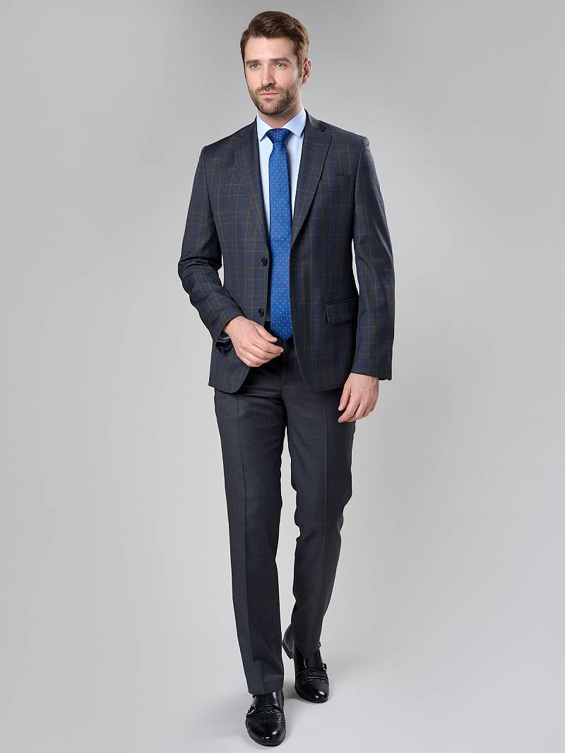 Классический костюм двойка Classic fit. Пиджак на две пуговицы, с боковыми и нагрудным карманами, по спинке две шлицы. Брюки без защипов с боковыми и одним задним карманом, выполнены из ткани компаньона.