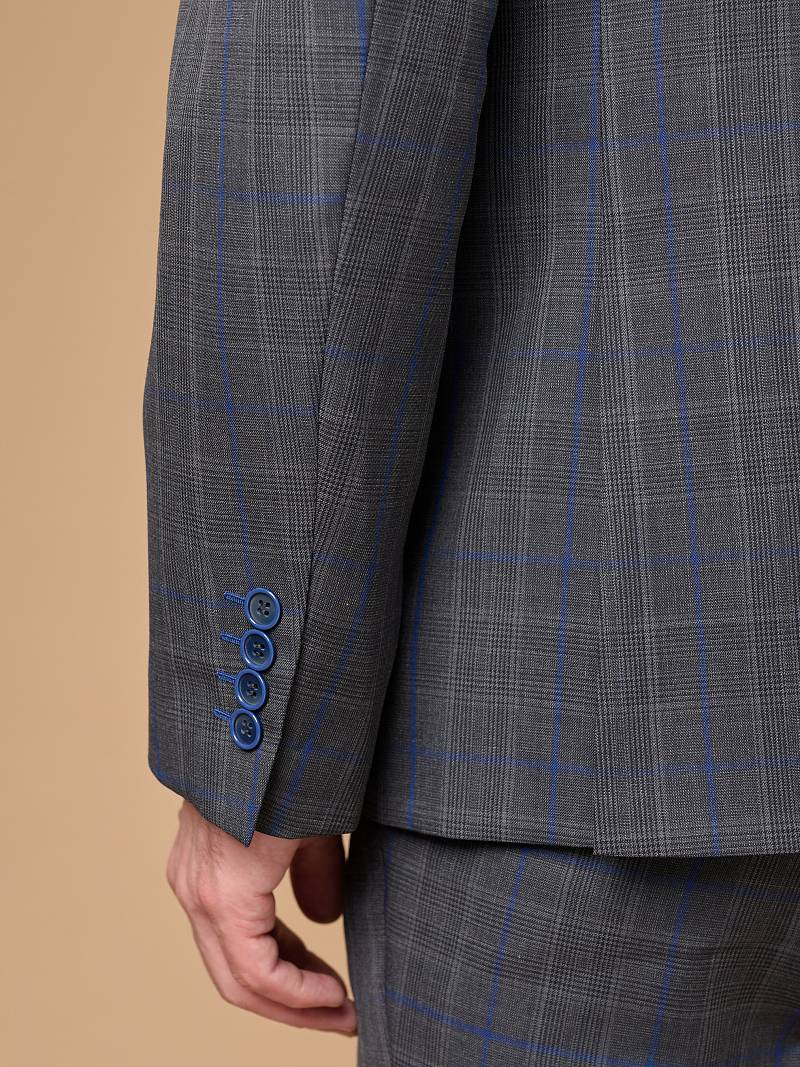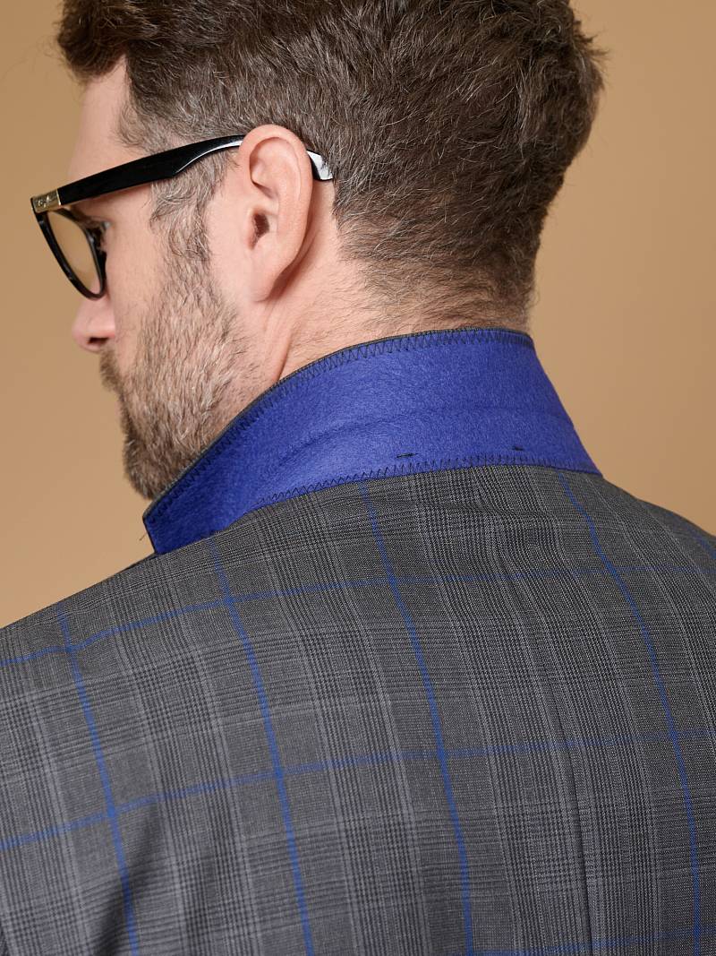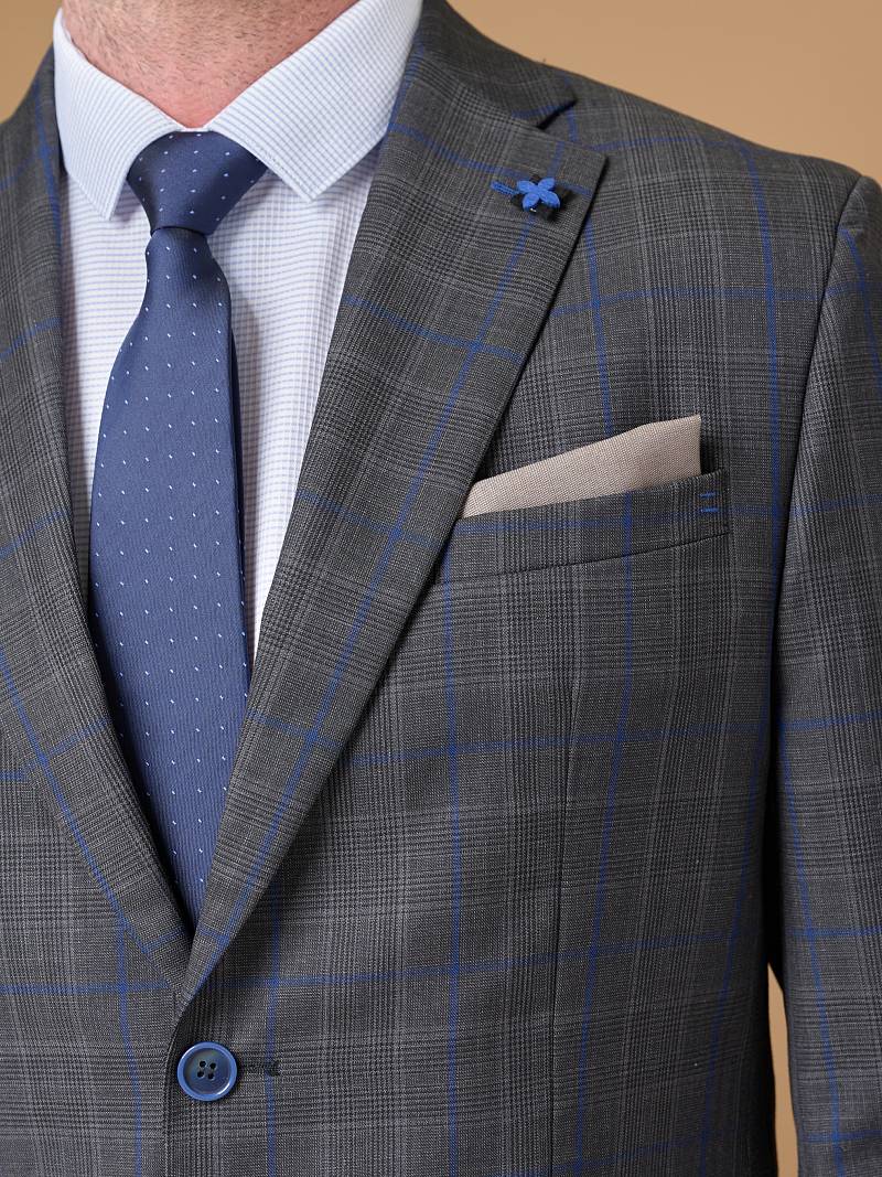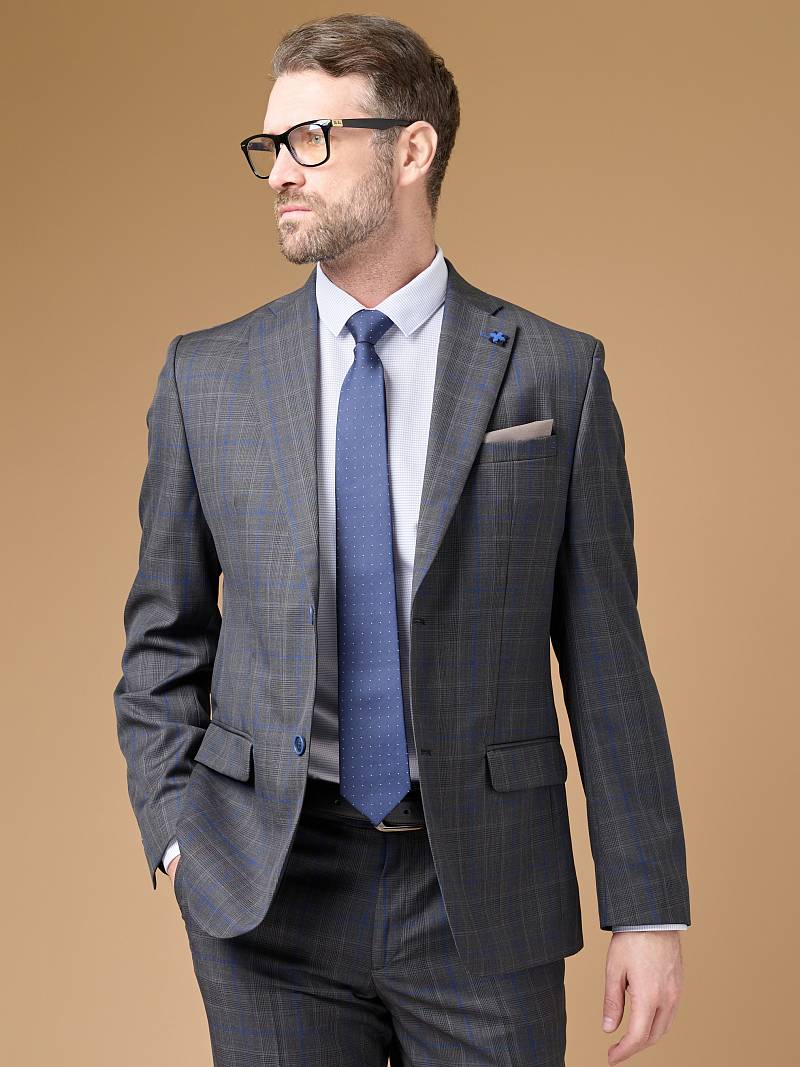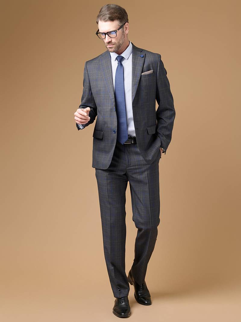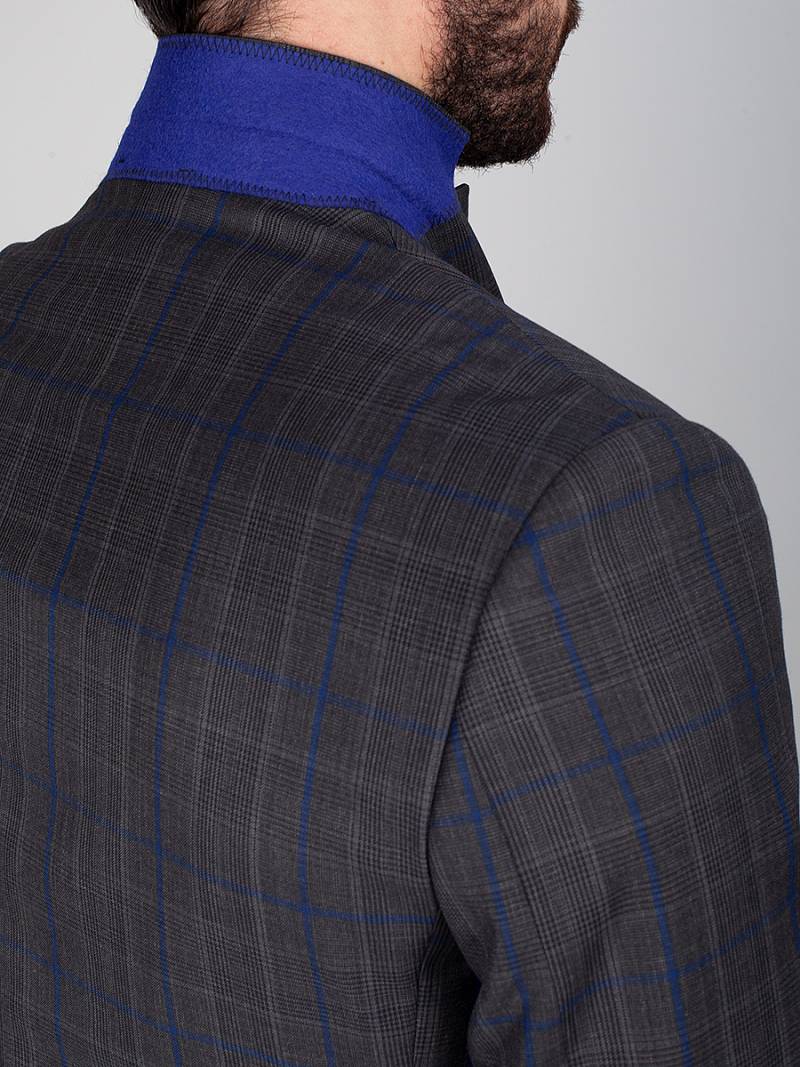 Classic fit, две пуговицы, две шлицы. Фасонная петля со значком на лацкане