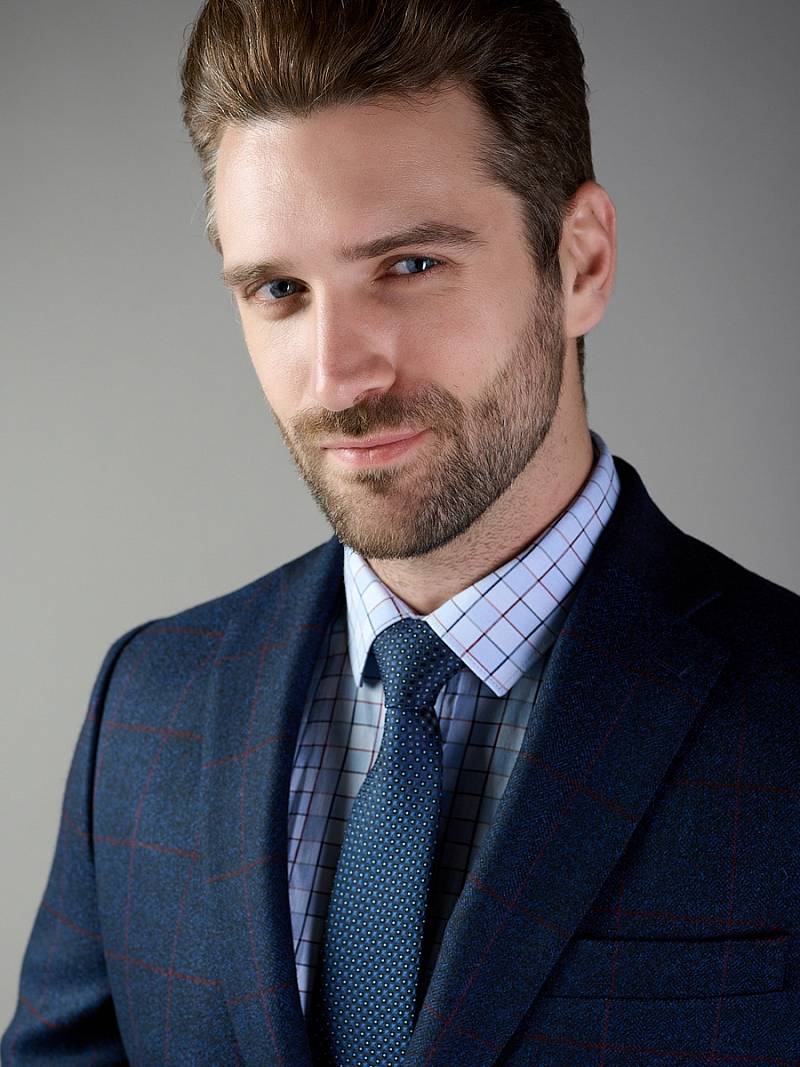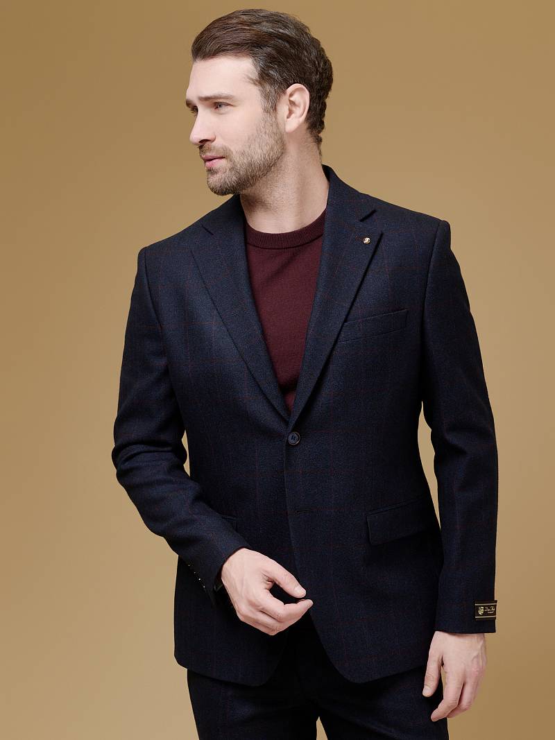 Классический костюм двойка Classic fit. Пиджак на две пуговицы, с боковыми и нагрудным карманами, по спинке две шлицы. Брюки без защипов с боковыми и одним задним карманом.
