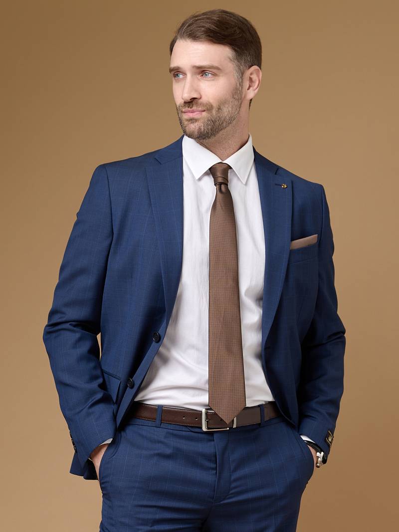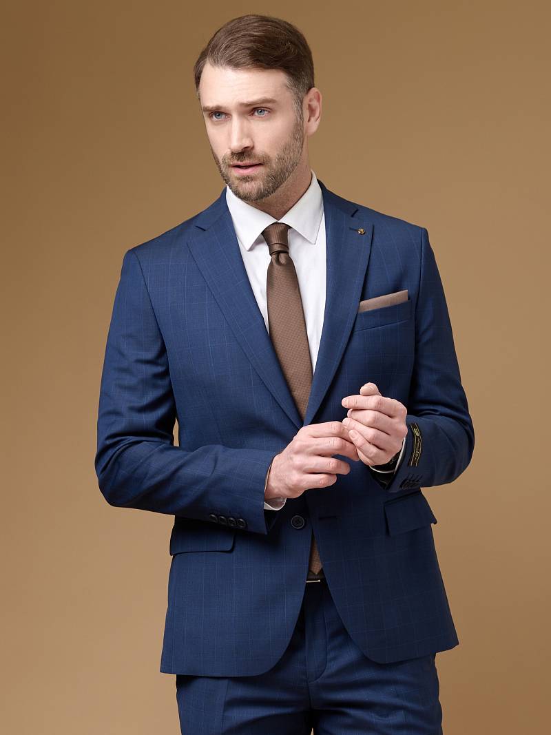 Slim fit (ПРИЛЕГАЮЩИЙ СИЛУЭТ), рекомендуется брать на размер больше. Классический костюм двойка марки BAZIONI– это идеальное сочетание стиля и комфорта для мужчин. Для пошива лаконичного, темно-синего костюма в клетку использовали премиальную шерсть высокого качества. Пиджак с классической шириной лацкана и мягкой линией плеч отлично сядет по фигуре, а расположенные по спинке две шлицы обеспечат дополнительный комфорт и свободу движения. Для придания образу торжественности подкладку нагрудного кармана можно использовать как платок-паше. Лацканы украсили небольшим значком в виде эмблемы бренда. Обработан пиджак шелковой подкладкой с двумя внутренними карманами. Брюки прямого кроя со стрелками и заниженной посадкой, с боковыми наклонными карманами и двумя задними карманами "в рамку". Верхний срез брюк обработан поясом с корсажной лентой и шлевками под ремень. Дизайнеры марки BAZIONI тщательно подходят к выбору материалов. Пуговицы подбираются и красятся индивидуально под каждую ткань, а прикладные материалы используют только от передовых производителей. Костюм мужской, классический, нарядный, повседневный, молодежный, для работы в офисе, модный, для мужа, сына, брата, на праздник.
