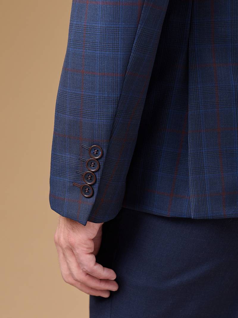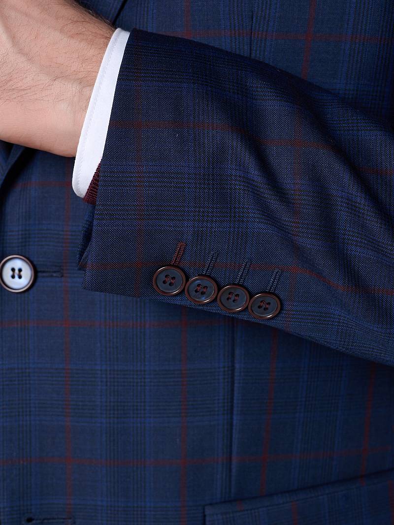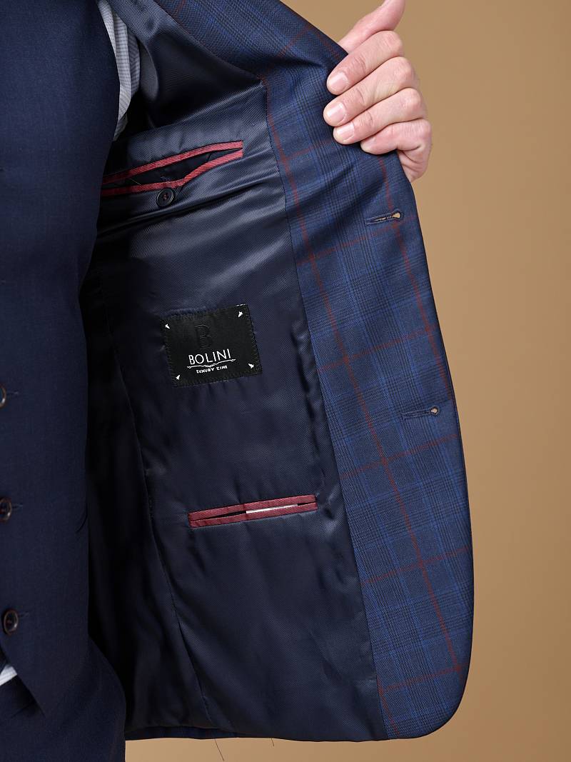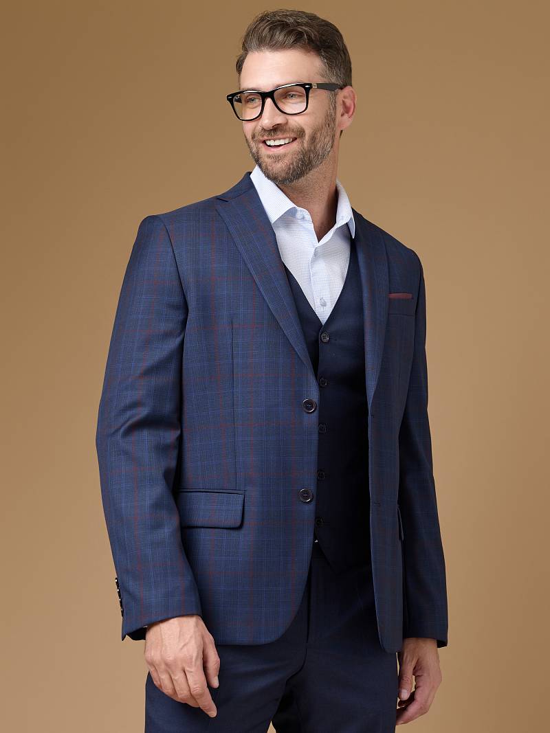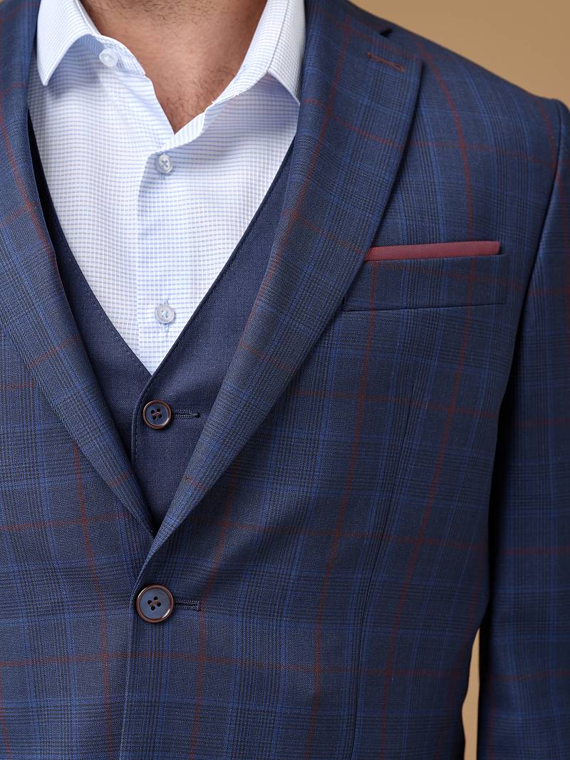 Классический костюм тройка Classic fit. Пиджак на две пуговицы, с боковыми и нагрудным карманами, по спинке две шлицы. Брюки без защипов с боковыми и одним задним карманом. Брюки и жилет выполнены из ткани компаньона