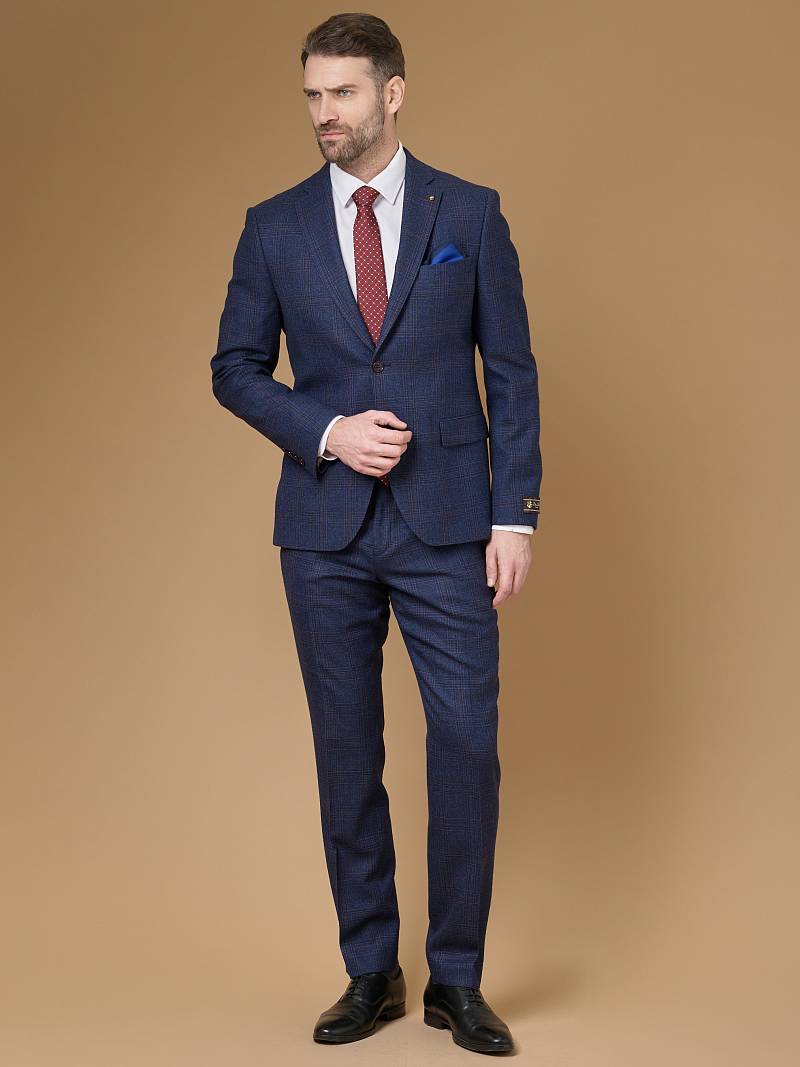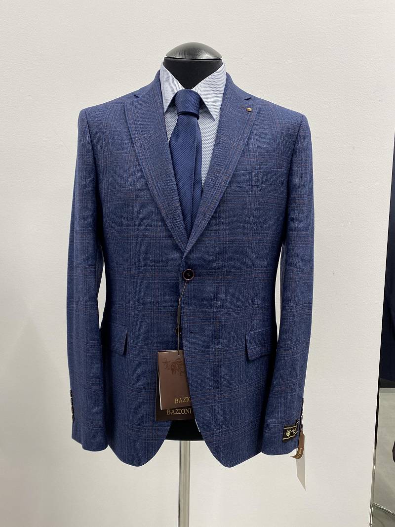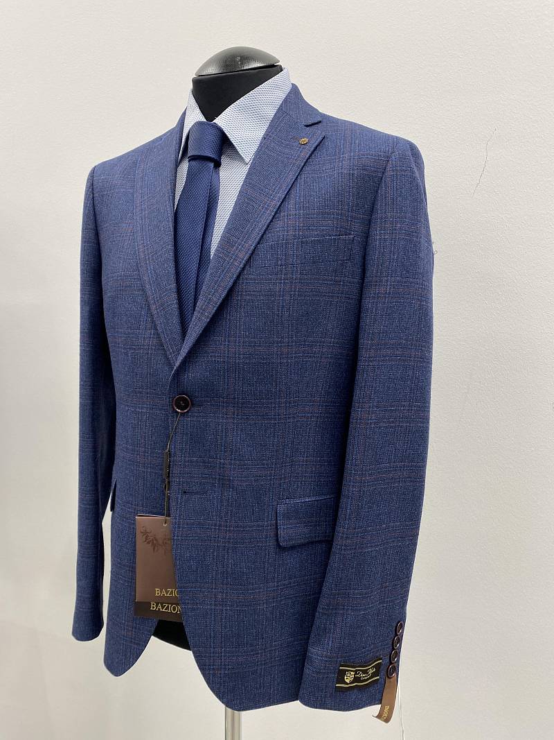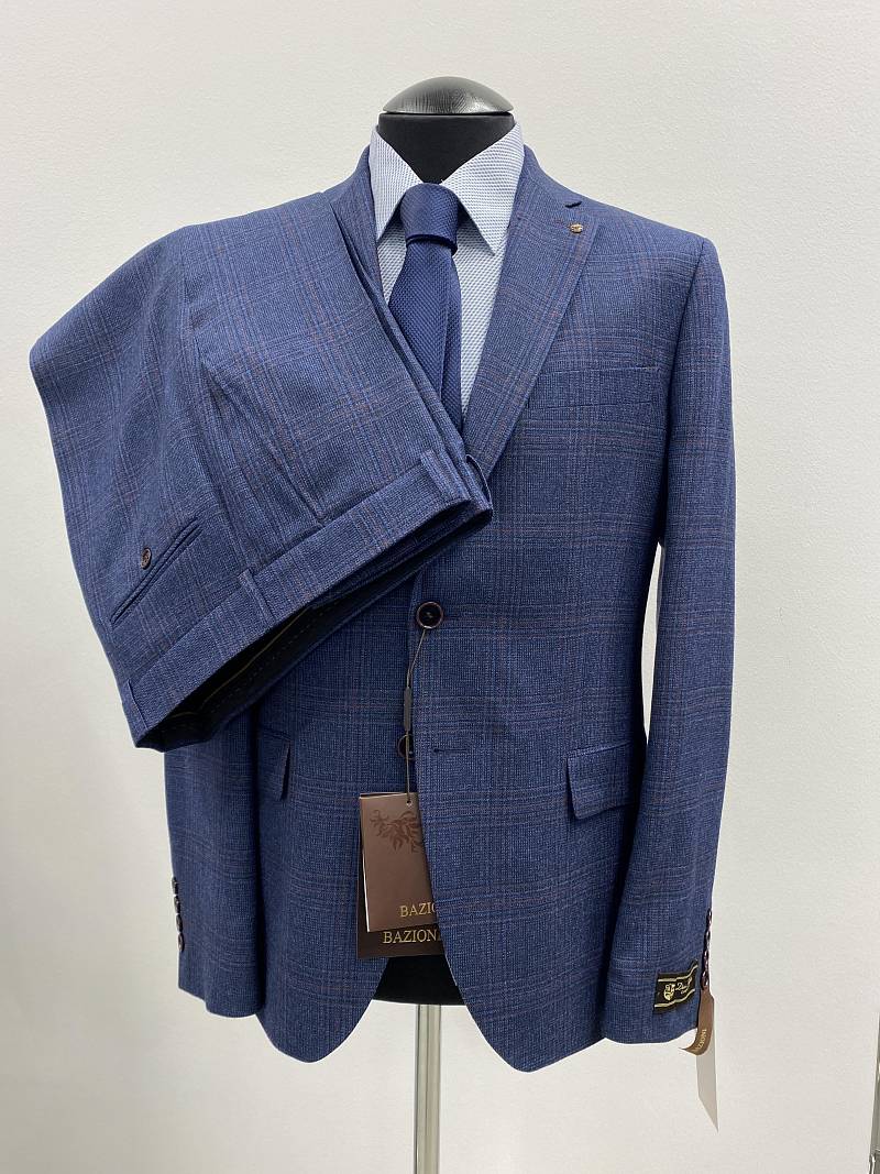 Классический костюм двойка Slim fit (ПРИЛЕГАЮЩИЙ СИЛУЭТ), рекомендуется брать на размер больше. Приталенная однобортная модель на две пуговицы из шерстяной ткани благородного синего цвета и ненавязчивой клетки гармонично впишется в нестрогий офисный образ. Пиджак с классической шириной лацкана и мягкой линией плеч отлично сядет по фигуре, а расположенные по спинке две шлицы обеспечат дополнительный комфорт и свободу движения. Лацканы украсили небольшим значком в виде эмблемы бренда. Обработан пиджак шелковой подкладкой с двумя внутренними карманами. Для придания образу торжественности подкладку нагрудного кармана можно использовать как платок-паше. Брюки прямого кроя со стрелками и заниженной посадкой, с боковыми наклонными карманами и двумя задними карманами "в рамку". Верхний срез брюк обработан поясом с корсажной лентой и шлевками под ремень. Дизайнеры марки BAZIONI тщательно подходят к выбору материалов. Пуговицы подбираются и красятся индивидуально под каждую ткань, а прикладные материалы используют только от передовых производителей. Костюм мужской, классический, повседневный, молодежный, casual, для работы в офисе, модный, для мужа, сына, брата, на праздник.