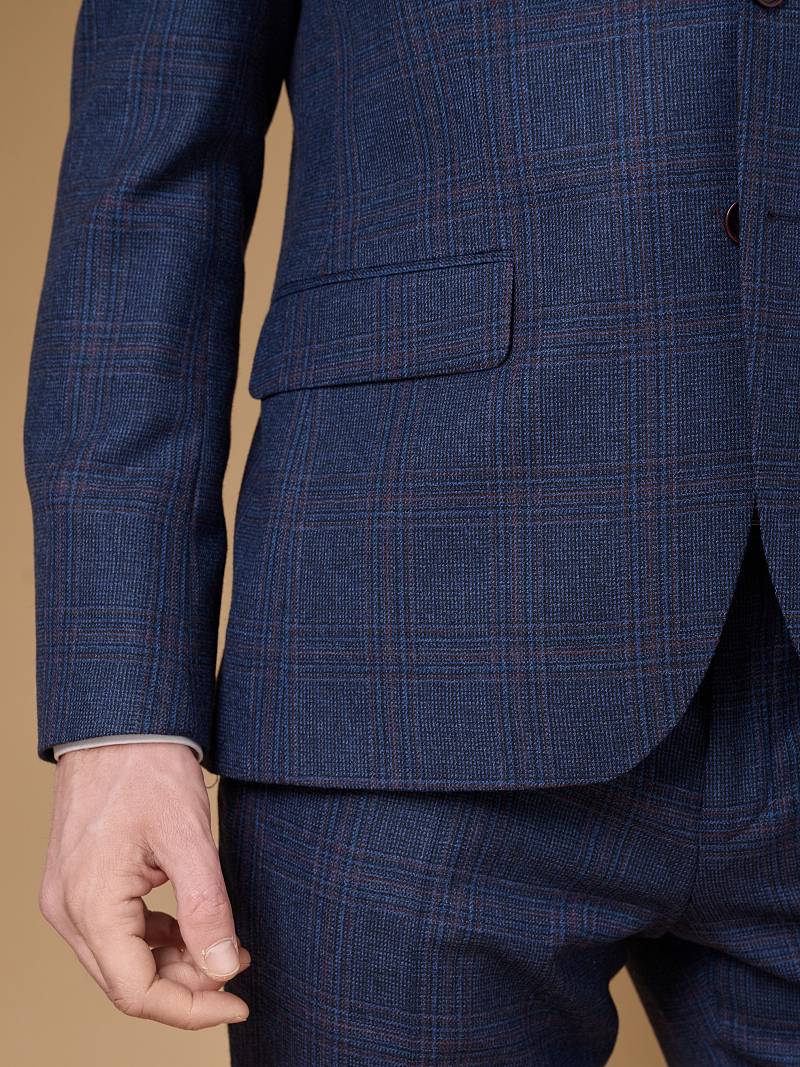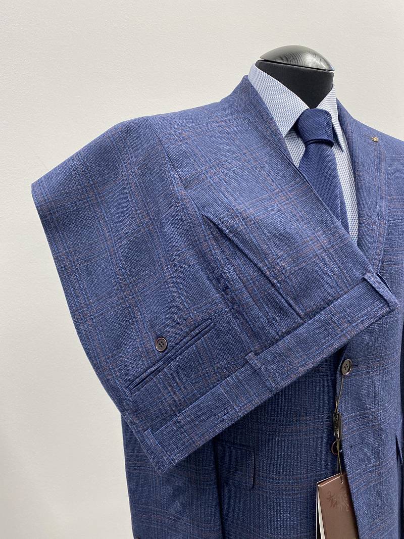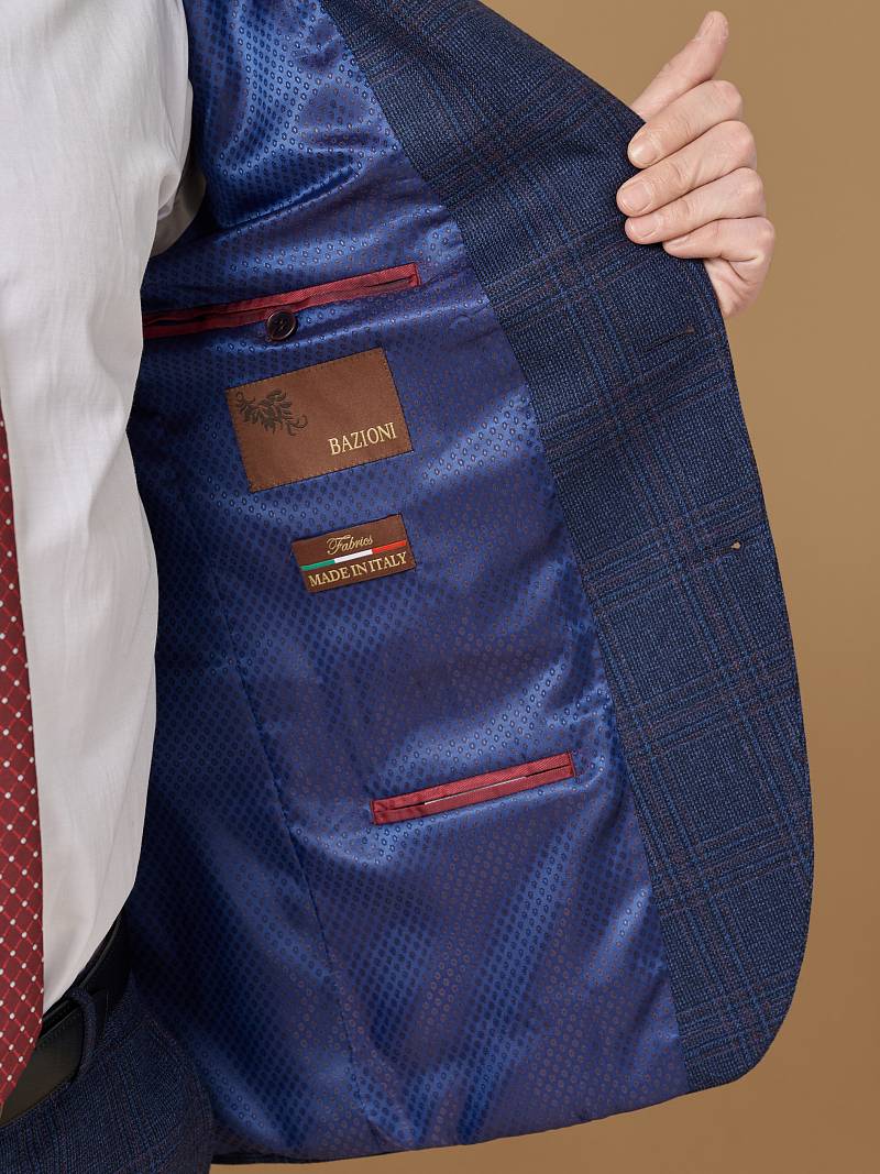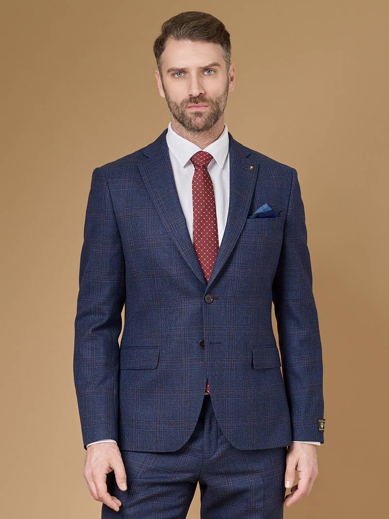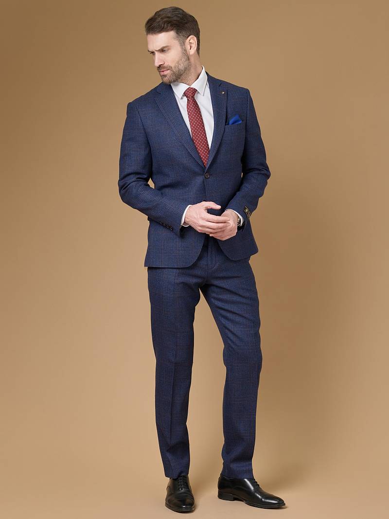Классический костюм двойка Slim fit (ПРИЛЕГАЮЩИЙ СИЛУЭТ), рекомендуется брать на размер больше. Приталенная однобортная модель на две пуговицы из шерстяной ткани благородного синего цвета и ненавязчивой клетки гармонично впишется в нестрогий офисный образ. Пиджак с классической шириной лацкана и мягкой линией плеч отлично сядет по фигуре, а расположенные по спинке две шлицы обеспечат дополнительный комфорт и свободу движения. Лацканы украсили небольшим значком в виде эмблемы бренда. Обработан пиджак шелковой подкладкой с двумя внутренними карманами. Для придания образу торжественности подкладку нагрудного кармана можно использовать как платок-паше. Брюки прямого кроя со стрелками и заниженной посадкой, с боковыми наклонными карманами и двумя задними карманами "в рамку". Верхний срез брюк обработан поясом с корсажной лентой и шлевками под ремень. Дизайнеры марки BAZIONI тщательно подходят к выбору материалов. Пуговицы подбираются и красятся индивидуально под каждую ткань, а прикладные материалы используют только от передовых производителей. Костюм мужской, классический, повседневный, молодежный, casual, для работы в офисе, модный, для мужа, сына, брата, на праздник.