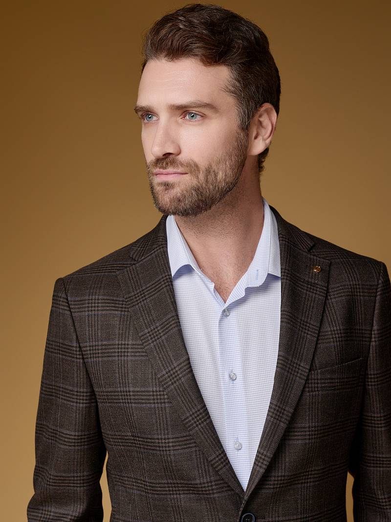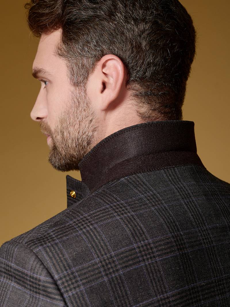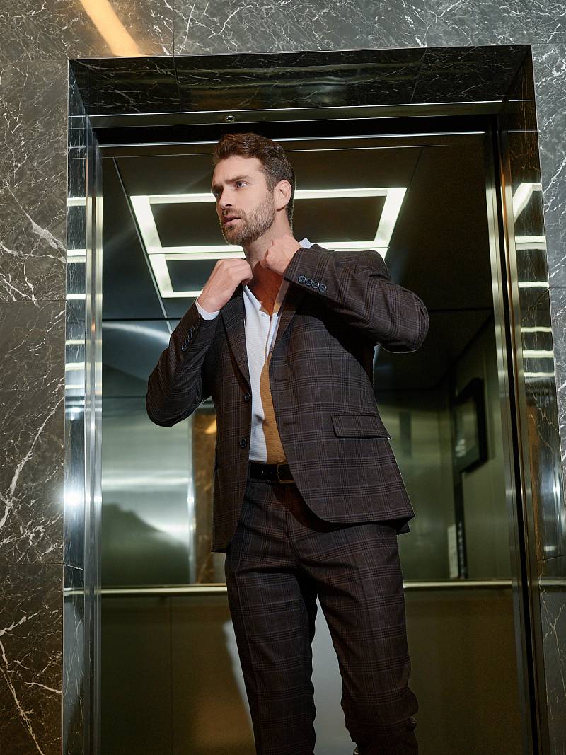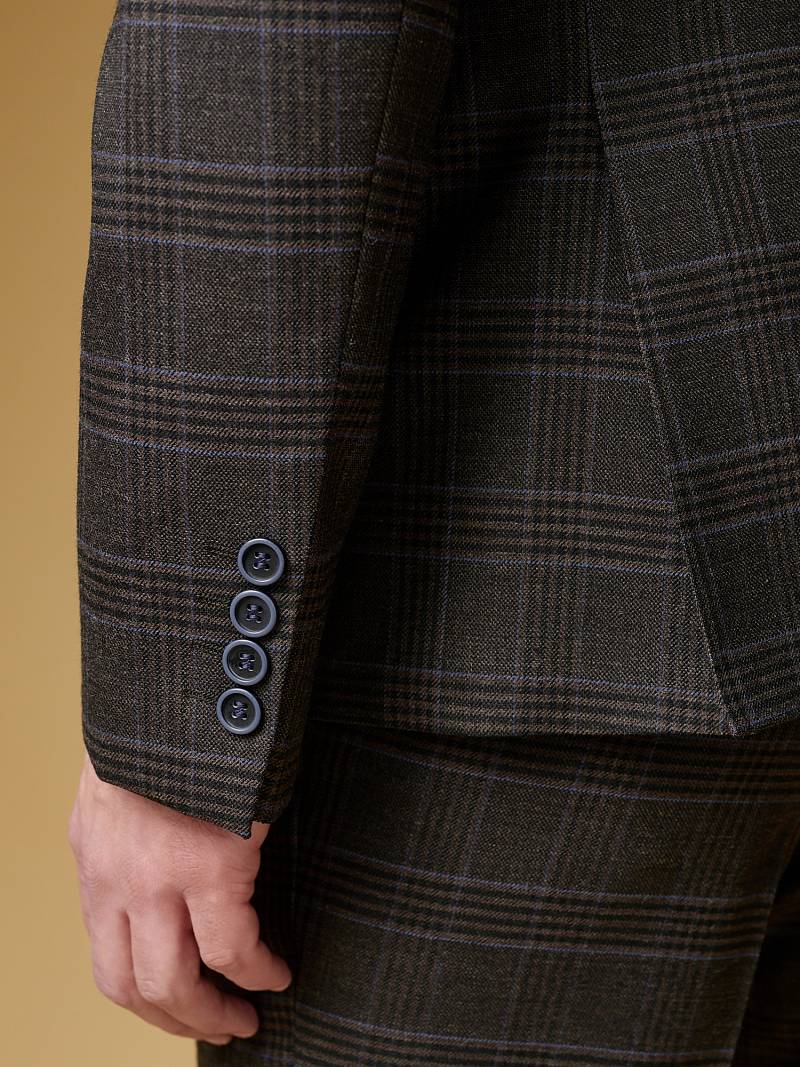 Классический костюм двойка Slim fit (ПРИЛЕГАЮЩИЙ СИЛУЭТ), рекомендуется брать на размер больше.Пиджак однобортный на две пуговицы, с двумя боковыми карманами с клапанами и нагрудной листочкой. Рукава втачные, двухшовные со шлицей и четырьмя декоративными пуговицами. По спинке расположены две шлицы. Пиджак на подкладке, с двумя внутренними карманами. Брюки без защипов, с боковыми наклонными карманами и двумя задними карманами «в рамку». Передние половинки на подкладке. Верхний срез брюк обработан поясом с корсажной лентой и шлевками под ремень. Застежка обработана на тесьму-молнию, с петлей-пуговицей на поясе и усилен металлическим крючком.
