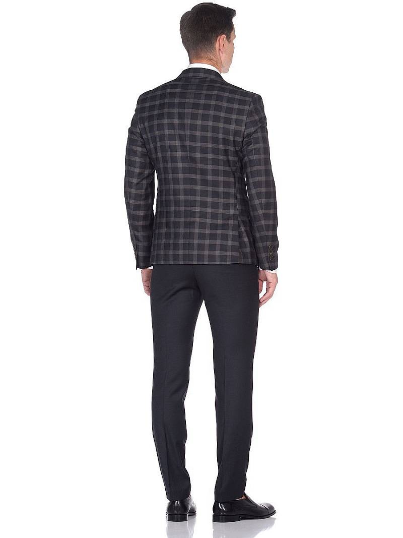 Slim fit, две пуговицы, две шлицы. Брюки из ткани компаньона.