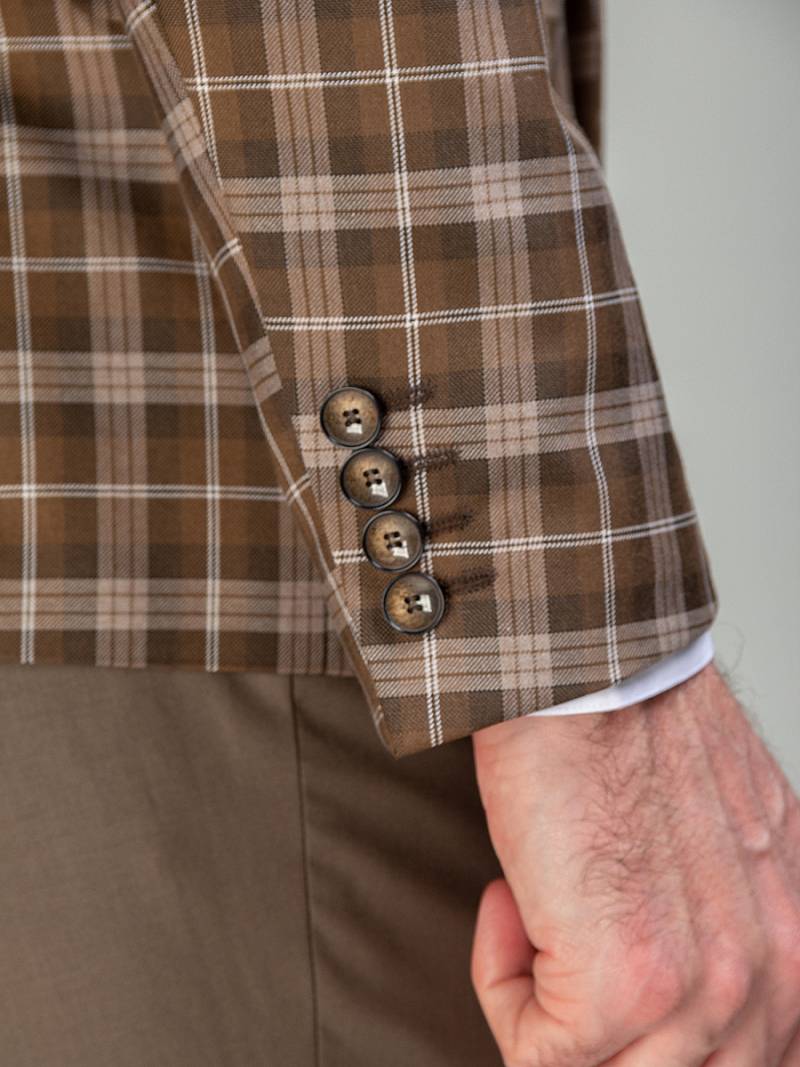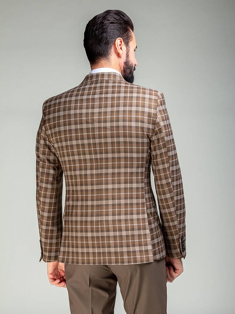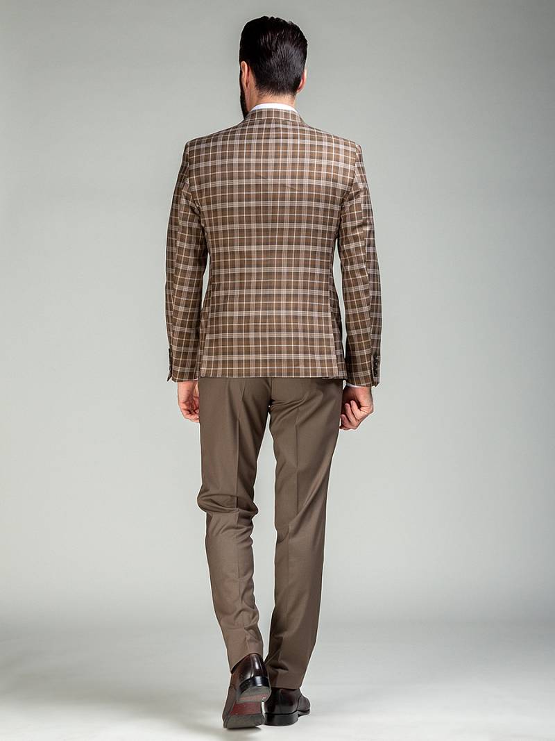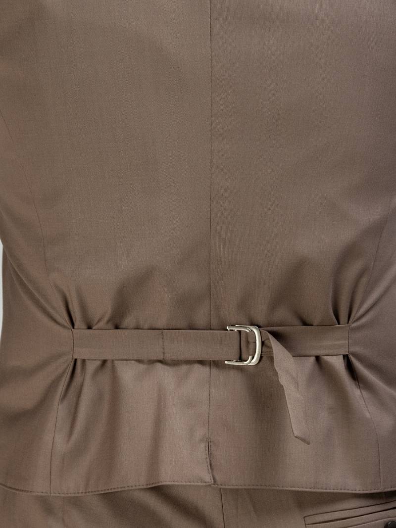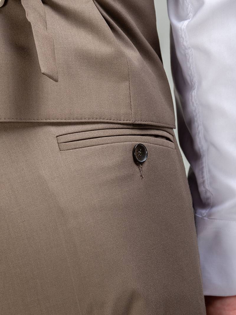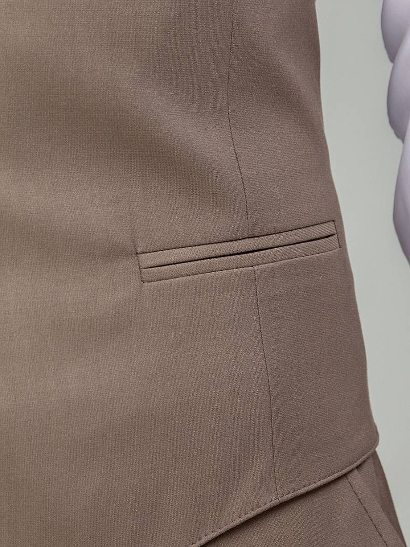 Классический костюм-тройка Slim fit. Пиджак на две пуговицы, с боковыми и нагрудным карманами, по спинке две шлицы. Брюки без защипов в боковыми и одним задним карманом. Жилет и брюки выполнены из ткани компаньона.