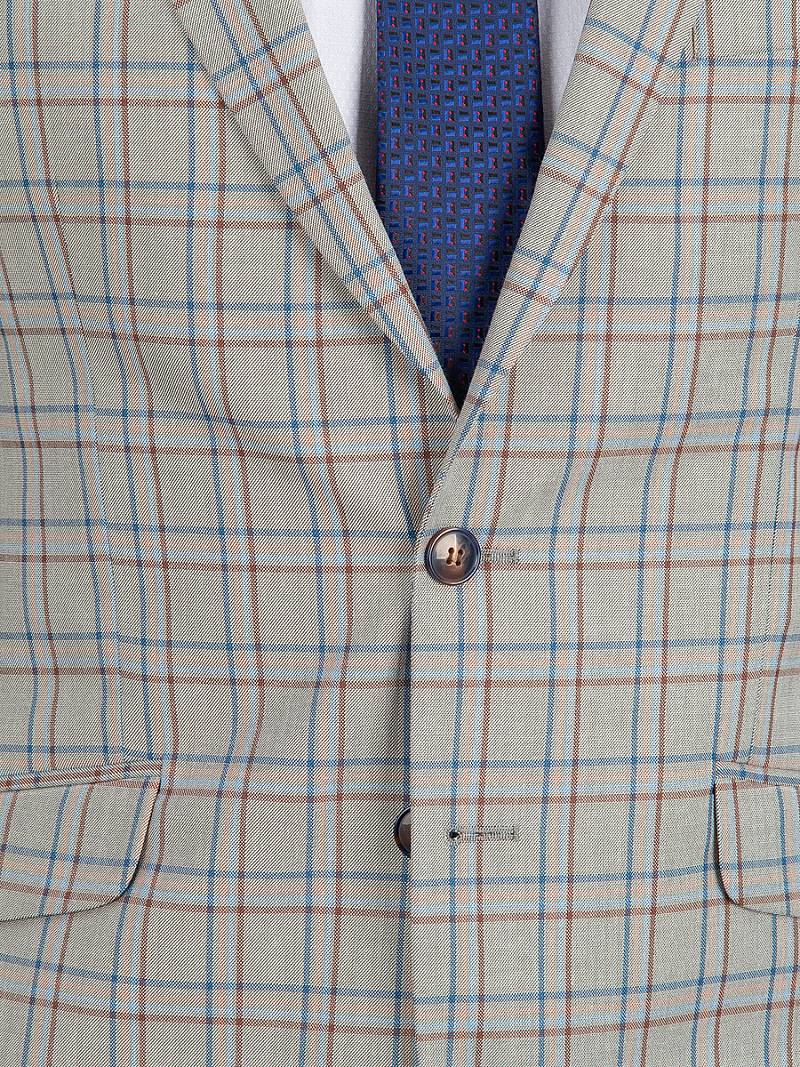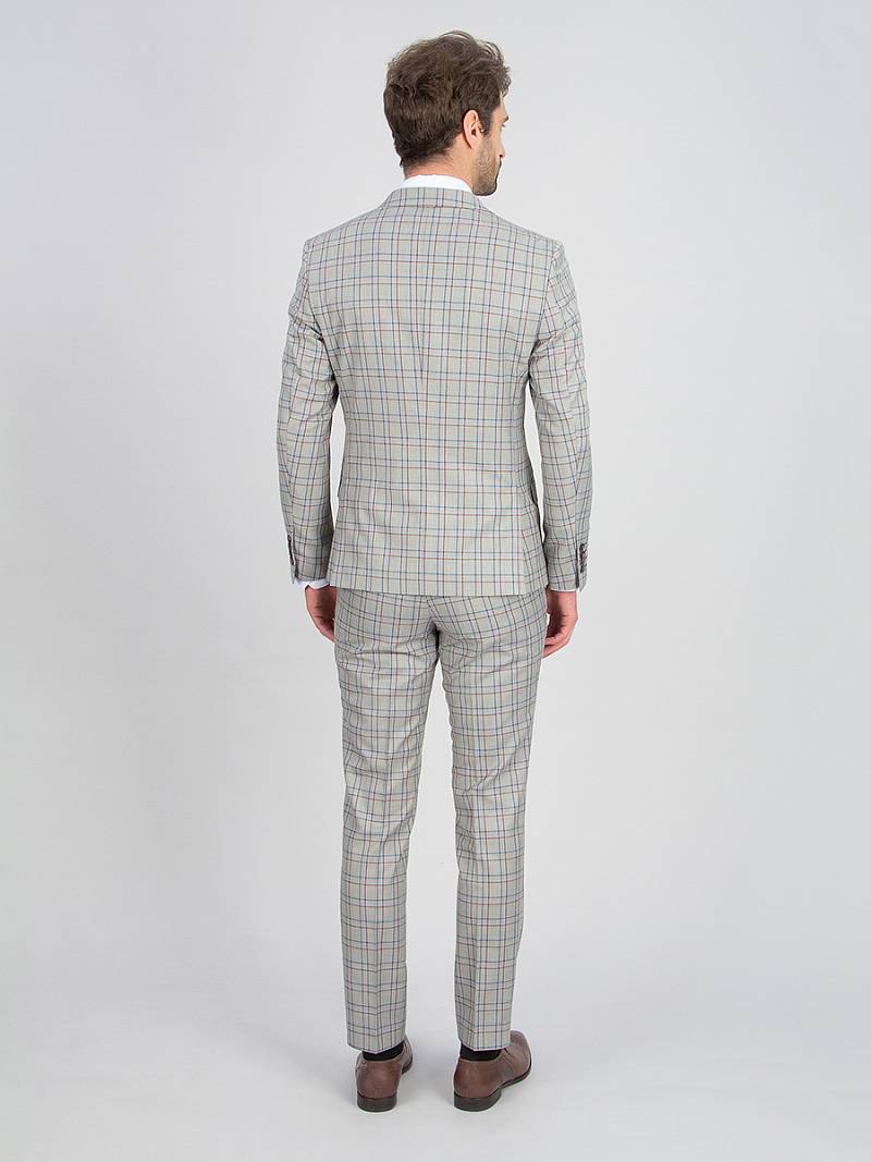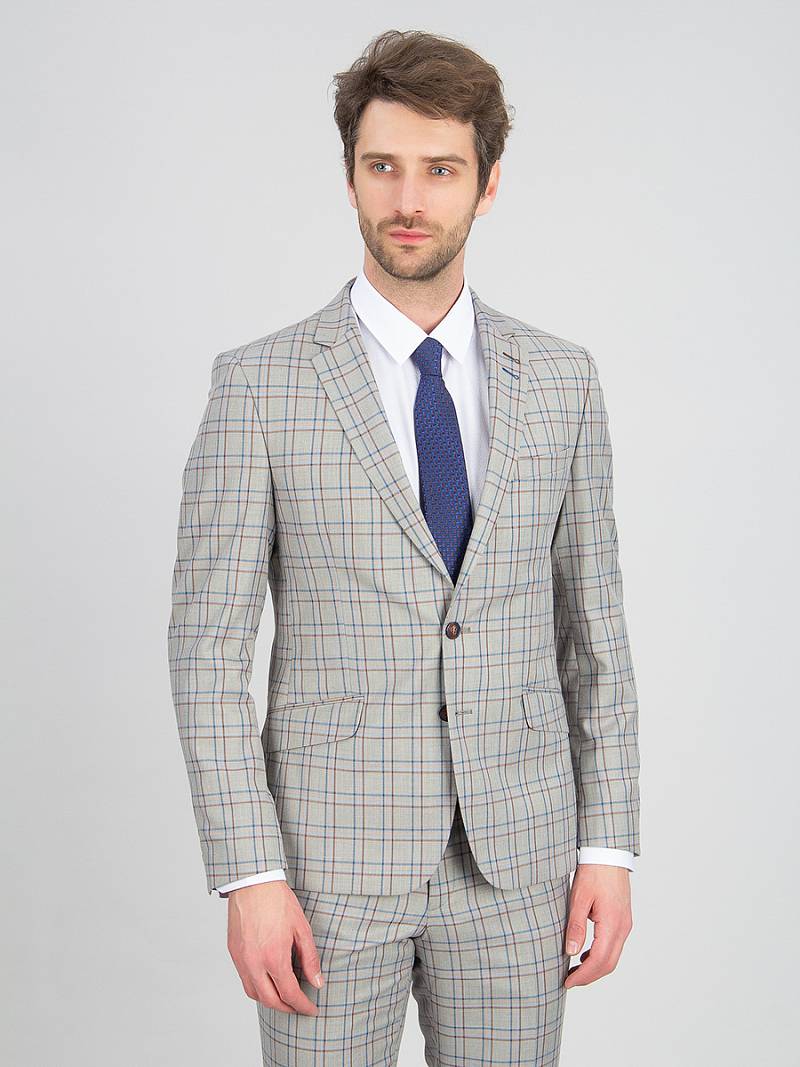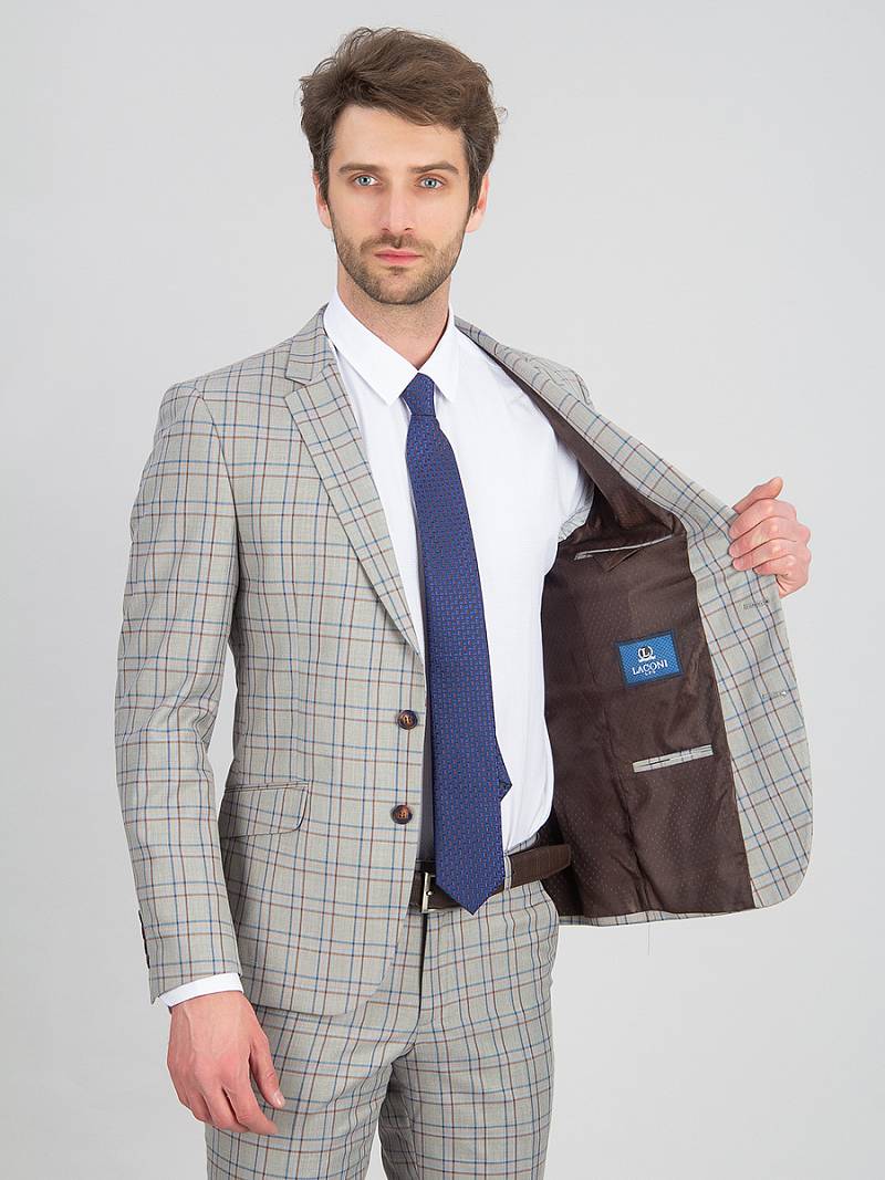 Slim fit, две пуговицы, две шлицы. Две фасонные петли на лацкане, контрастрые петли.