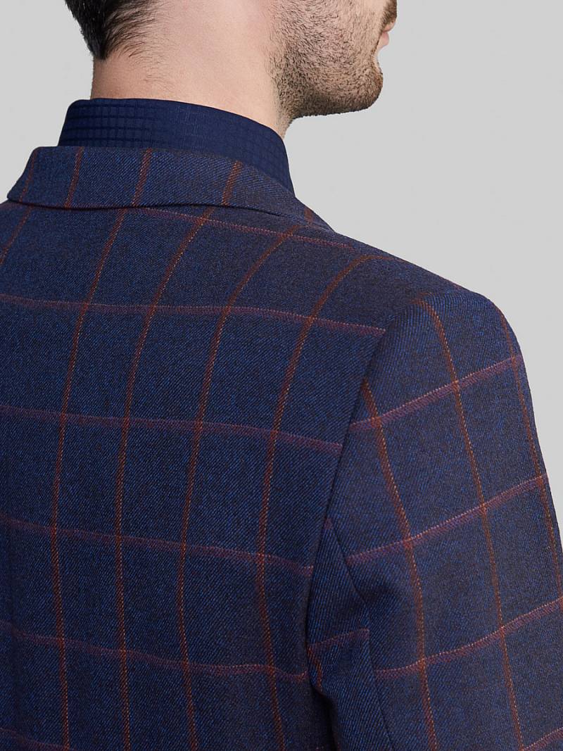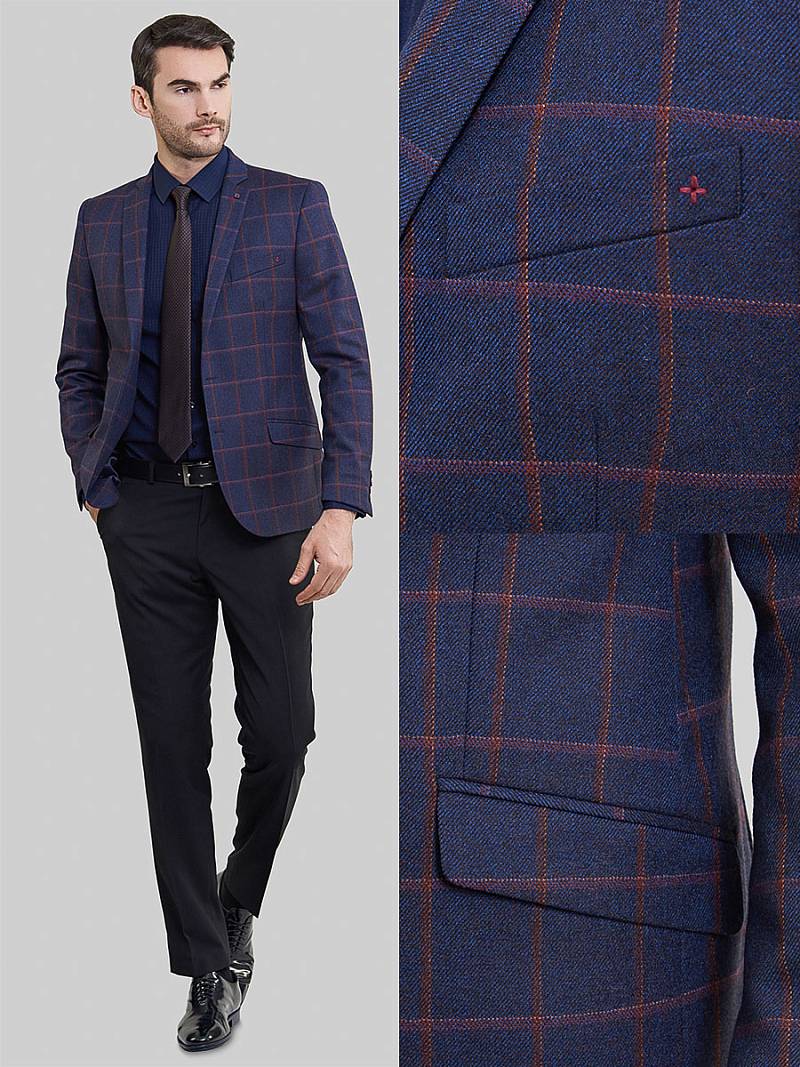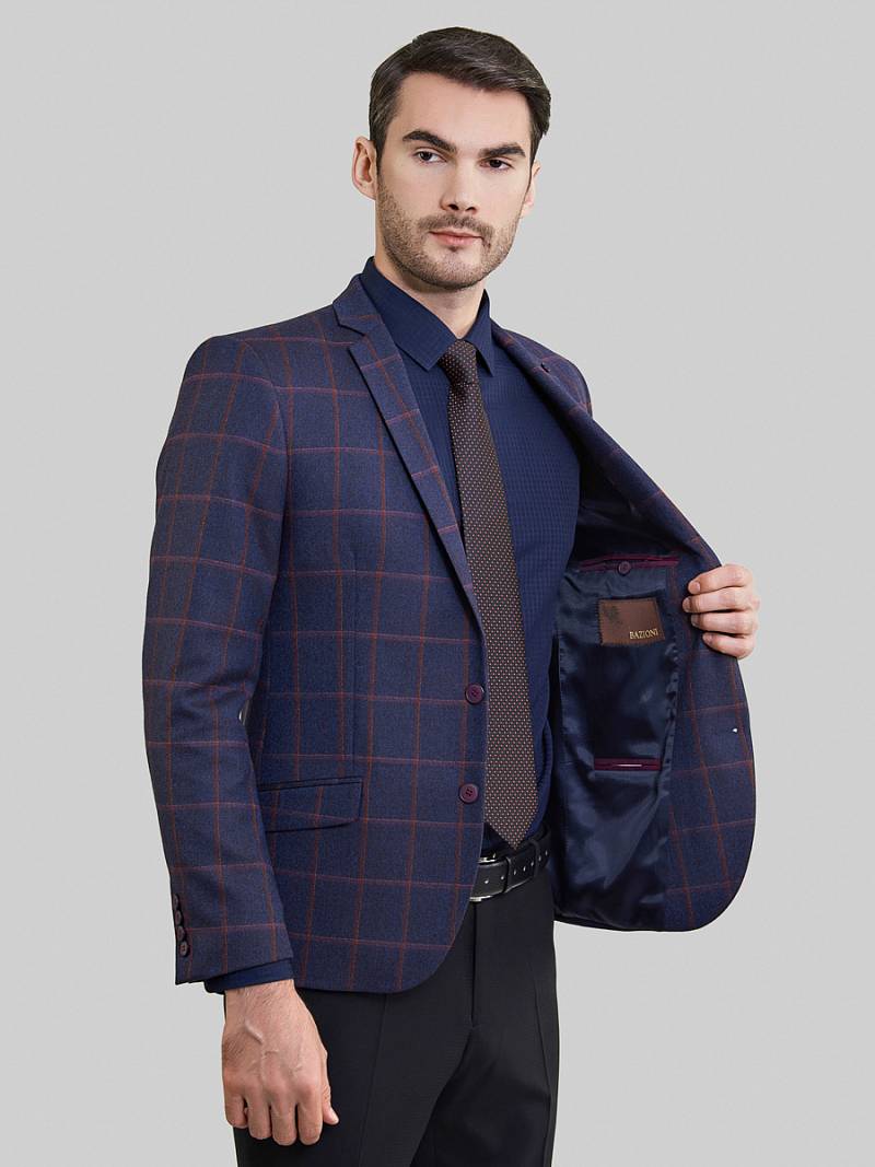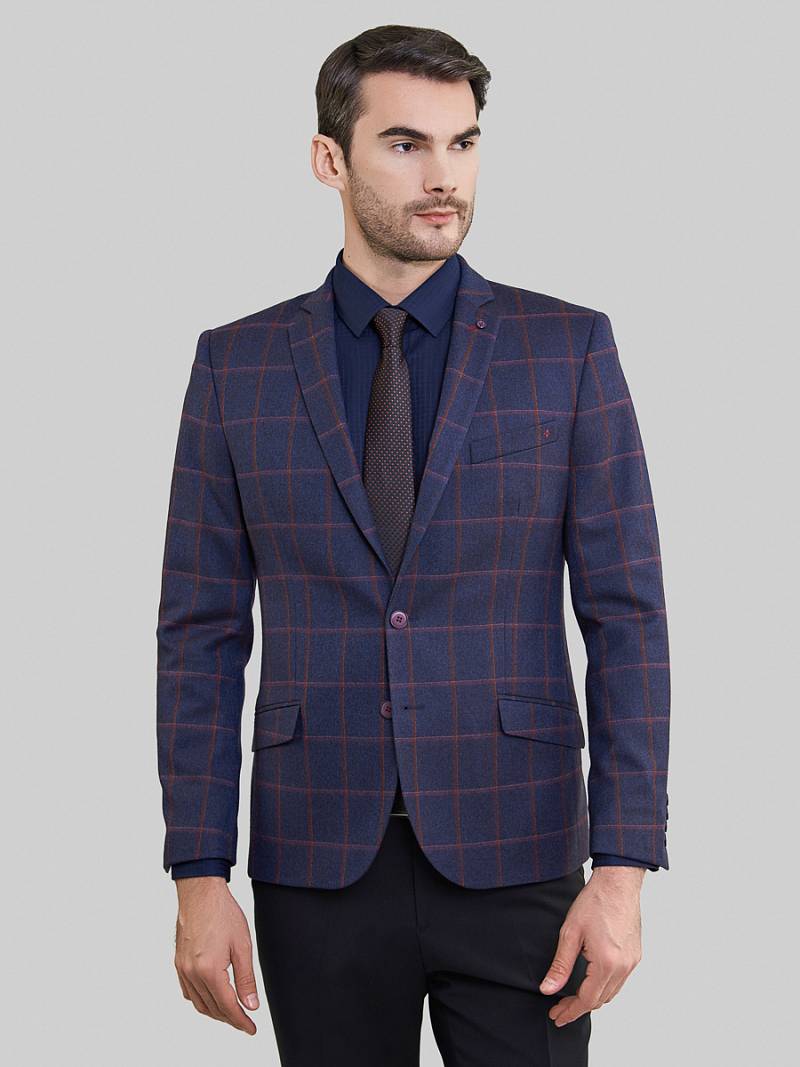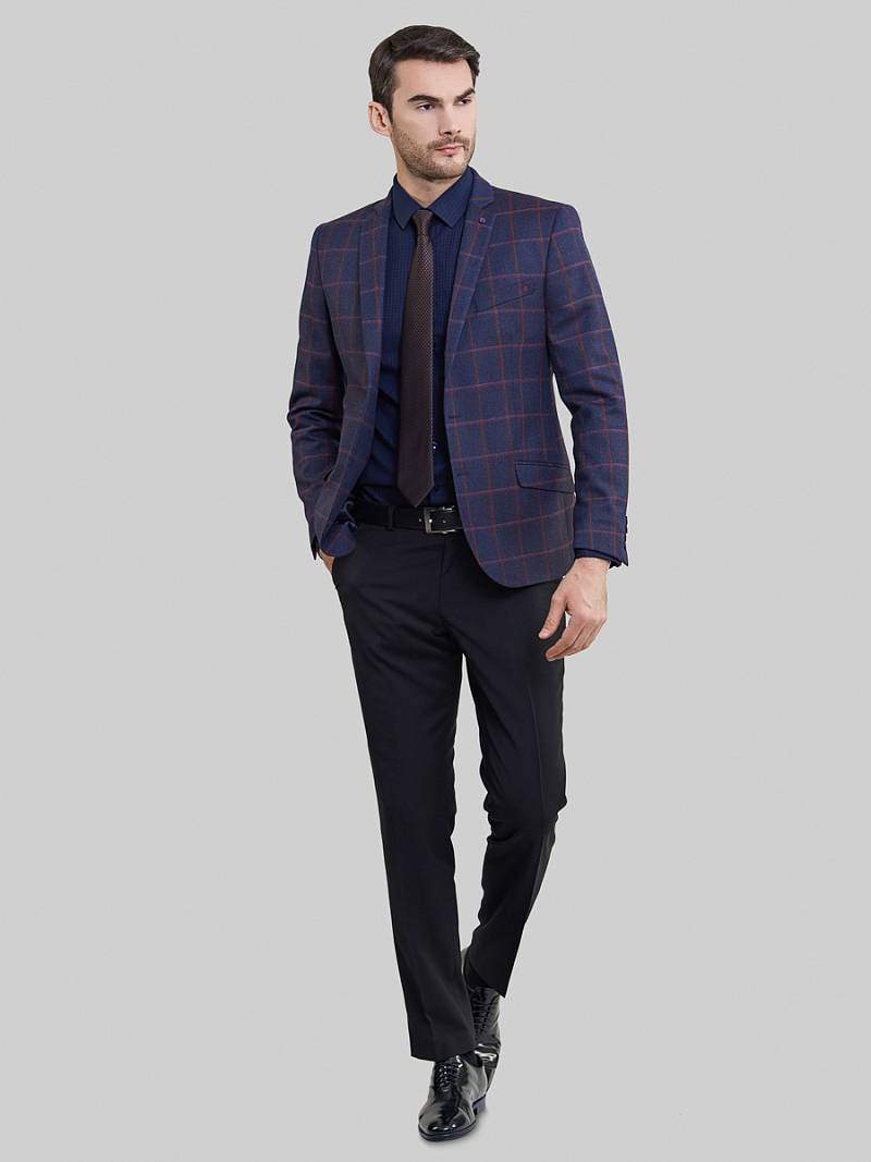 Slim fit, Классический мужской пиджак на две пуговицы, с боковыми и нагрудным карманами, по спинке две шлицы, рукава с налокотниками из отделочной ткани.