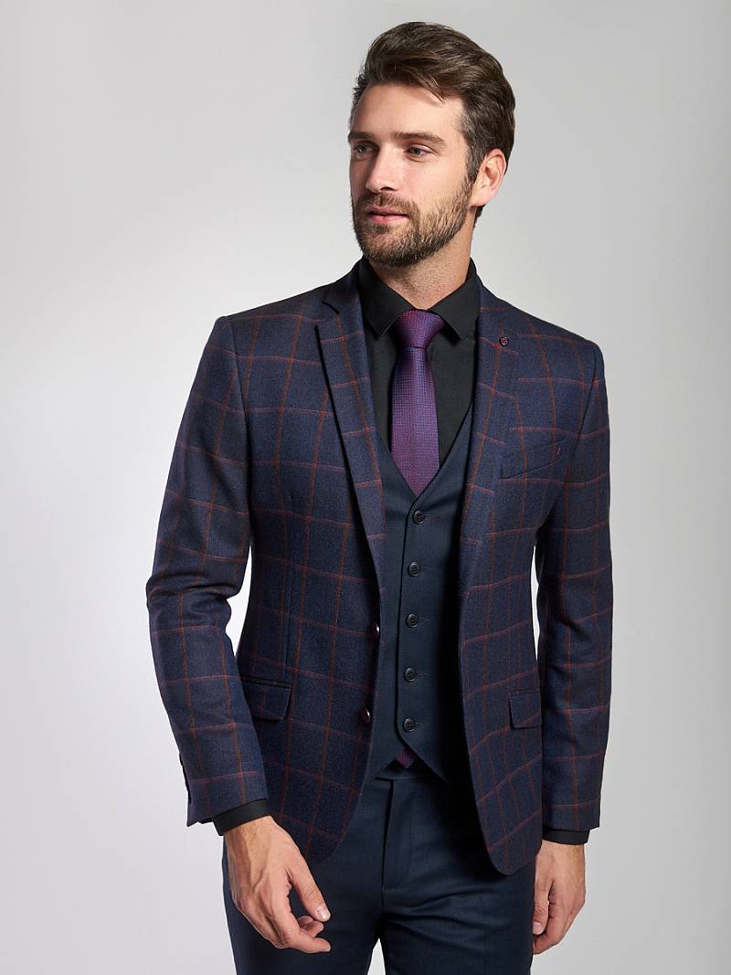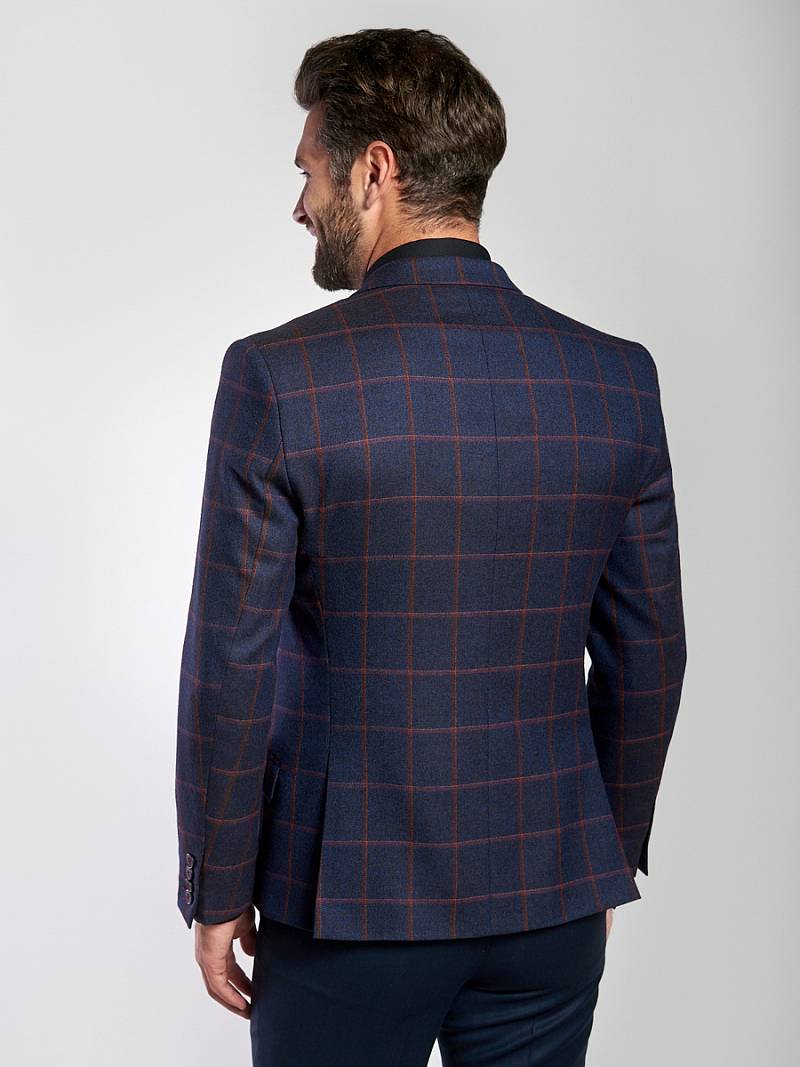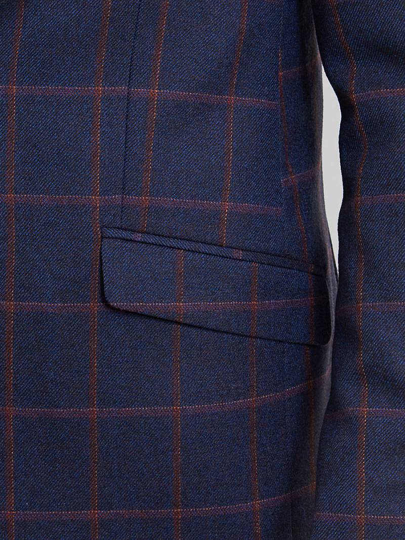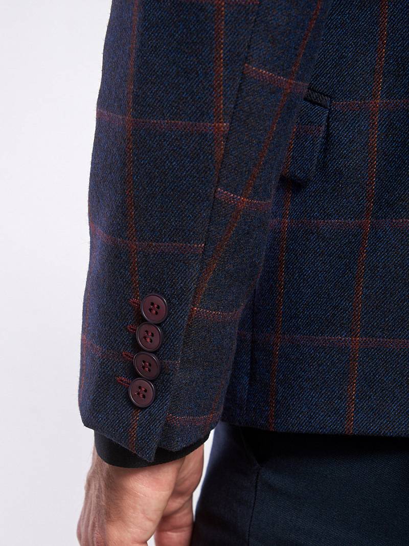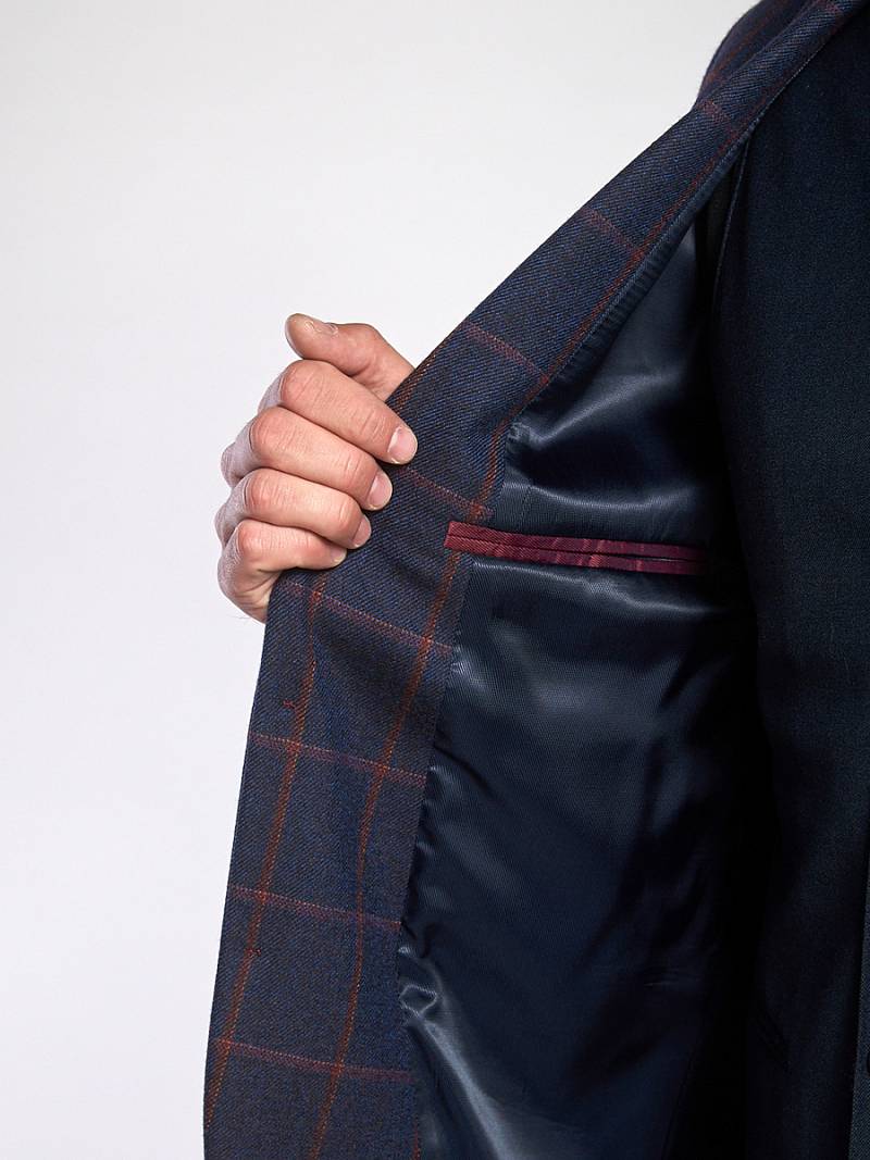 Slim fit, Классический мужской пиджак на две пуговицы, с боковыми и нагрудным карманами, по спинке две шлицы, рукава с налокотниками из отделочной ткани.