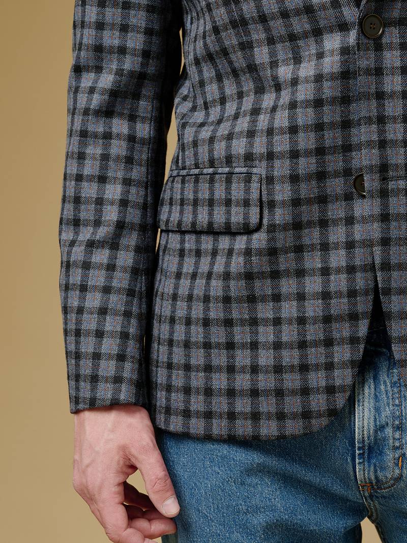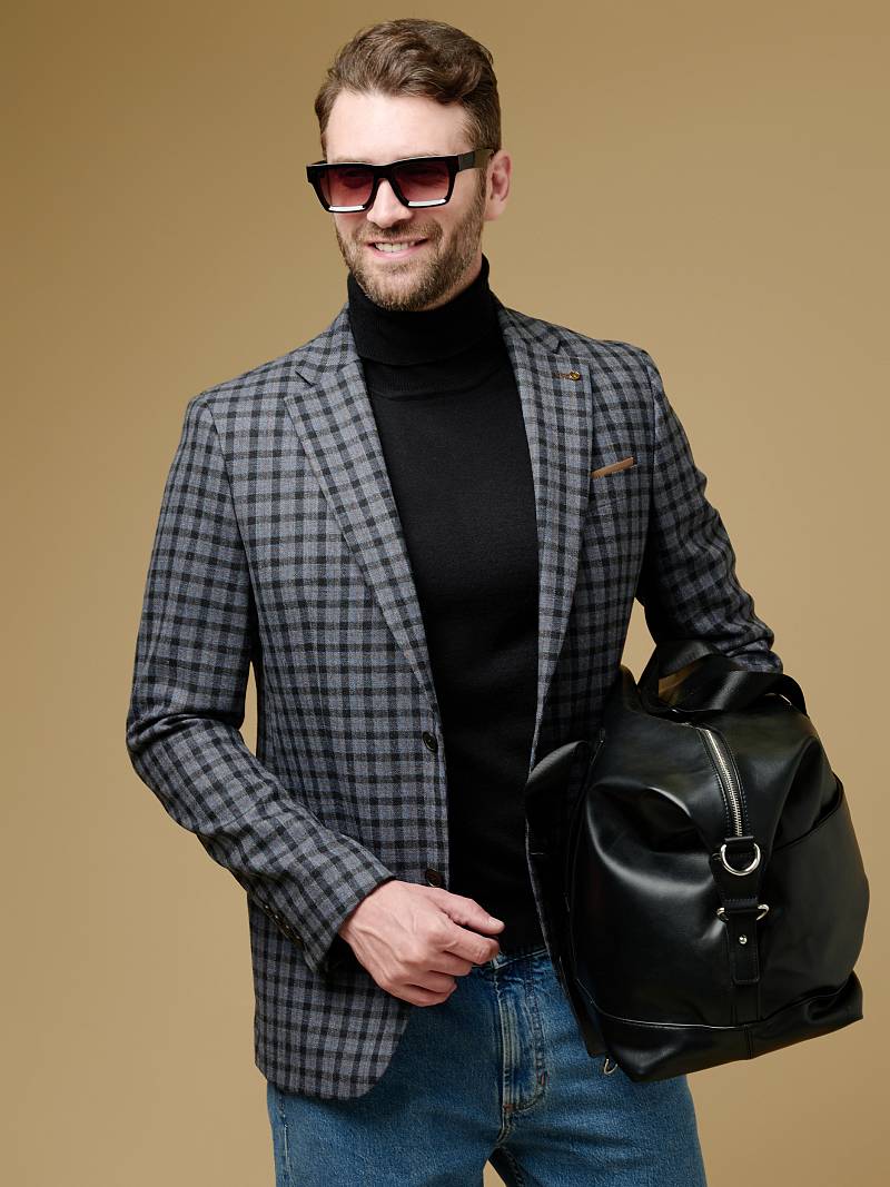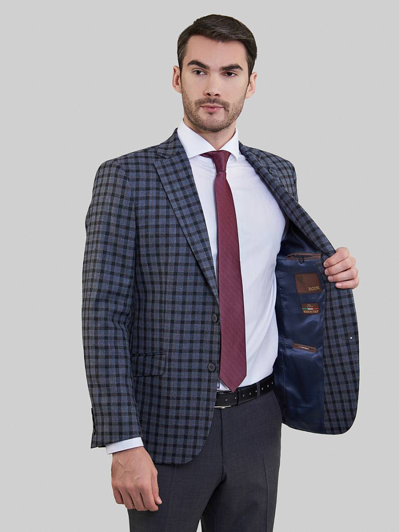 Classic fit (ПОЛУПРИЛЕГАЮЩИЙ СИЛУЭТ). Классический мужской пиджак на две пуговицы, с боковыми и нагрудным карманами, по спинке две шлицы.
