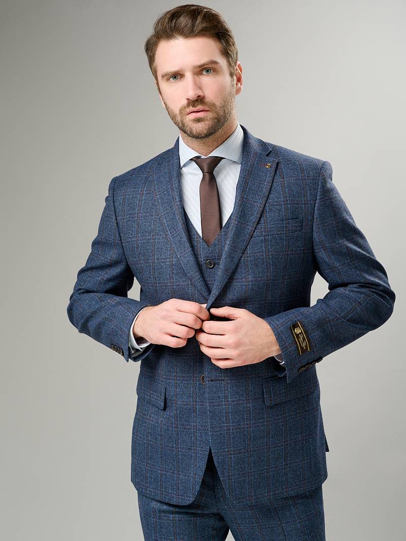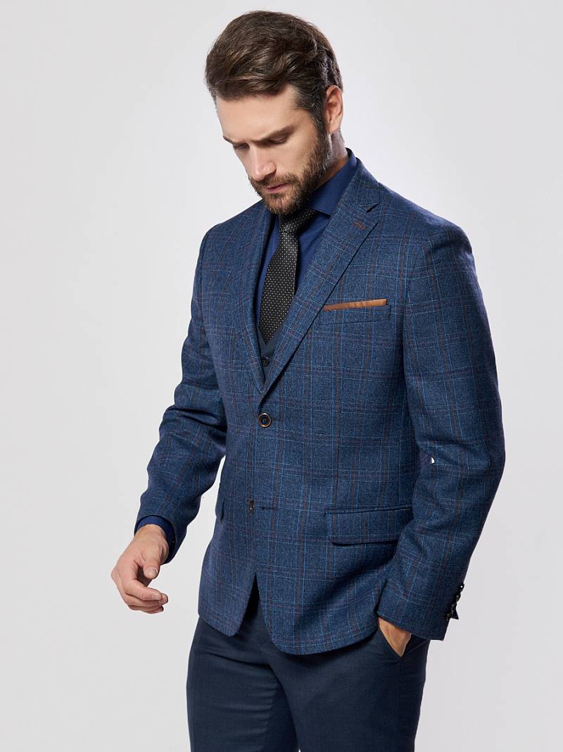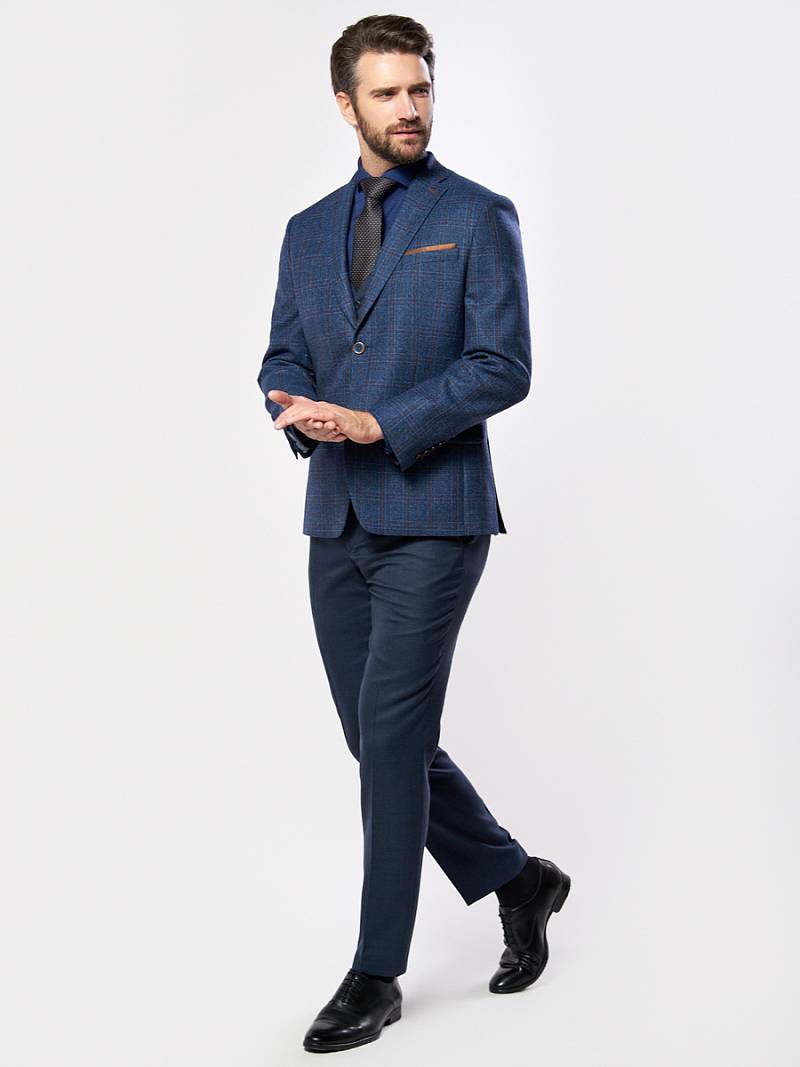 Classic fit (ПОЛУПРИЛЕГАЮЩИЙ СИЛУЭТ). Классический мужской пиджак на две пуговицы, с боковыми и нагрудным карманами, по спинке две шлицы.