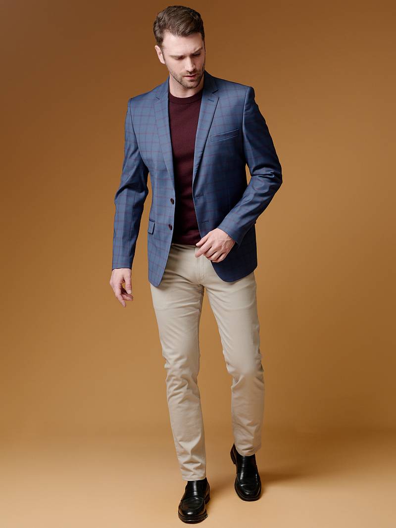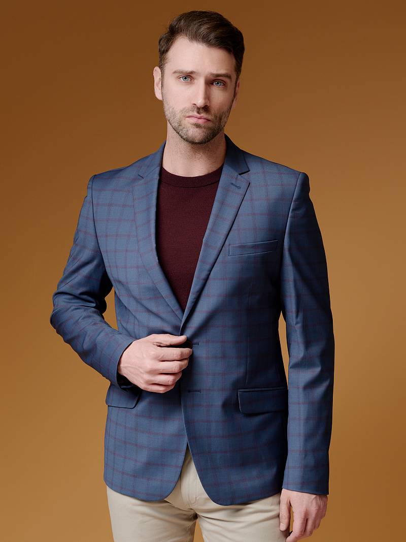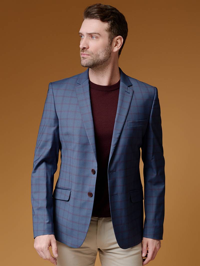 Slim fit, Классический мужской пиджак на две пуговицы, с боковыми и нагрудным карманами, по спинке одна шлица.