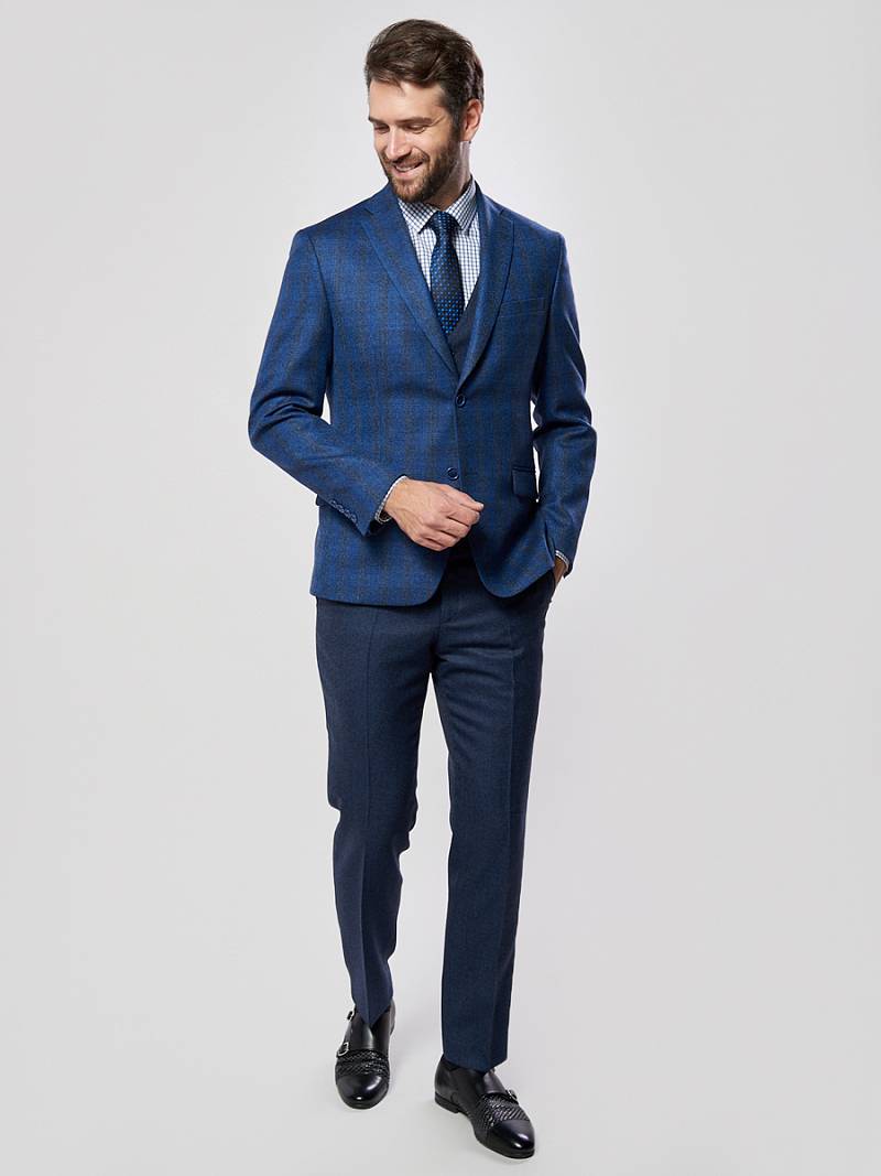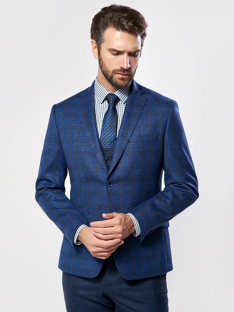 Slim fit, Классический мужской пиджак на две пуговицы, с боковыми и нагрудным карманами, по спинке две шлицы.