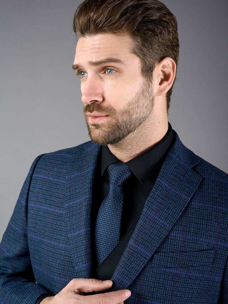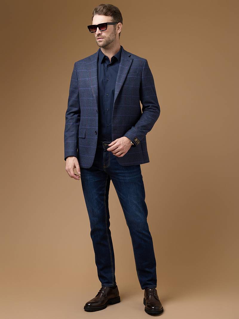 Classic fit (ПОЛУПРИЛЕГАЮЩИЙ СИЛУЭТ). Классический мужской пиджак на две пуговицы, с боковыми и нагрудным карманами, по спинке две шлицы.
