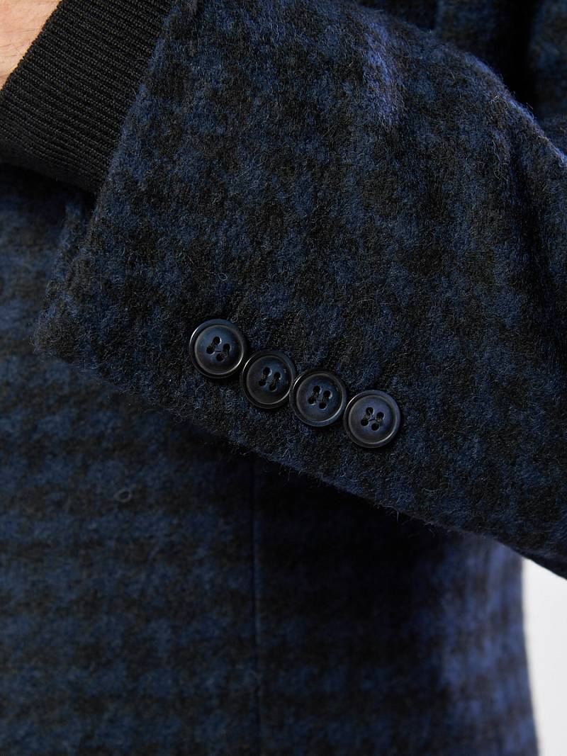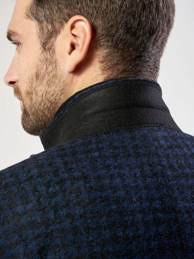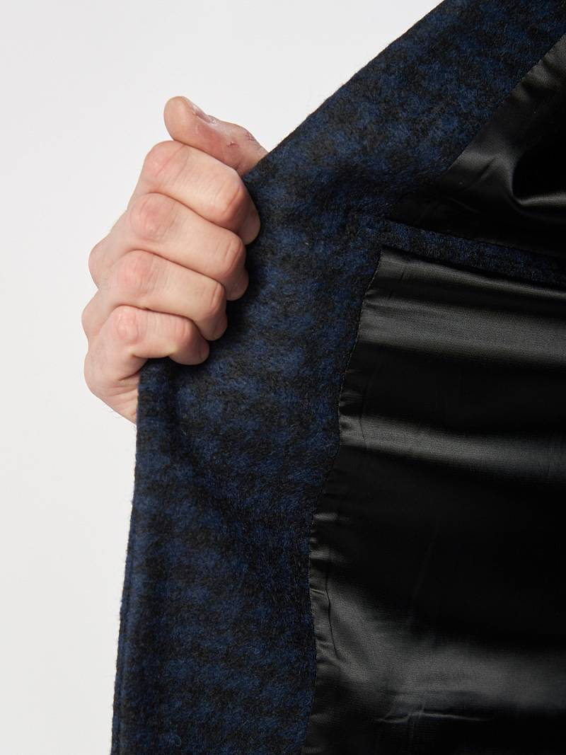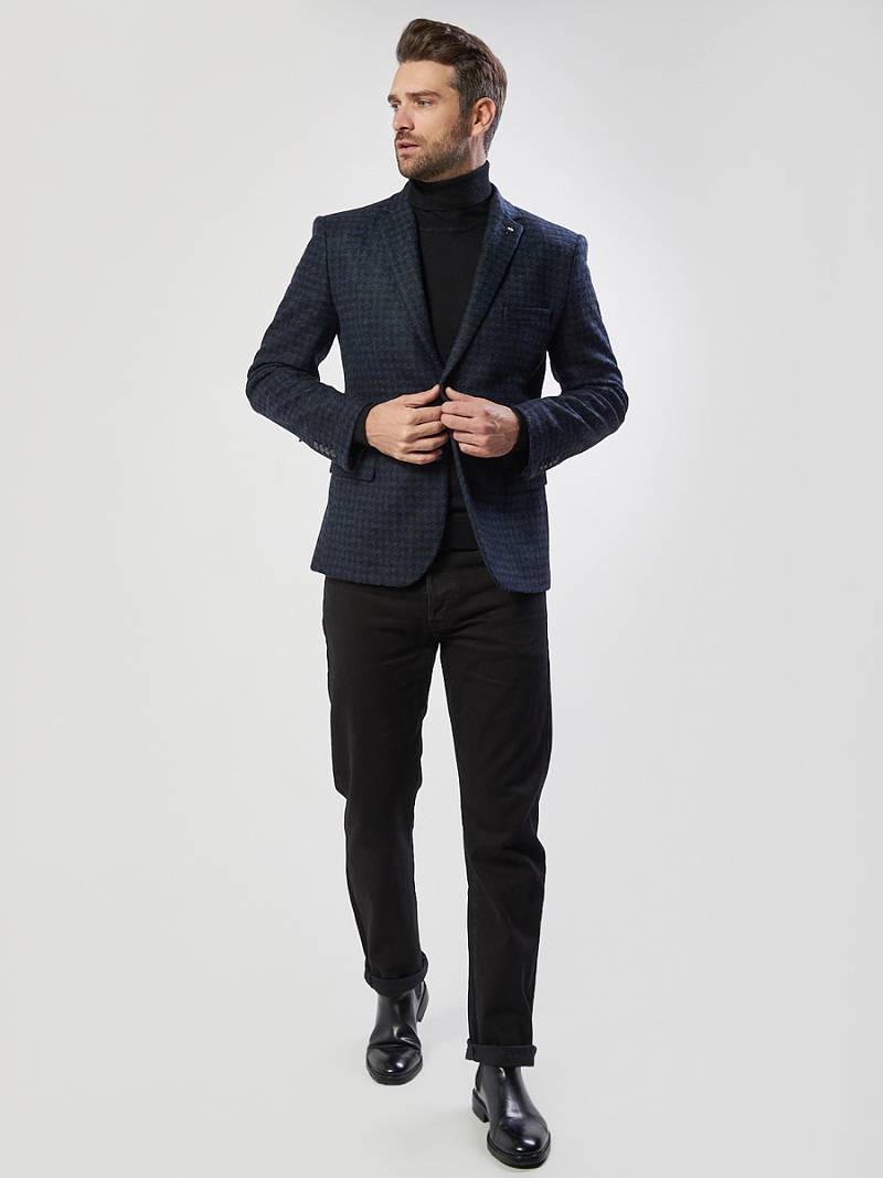 Пиджак мужской из трикотажной ткани на подкладке, застежка - на две пуговицы. На спинке - две шлицы. На полочках- верхний нагрудный карман с листочкой и два нижних прорезных кармана с клапанами.