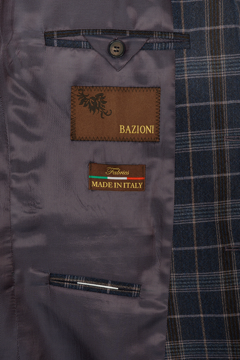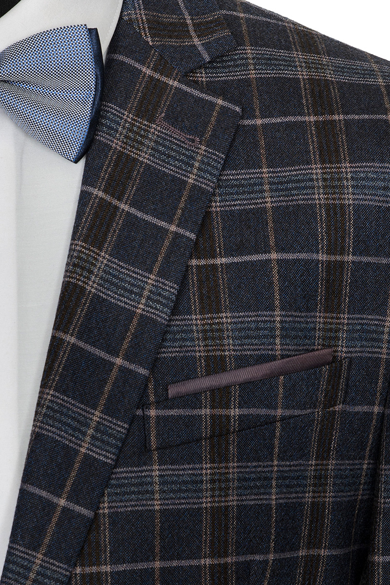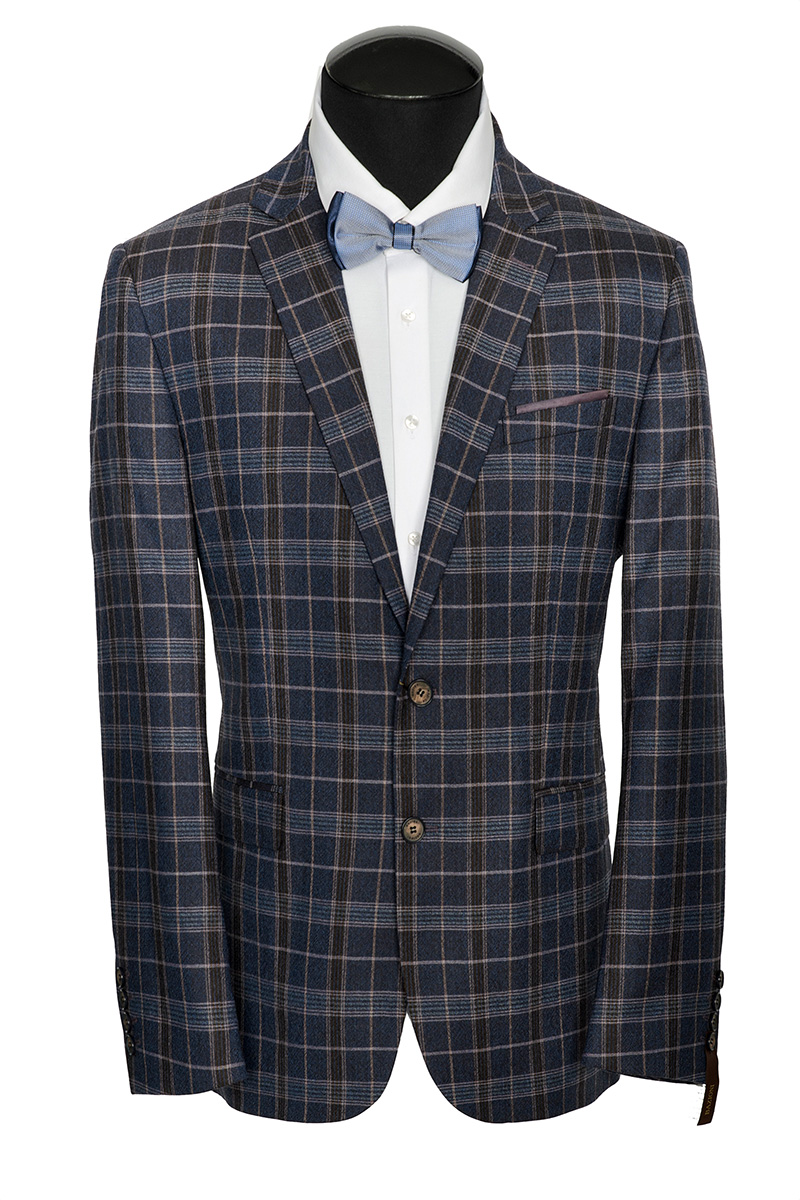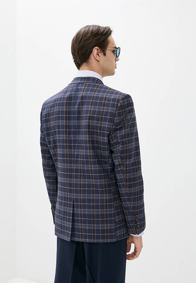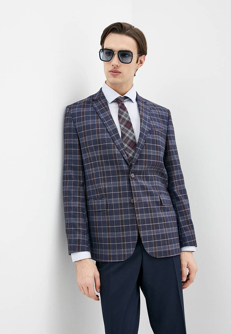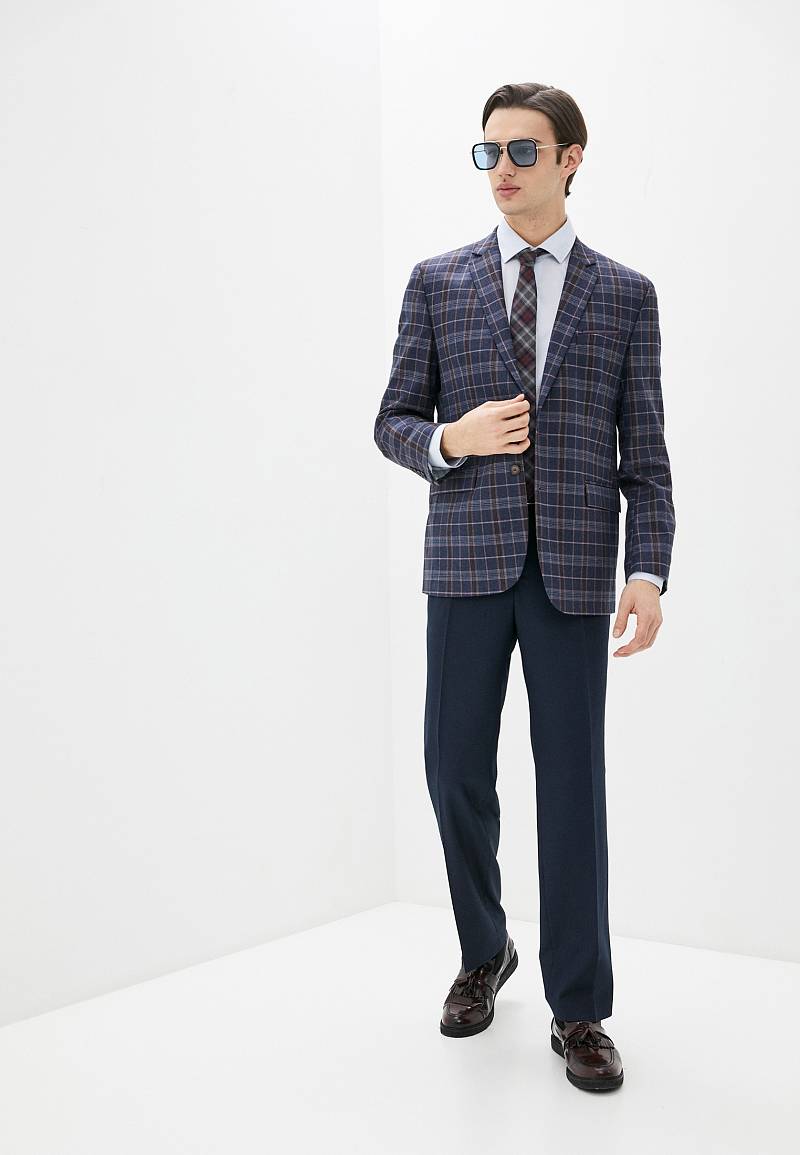 Classic fit, две пуговицы, две шлицы. Контрастные петли, декоративная пуговица на лацкане.