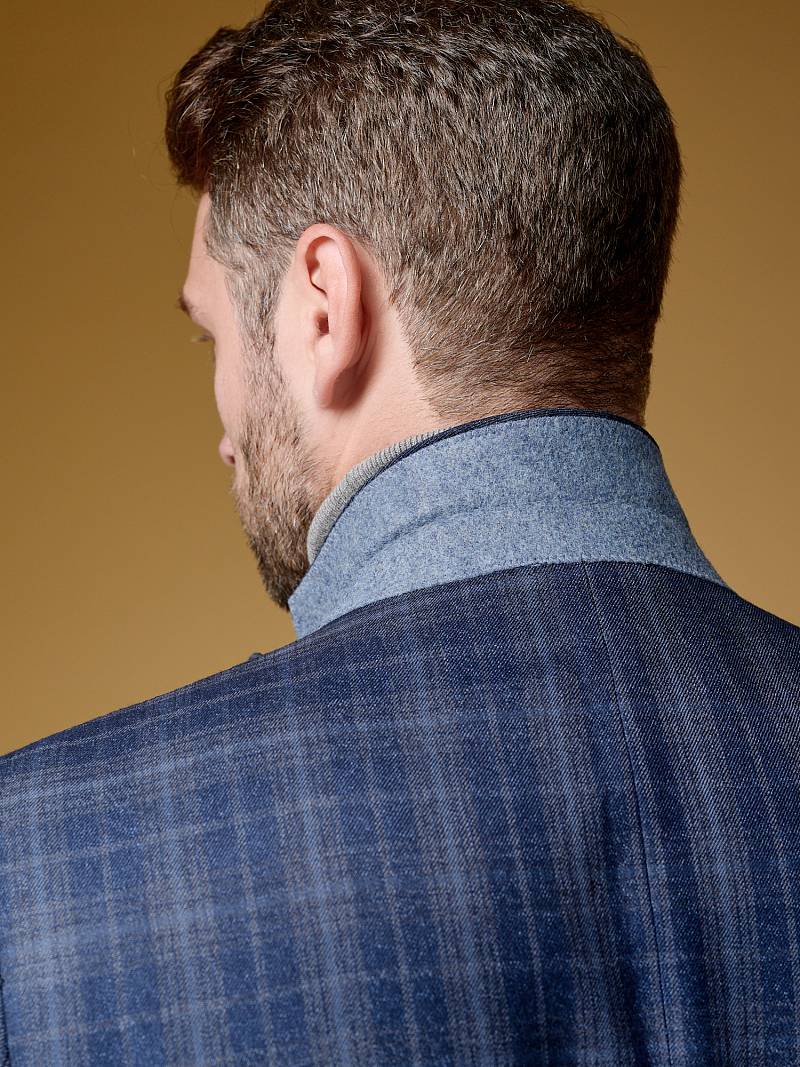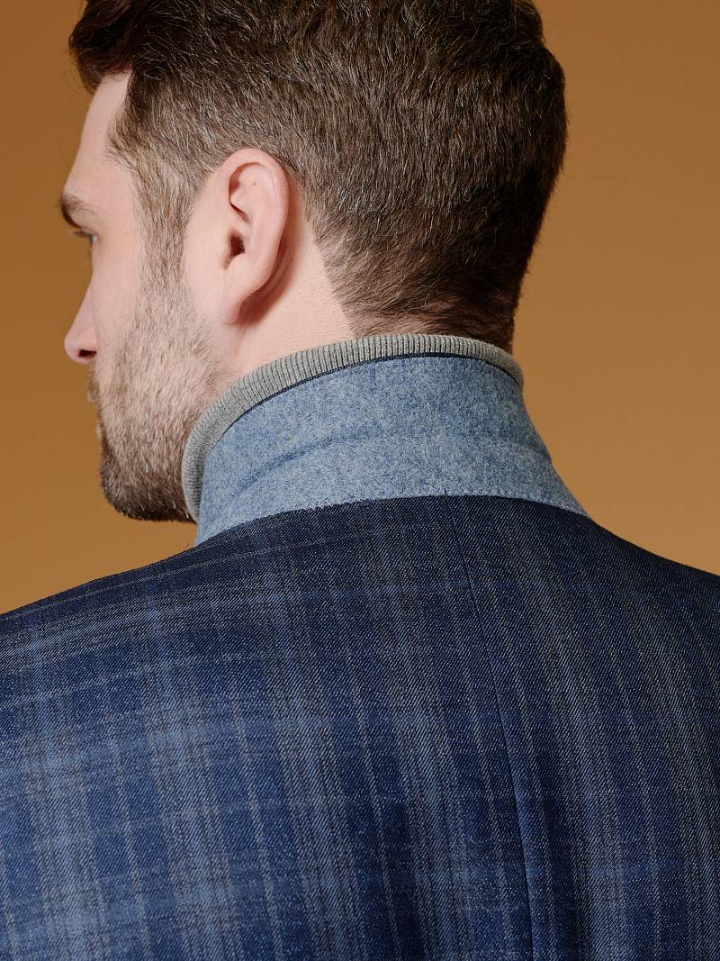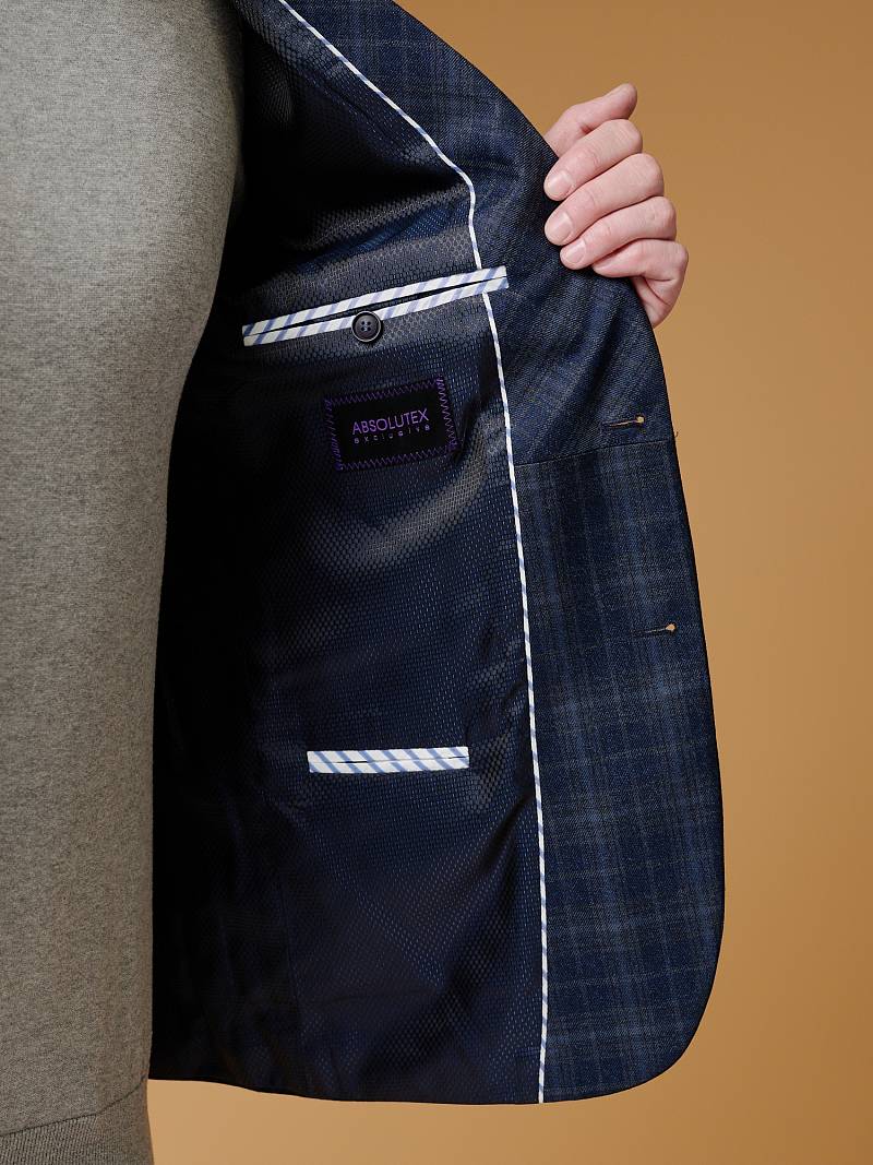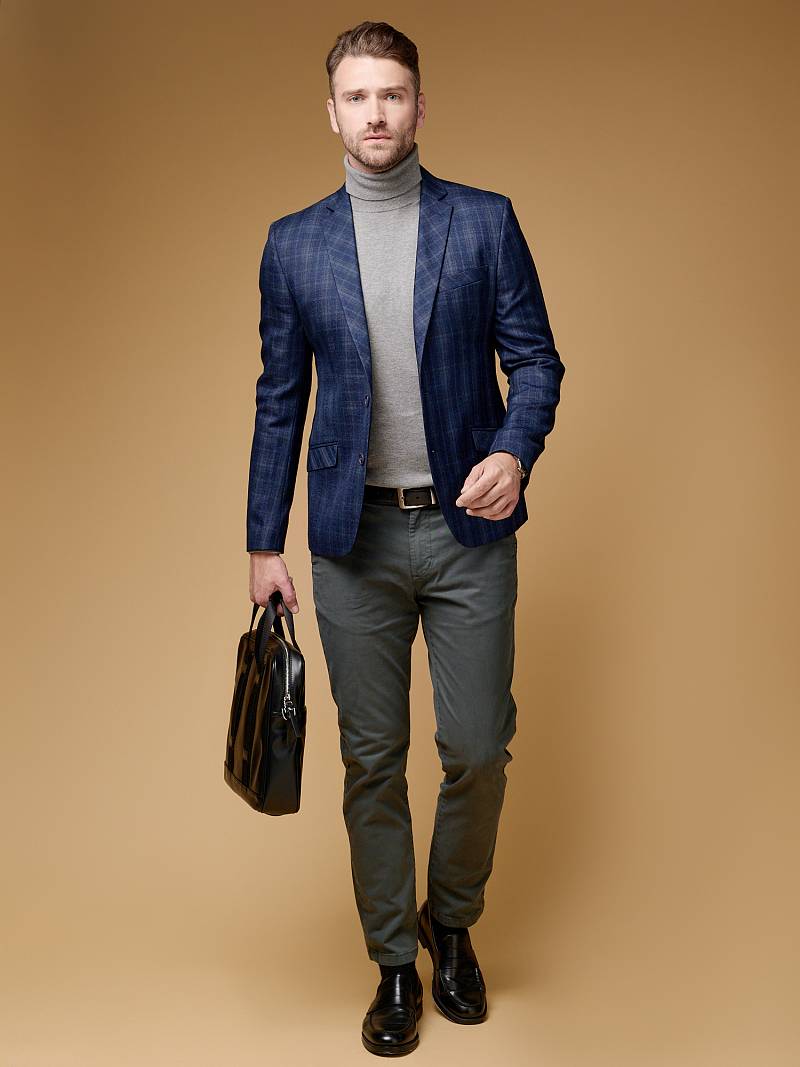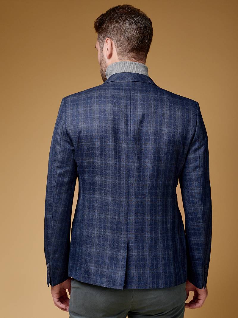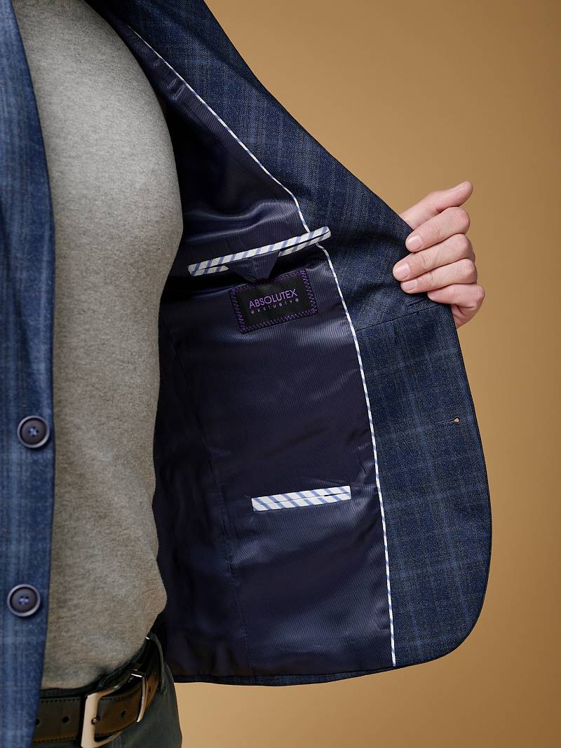 Classic fit, две пуговицы, одна шлица. Лацкана, нагрудная листочка и клапаны карманов по косой.