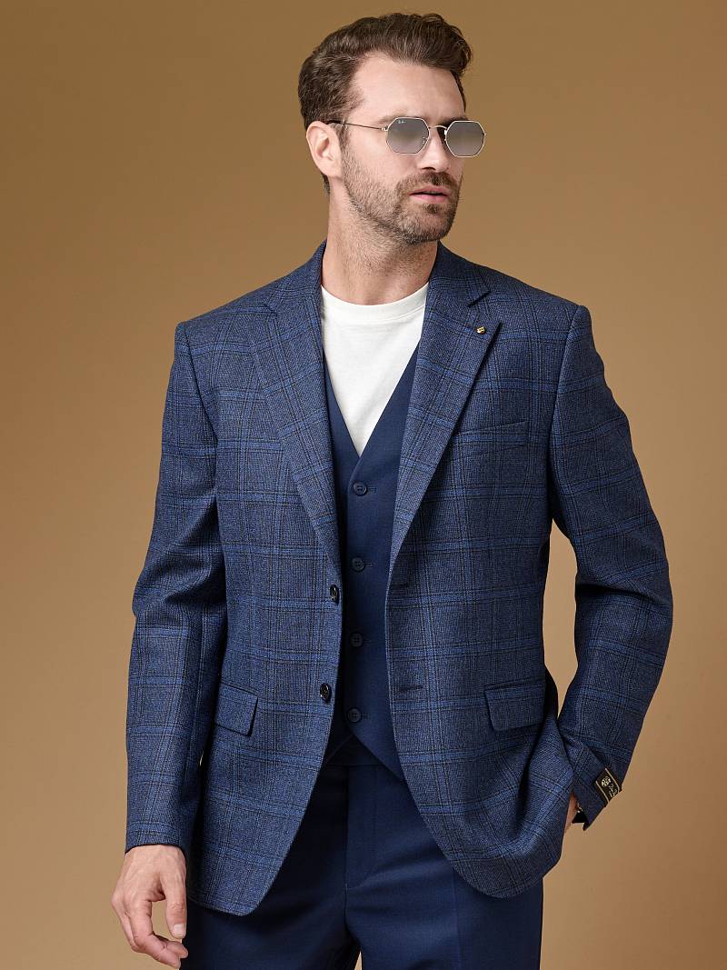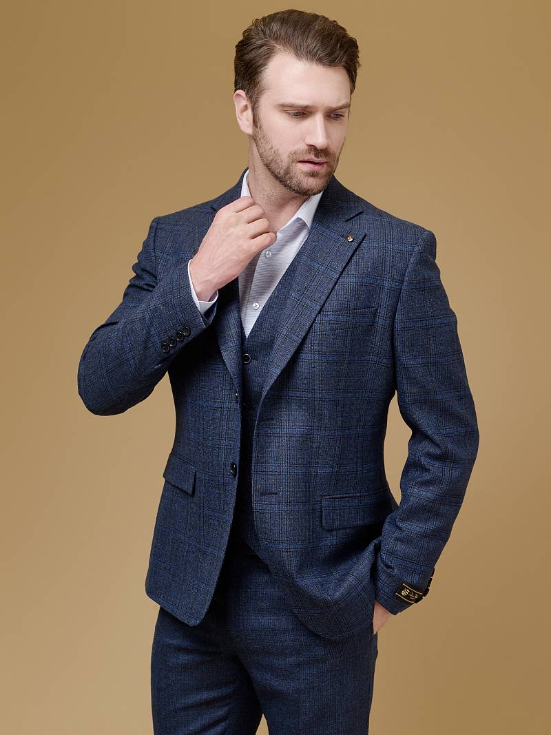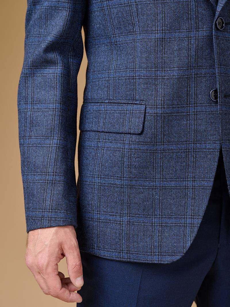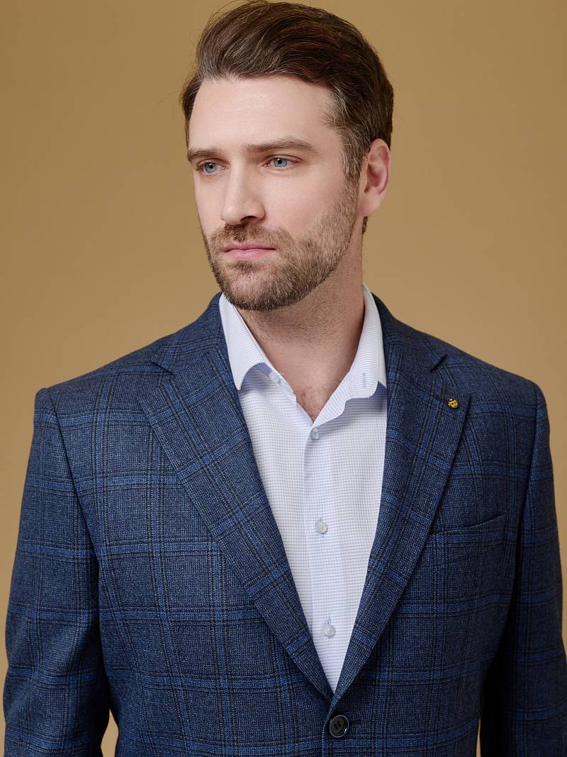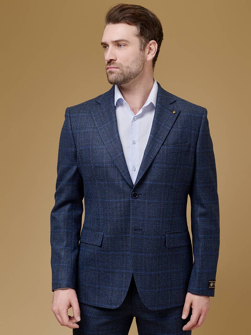 Classic fit (ПОЛУПРИЛЕГАЮЩИЙ СИЛУЭТ), Пиджак однобортный на две пуговицы, с двумя боковыми карманами и нагрудной листочкой. Рукава втачные, двухшовные со шлицей и четырьмя декоративными пуговицами. По спинке расположены две шлицы. Пиджак на подкладке, с двумя внутренними карманами.