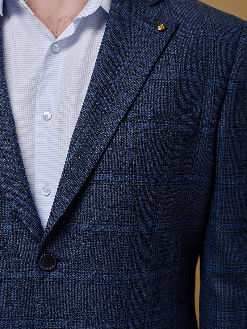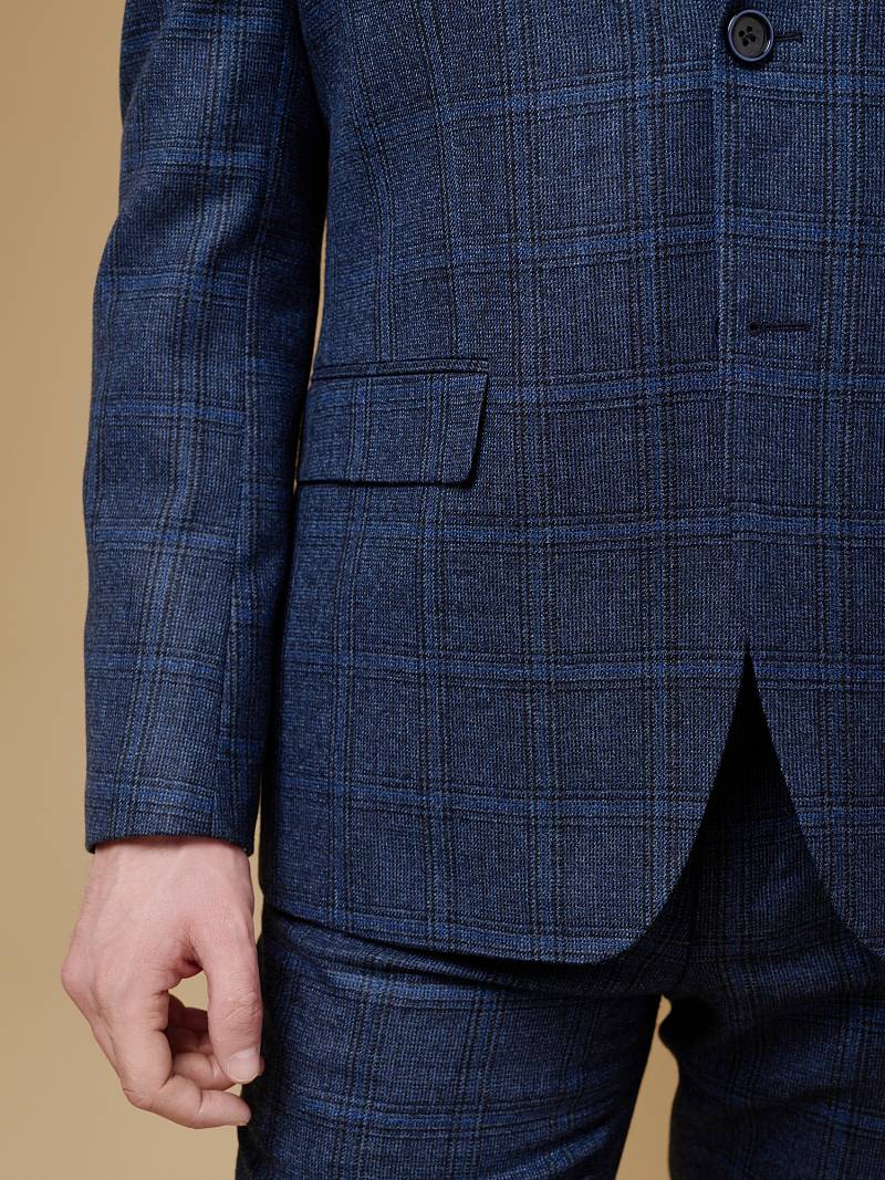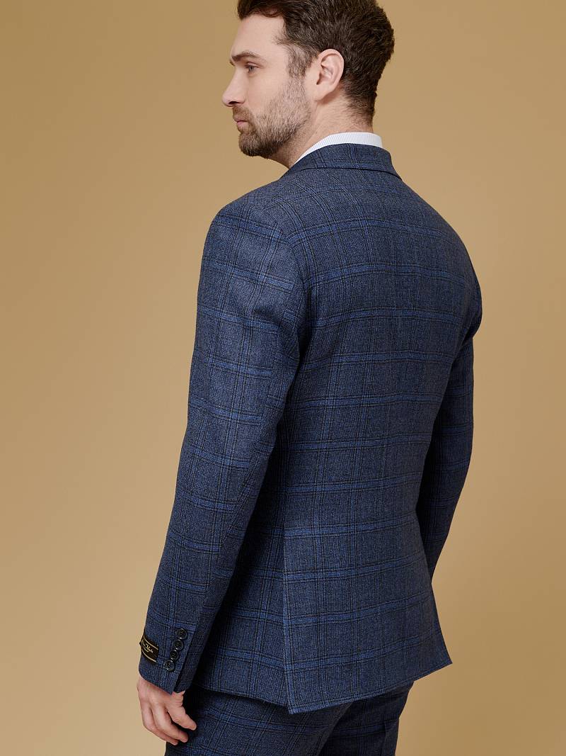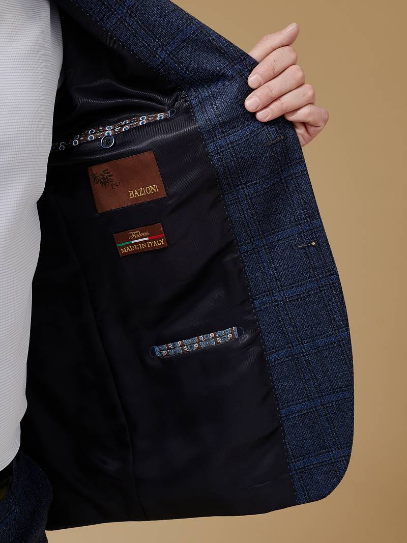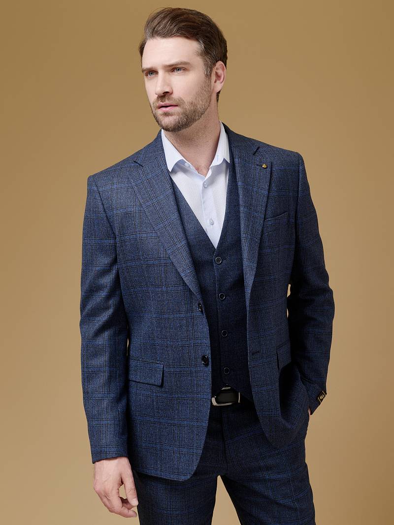Classic fit (ПОЛУПРИЛЕГАЮЩИЙ СИЛУЭТ), Пиджак однобортный на две пуговицы, с двумя боковыми карманами и нагрудной листочкой. Рукава втачные, двухшовные со шлицей и четырьмя декоративными пуговицами. По спинке расположены две шлицы. Пиджак на подкладке, с двумя внутренними карманами.