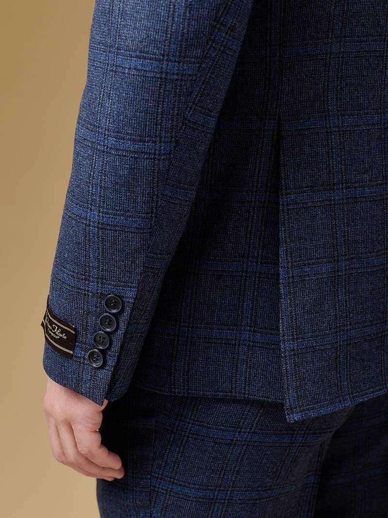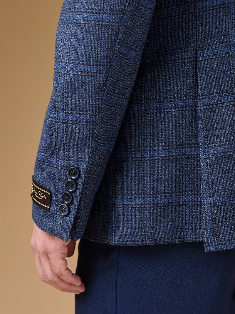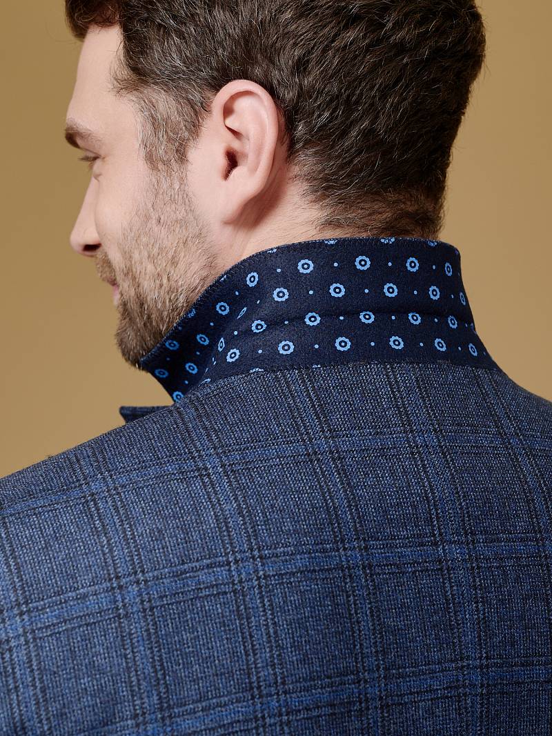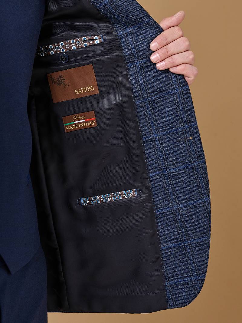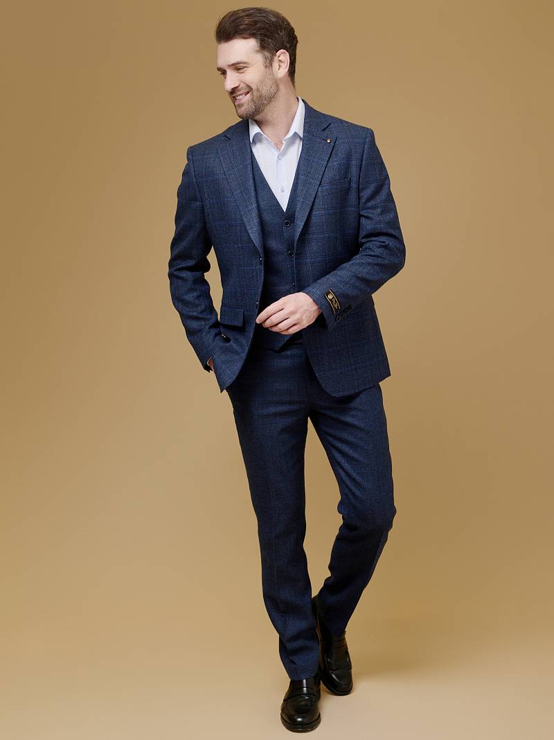 Classic fit (ПОЛУПРИЛЕГАЮЩИЙ СИЛУЭТ), Пиджак однобортный на две пуговицы, с двумя боковыми карманами и нагрудной листочкой. Рукава втачные, двухшовные со шлицей и четырьмя декоративными пуговицами. По спинке расположены две шлицы. Пиджак на подкладке, с двумя внутренними карманами.