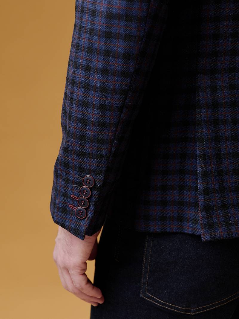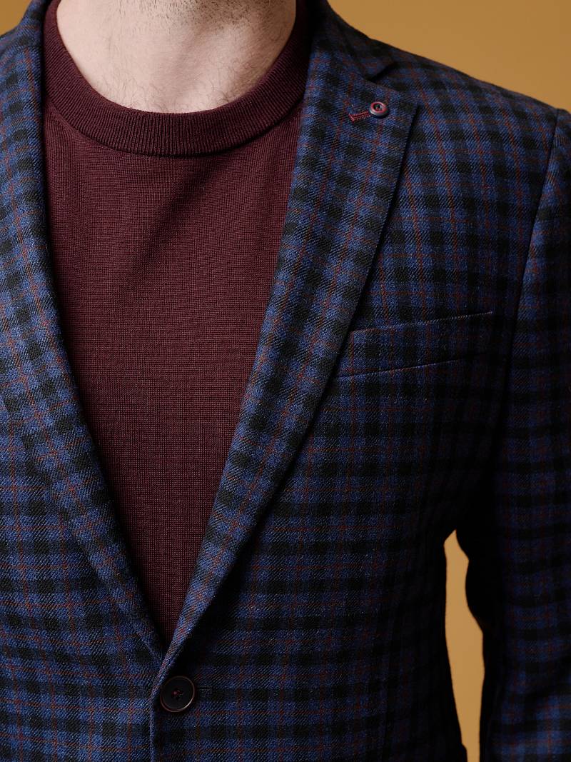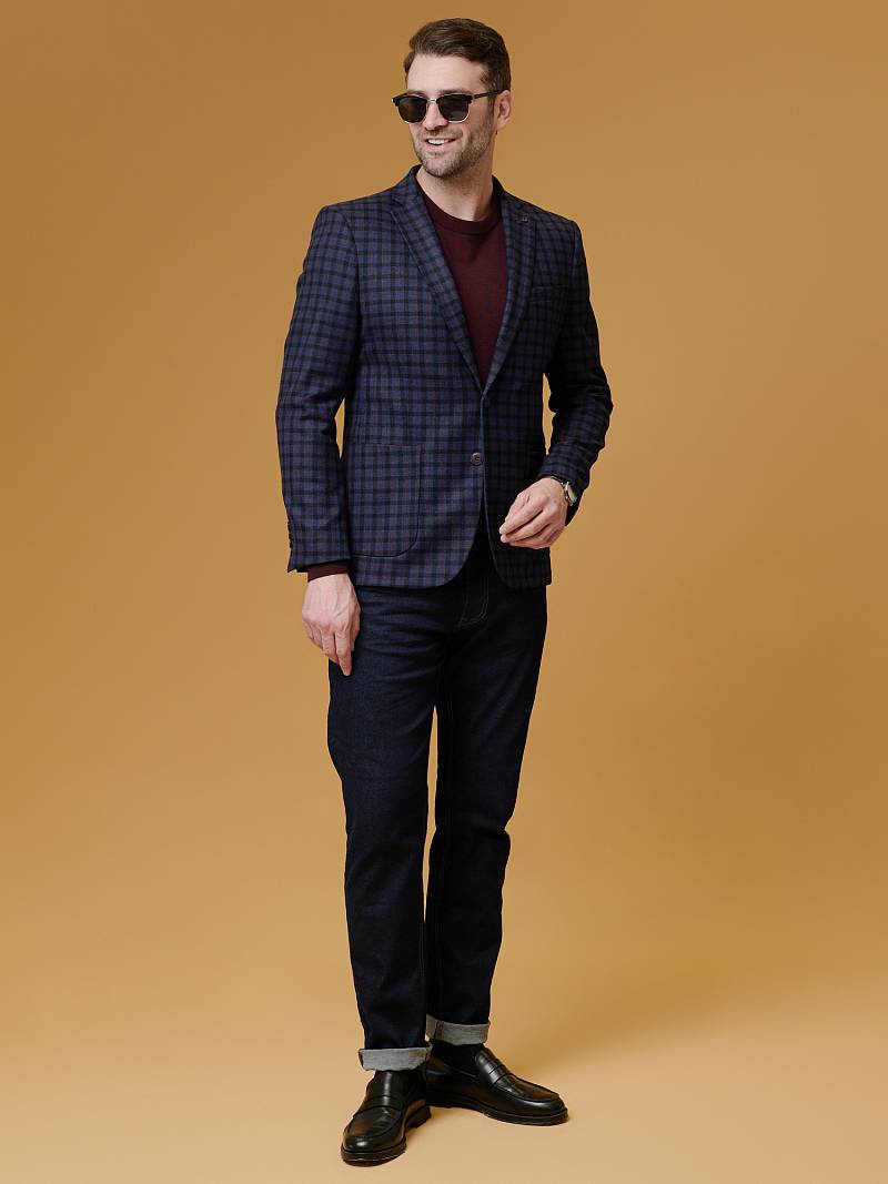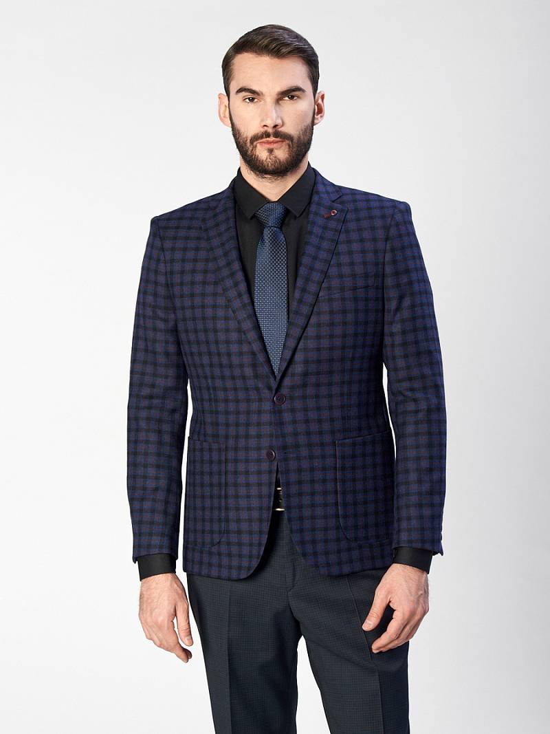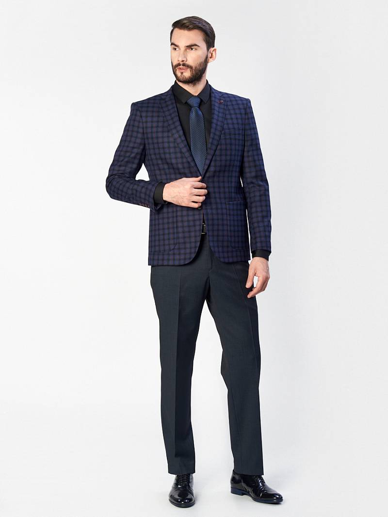 Classic fit, Классический мужской пиджак на две пуговицы, спинка без подкладки, с боковыми накладными карманами и одним нагрудным, по спинке две шлицы, в нагрудном кармане расположен съемный декоративный платок.