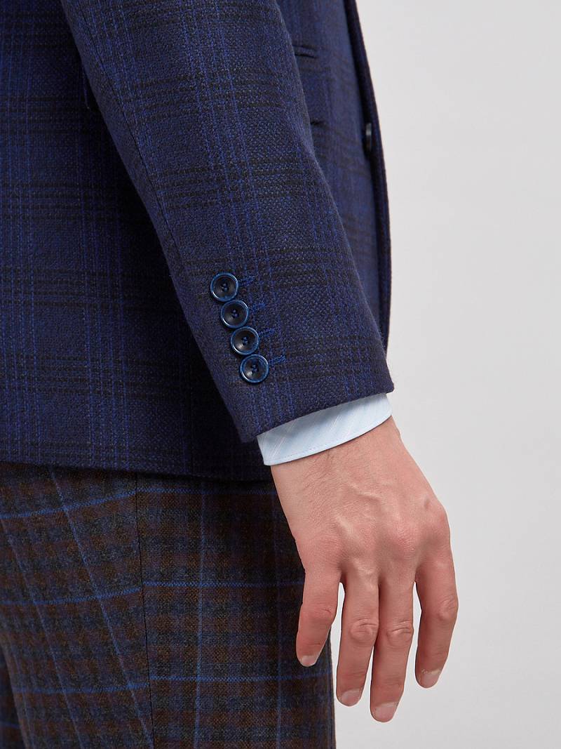 Classic fit, три пуговицы, одна шлица. спинка без подкладки. Декоративный платок в нагрудной листочке. BAZIONI