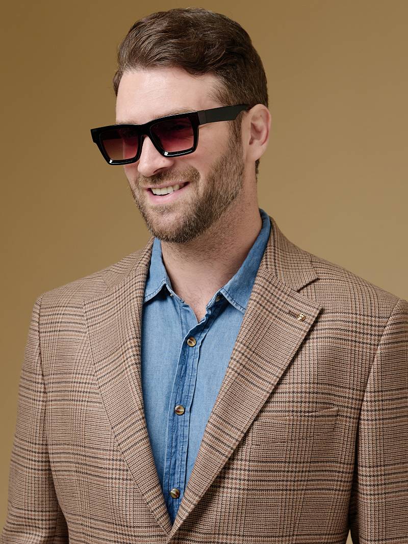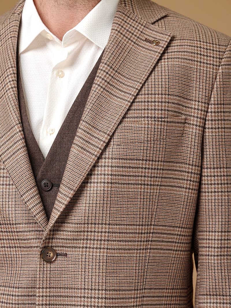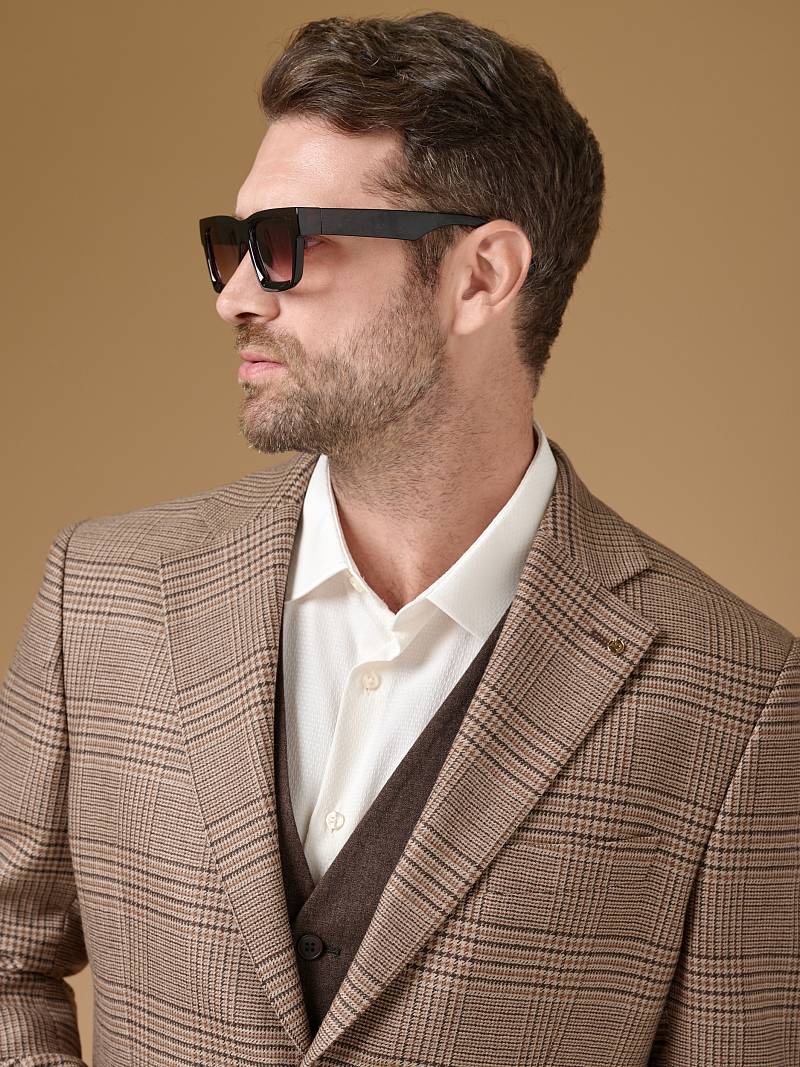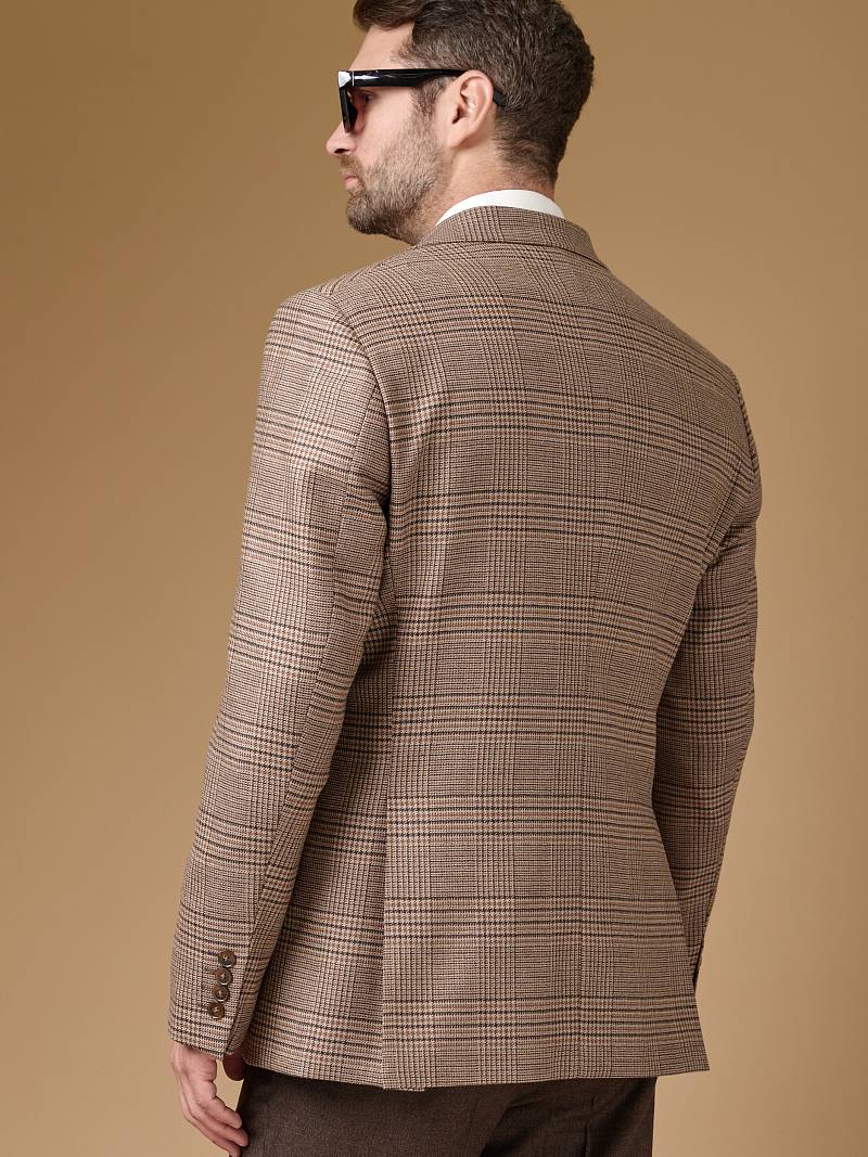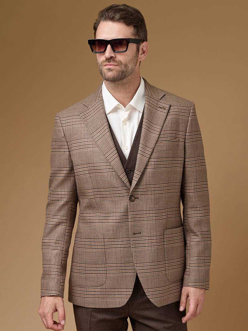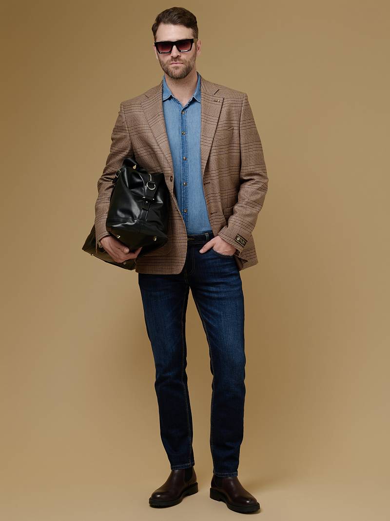Classic fit (ПОЛУПРИЛЕГАЮЩИЙ СИЛУЭТ). Классическая однобортная модель на две пуговицы из шерстяной ткани в клетку подойдет для любого случая в жизни и завершит образ в стиле smart casual. Пиджак с широкими лацканами и мягкой линией плеч отлично сядет по фигуре, а расположенные по спинке две шлицы обеспечат дополнительный комфорт и свободу движения. Для придания образу торжественности подкладку нагрудного кармана можно использовать как платок-паше. Лацканы украсили небольшим значком в виде эмблемы бренда. Обработан пиджак шелковой подкладкой с двумя внутренними карманами. Дизайнеры марки BAZIONI тщательно подходят к выбору материалов. Пуговицы подбираются и красятся индивидуально под каждую ткань, а прикладные материалы используют только от передовых производителей. Пиджак мужской, классический, под джины, повседневный, молодежный, casual, для работы в офисе, модный, для мужа, сына, брата, на праздник.