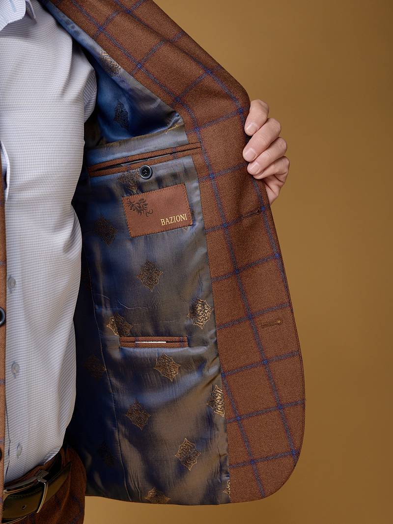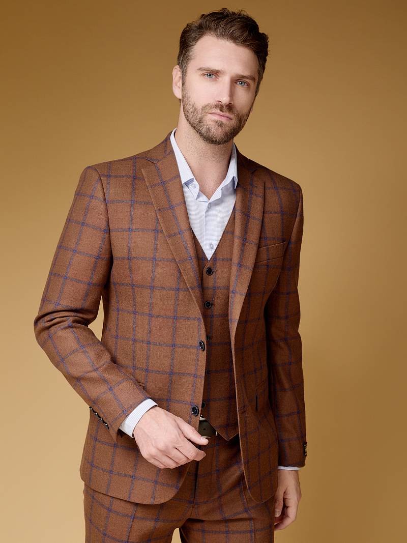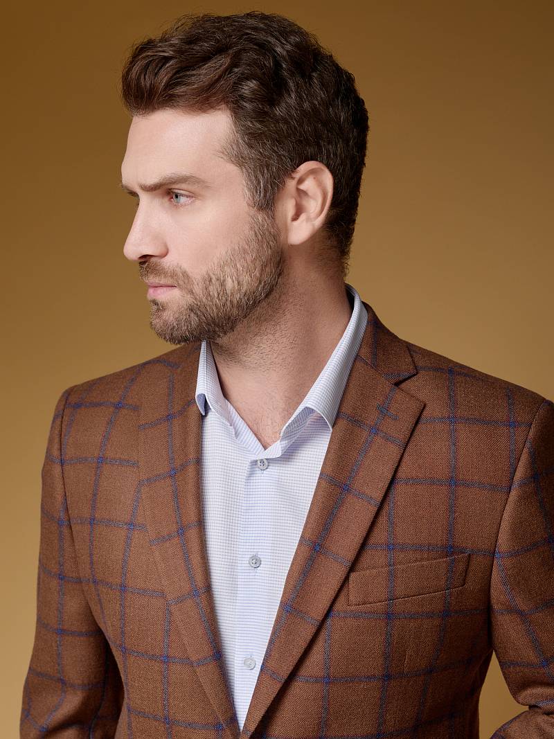 Slim fit, (ПРИЛЕГАЮЩИЙ СИЛУЭТ) рекомендуется брать на размер больше. Классический мужской пиджак на две пуговицы, с боковыми и нагрудным карманами, по спинке одна шлица.