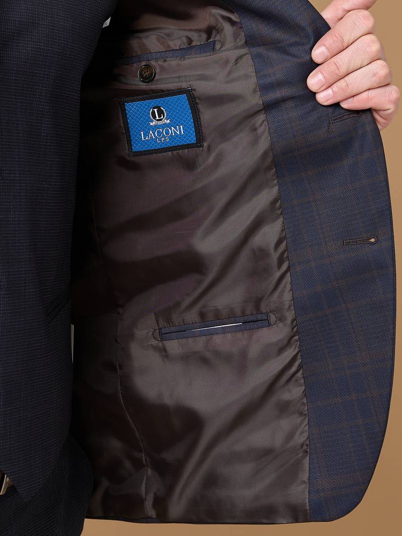 Slim fit (ПРИЛЕГАЮЩИЙ СИЛУЭТ), рекомендуется брать на размер больше. Пиджак марки LACONI– это идеальное сочетание стиля и комфорта для мужчин, которые ценят качественный пошив и изысканный дизайн. Пиджак гармонично впишется в любой образ, его можно носить свободно под джинсы или с классическими брюками. Пиджак с широкими лацканами и мягкой линией плеч отлично сядет по фигуре, а расположенные по спинке две шлицы обеспечат дополнительный комфорт и свободу движения. Шлица на втачных рукавах украшена четырьмя декоративными пуговицами. Для придания образу торжественности подкладку нагрудного кармана можно использовать как платок-паше. Пиджак на подкладке с двумя внутренними карманами. Дизайнеры марки LACONI тщательно подходят к выбору материалов. Пуговицы подбираются и красятся индивидуально под каждую ткань, а прикладные материалы используют только от передовых производителей. Пиджак мужской, классический, под джины, повседневный, молодежный, casual, для работы в офисе, модный, для мужа, сына, брата, на праздник.