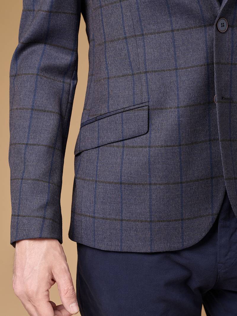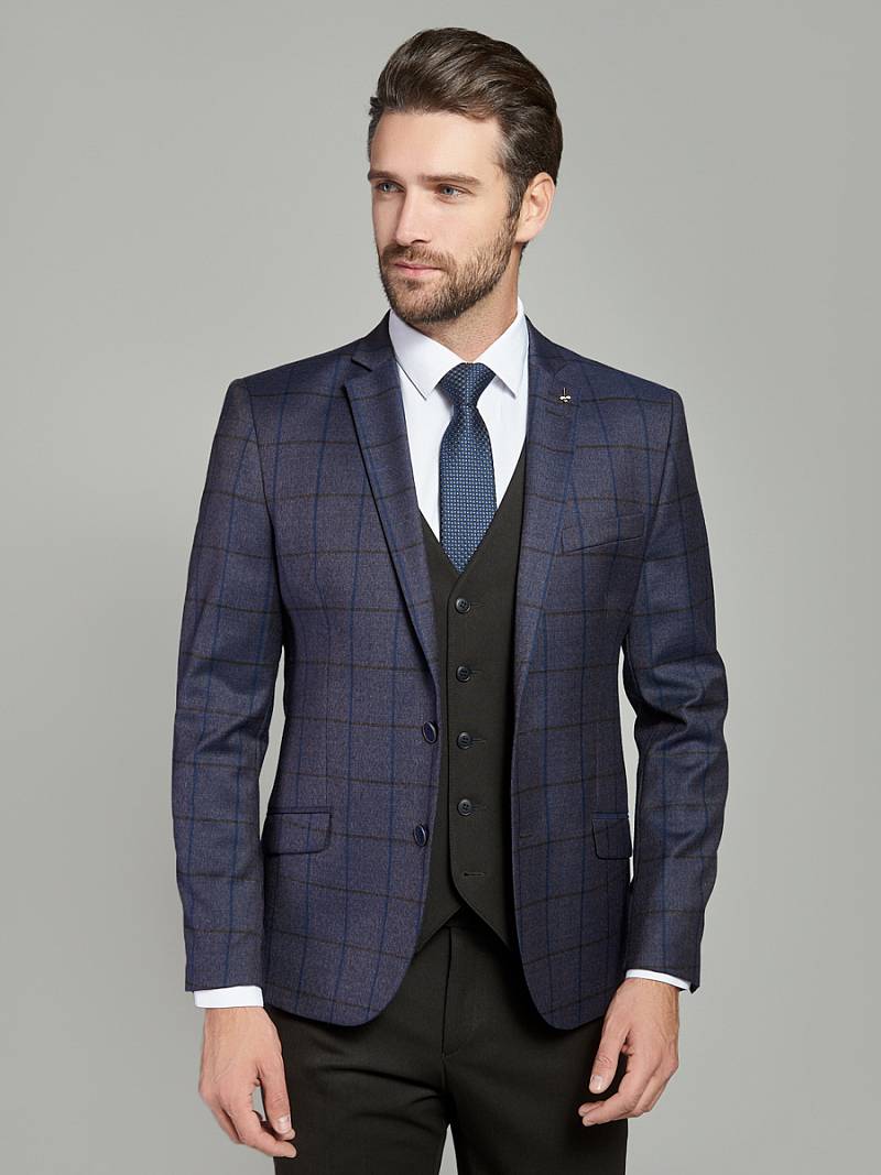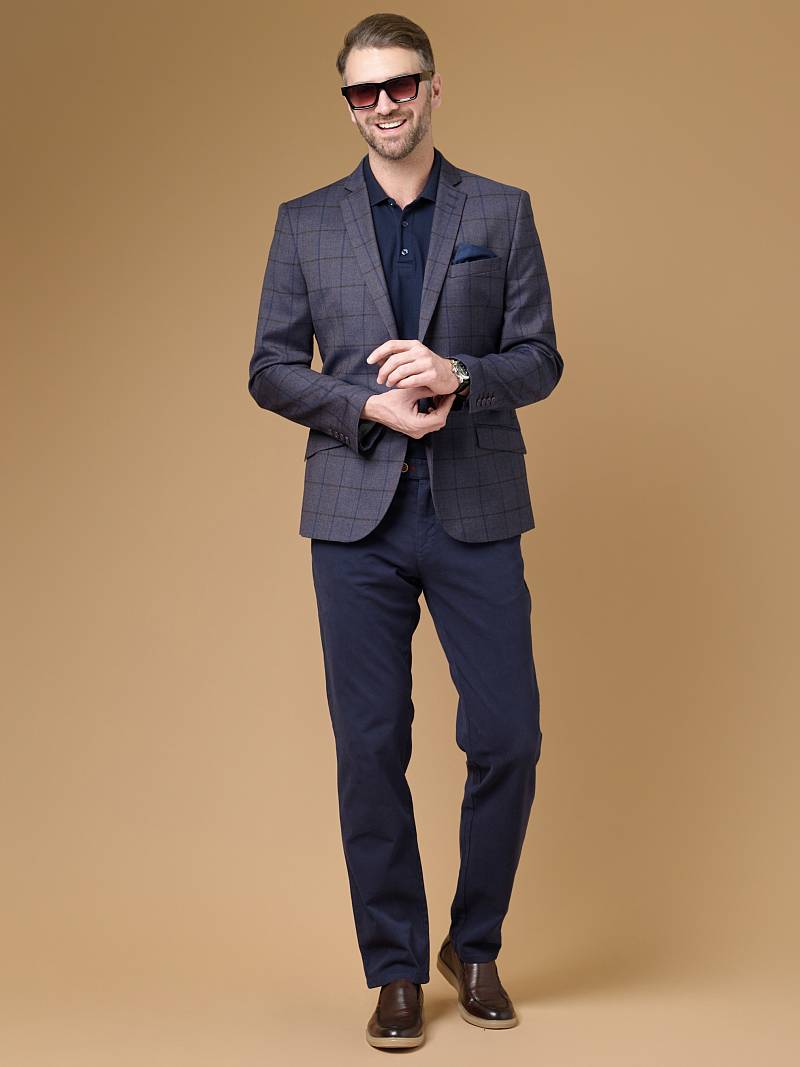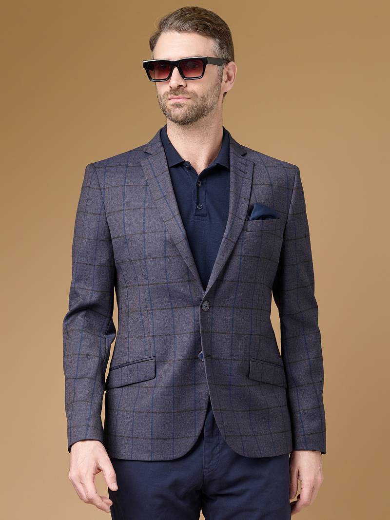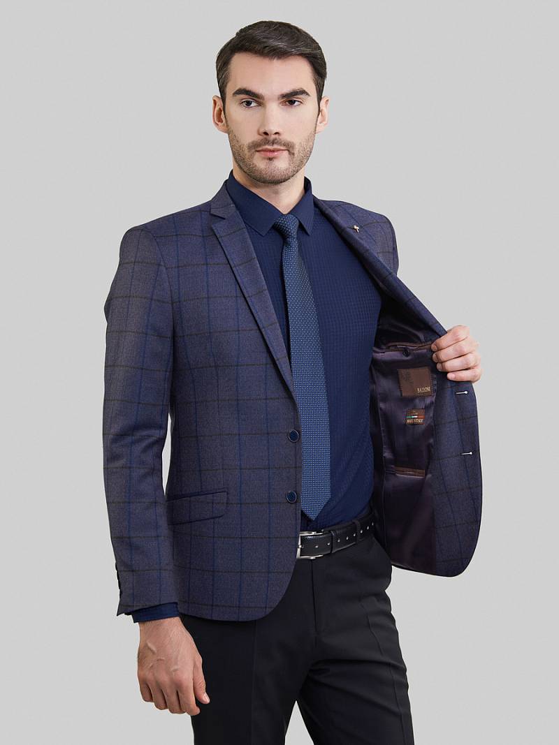Slim fit, Классический мужской пиджак на две пуговицы, с боковыми и нагрудным карманами, по спинке две шлицы.