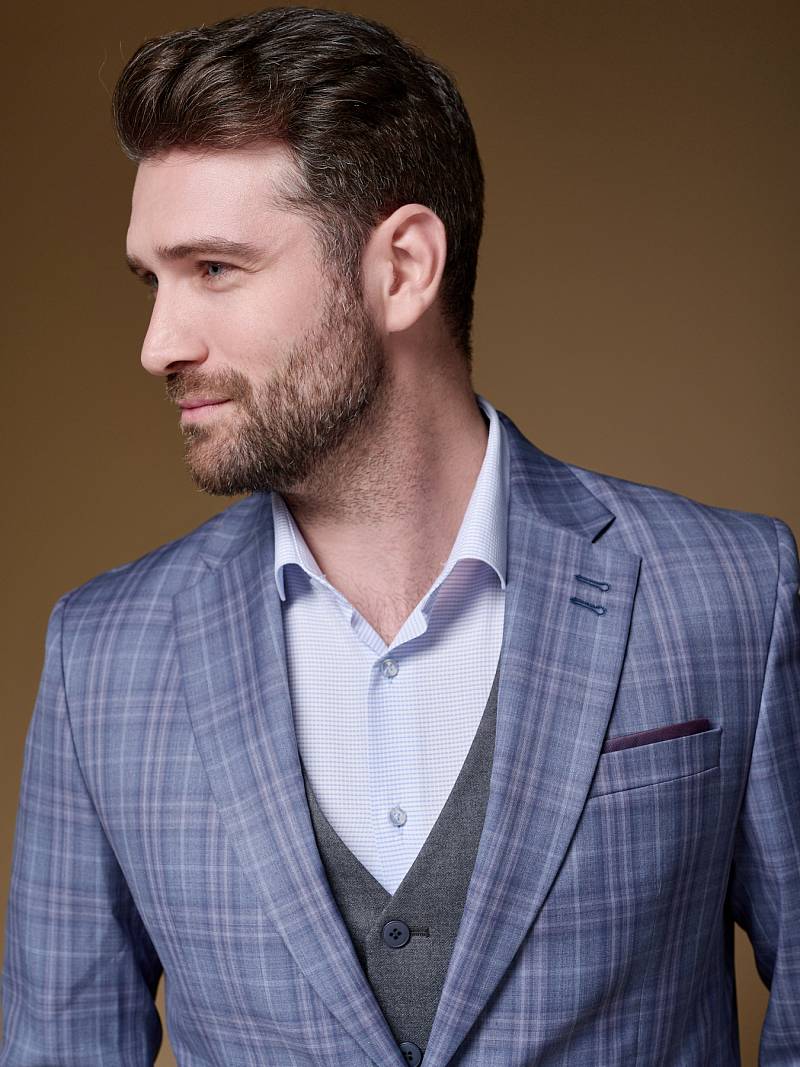 Classic fit, Классический мужской пиджак на две пуговицы, с боковыми и нагрудным карманами, по спинке две шлицы.