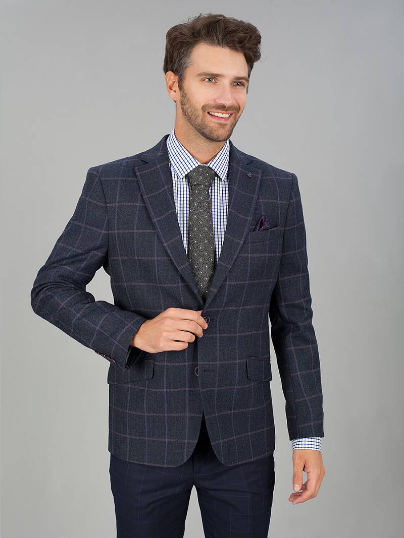 Slim fit, Классический мужской пиджак на две пуговицы, спинка без подкладки, с боковыми и нагрудным карманами, по спинке две шлицы.