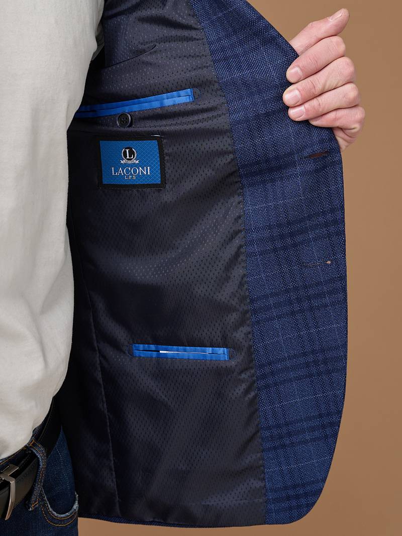 Slim fit (ПРИЛЕГАЮЩИЙ СИЛУЭТ), рекомендуется брать на размер больше. Модный пиджак в стиле CASUAL марки LACONI– это идеальное сочетание стиля и комфорта для мужчин, которые ценят качественный пошив и изысканный дизайн. Однобортная модель с накладными карманами на две пуговицы из ткани оригинальной расцветки в клетку гармонично впишется в любой образ. Пиджак широкими лацканами и мягкой линией плеч отлично сядет по фигуре, а расположенные по спинке две шлицы обеспечат дополнительный комфорт и свободу движения. Для придания образу торжественности подкладку нагрудного кармана можно использовать как платок-паше. Обработан пиджак подкладкой с двумя внутренними карманами. Дизайнеры марки LACONI тщательно подходят к выбору материалов. Пуговицы подбираются и красятся индивидуально под каждую ткань, а прикладные материалы используют только от передовых производителей. Пиджак мужской, классический, под джины, повседневный, молодежный, casual, для работы в офисе, модный, для мужа, сына, брата, на праздник.