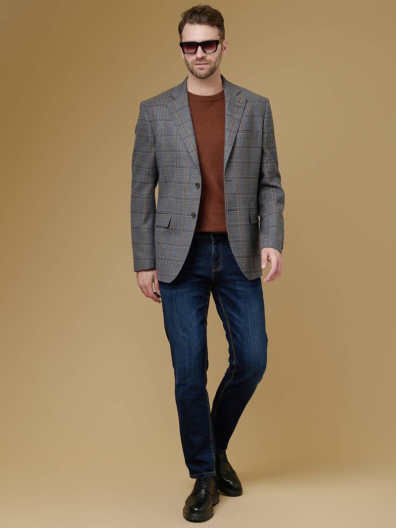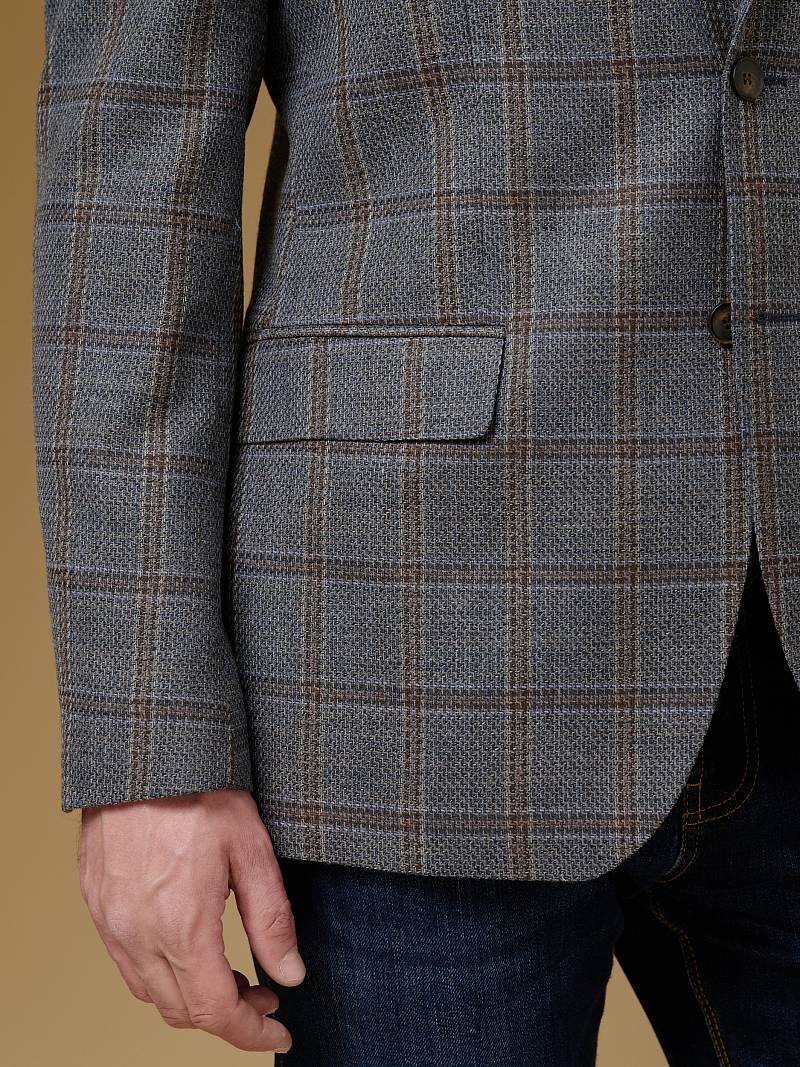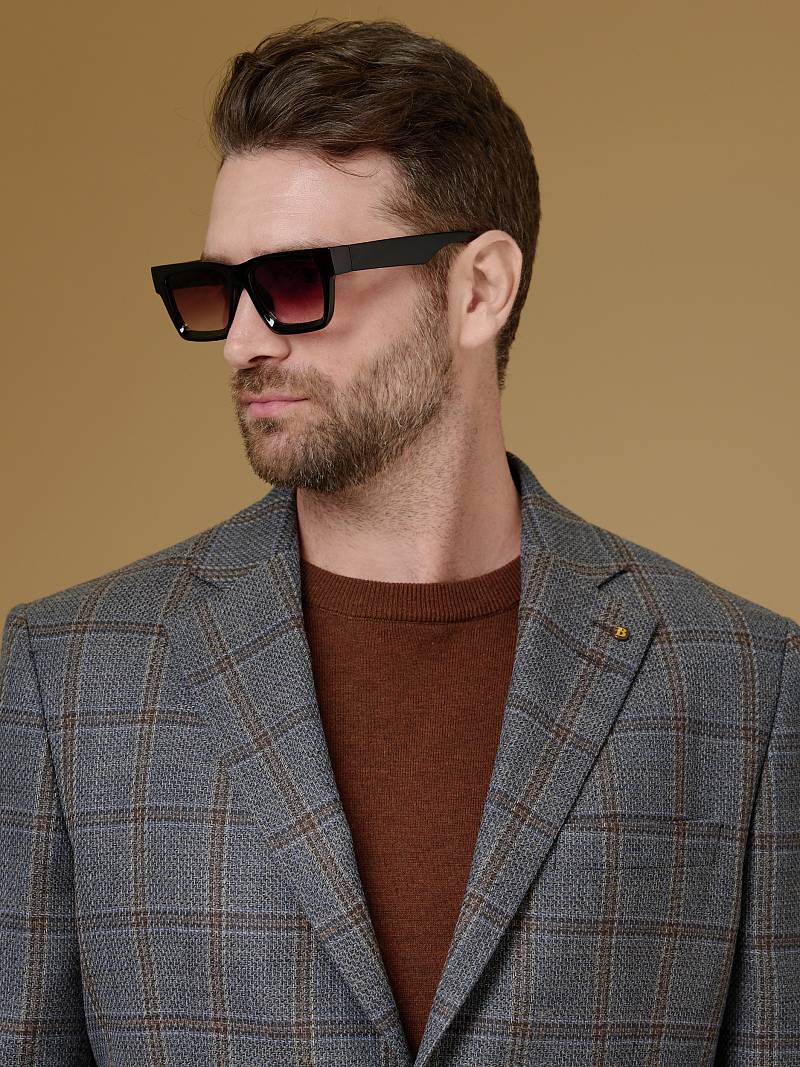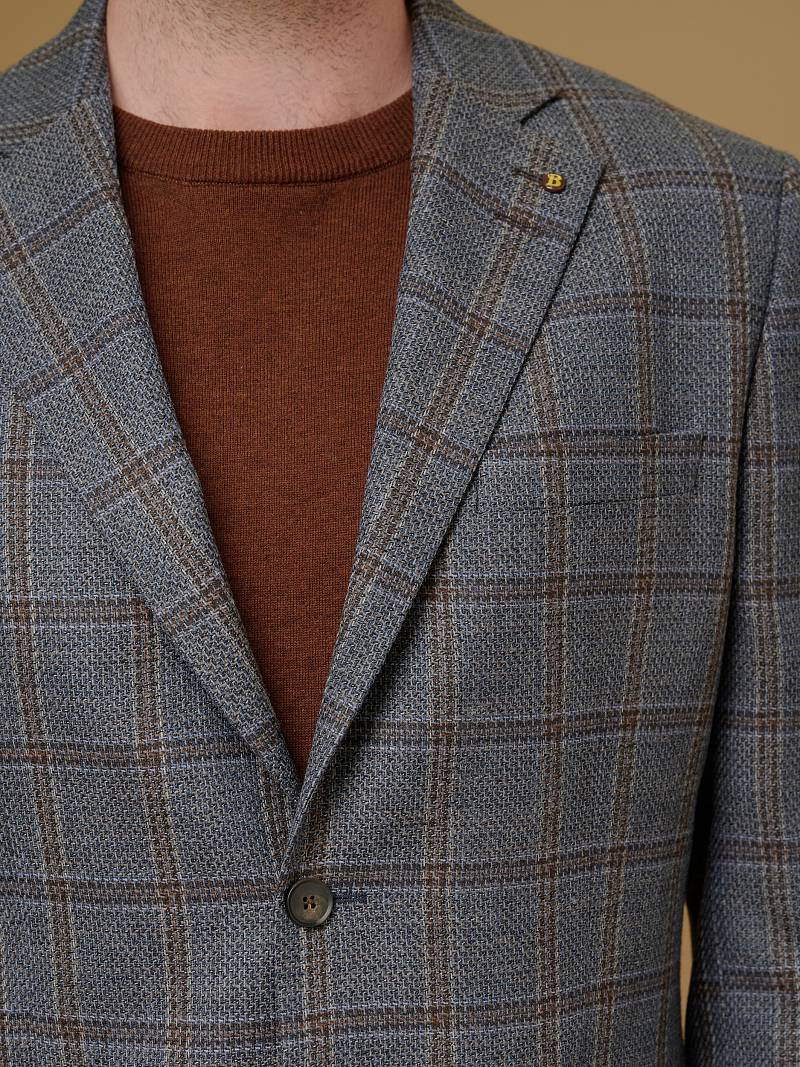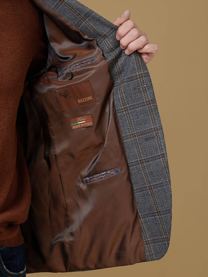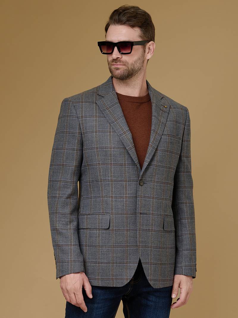 Classic fit (ПОЛУПРИЛЕГАЮЩИЙ СИЛУЭТ). Пиджак марки BAZIONI– это идеальное сочетание стиля и комфорта для мужчин, которые ценят качественный пошив и изысканный дизайн. Классическая однобортная модель на две пуговицы из шерстяной ткани оригинальной расцветки в клетку гармонично впишется в любой образ. Пиджак широкими лацканами и мягкой линией плеч отлично сядет по фигуре, а расположенные по спинке две шлицы обеспечат дополнительный комфорт и свободу движения. Для придания образу торжественности подкладку нагрудного кармана можно использовать как платок-паше. Лацканы украсили небольшим значком в виде эмблемы бренда. Обработан пиджак шелковой подкладкой с двумя внутренними карманами. Дизайнеры марки BAZIONI тщательно подходят к выбору материалов. Пуговицы подбираются и красятся индивидуально под каждую ткань, а прикладные материалы используют только от передовых производителей. Пиджак мужской, классический, под джины, повседневный, молодежный, casual, для работы в офисе, модный, для мужа, сына, брата, на праздник.