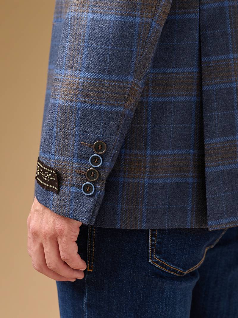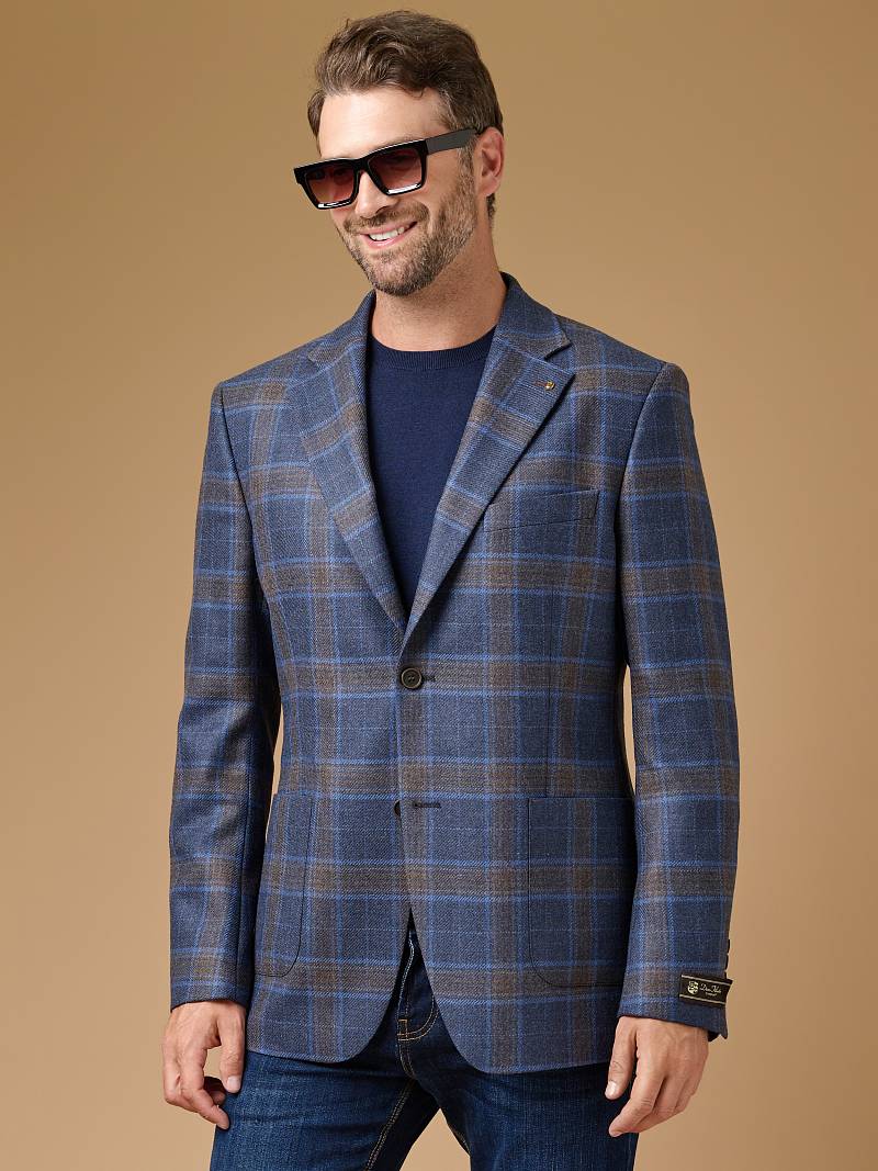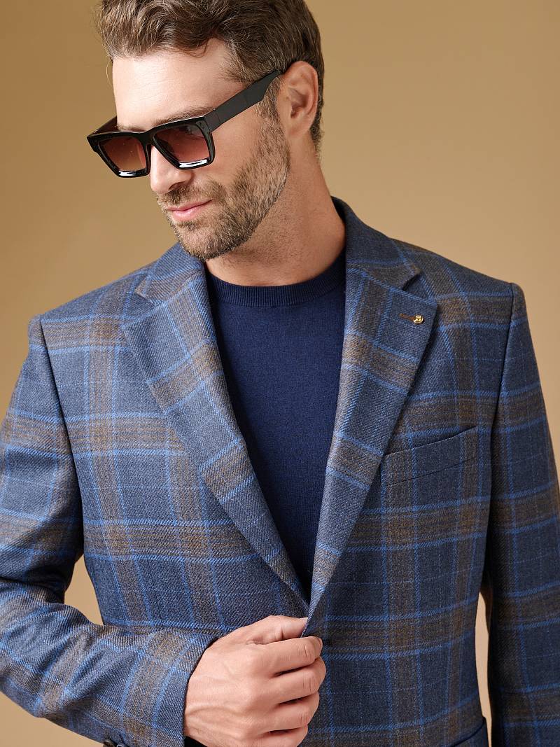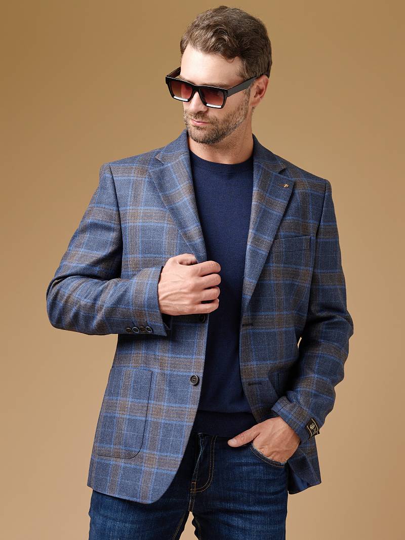 Classic fit (ПОЛУПРИЛЕГАЮЩИЙ СИЛУЭТ). Модный пиджак в стиле CASUAL выполнен из шерстяной ткани в яркую клетку. Модель с накладными карманами гармонично впишется в любой образ, его можно носить свободно под джинсы или с классическими брюкими. Пиджак с широкими лацканами и мягкой линией плеч отлично сядет по фигуре, а расположенные по спинке две шлицы обеспечат дополнительный комфорт и свободу движения. Для придания образу торжественности подкладку нагрудного кармана можно использовать как платок-паше. Лацканы украсили небольшим значком в виде эмблемы бренда. Обработан пиджак шелковой подкладкой с двумя внутренними карманами. Дизайнеры марки BAZIONI тщательно подходят к выбору материалов. Пуговицы подбираются и красятся индивидуально под каждую ткань, а прикладные материалы используют только от передовых производителей. Пиджак мужской, классический, под джины, повседневный, молодежный, casual, для работы в офисе, модный, для мужа, сына, брата, на праздник.