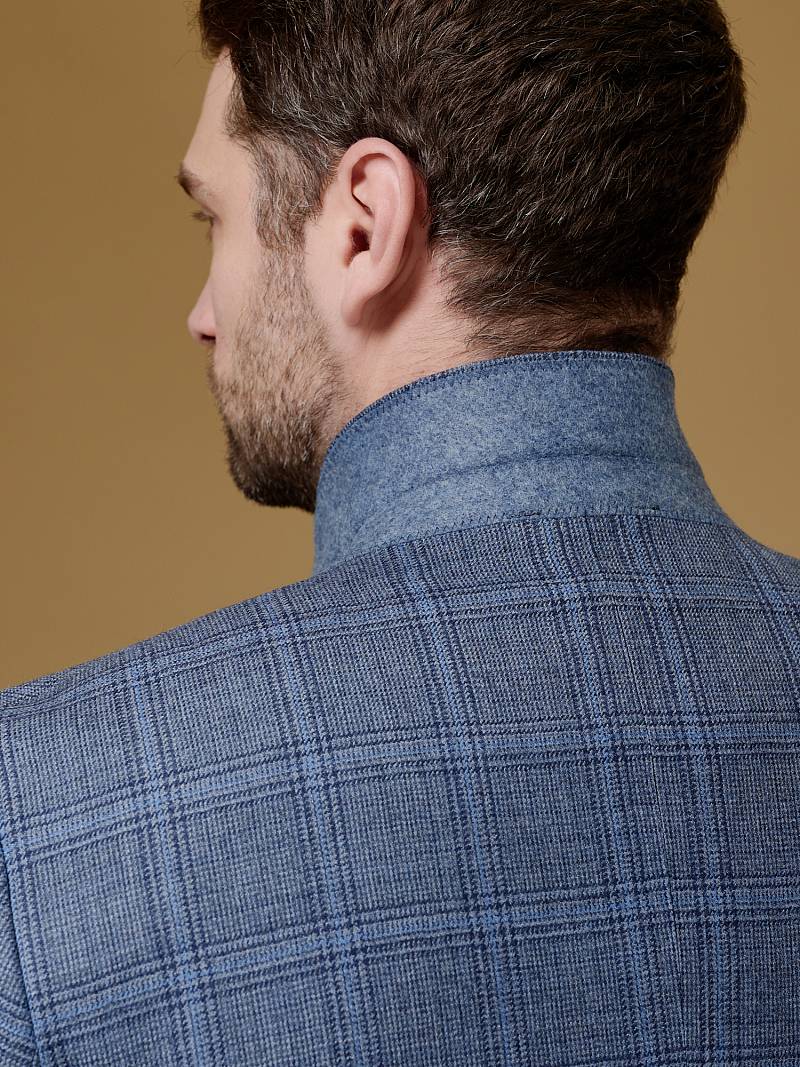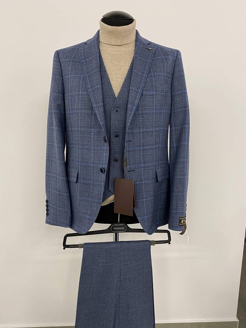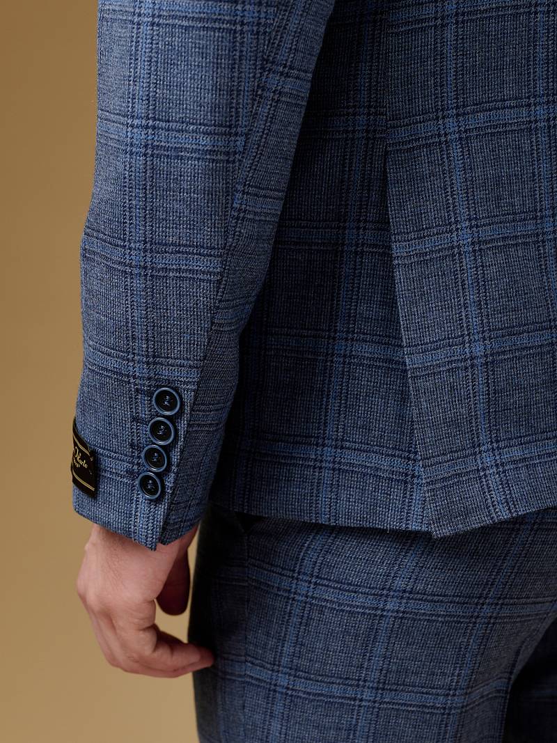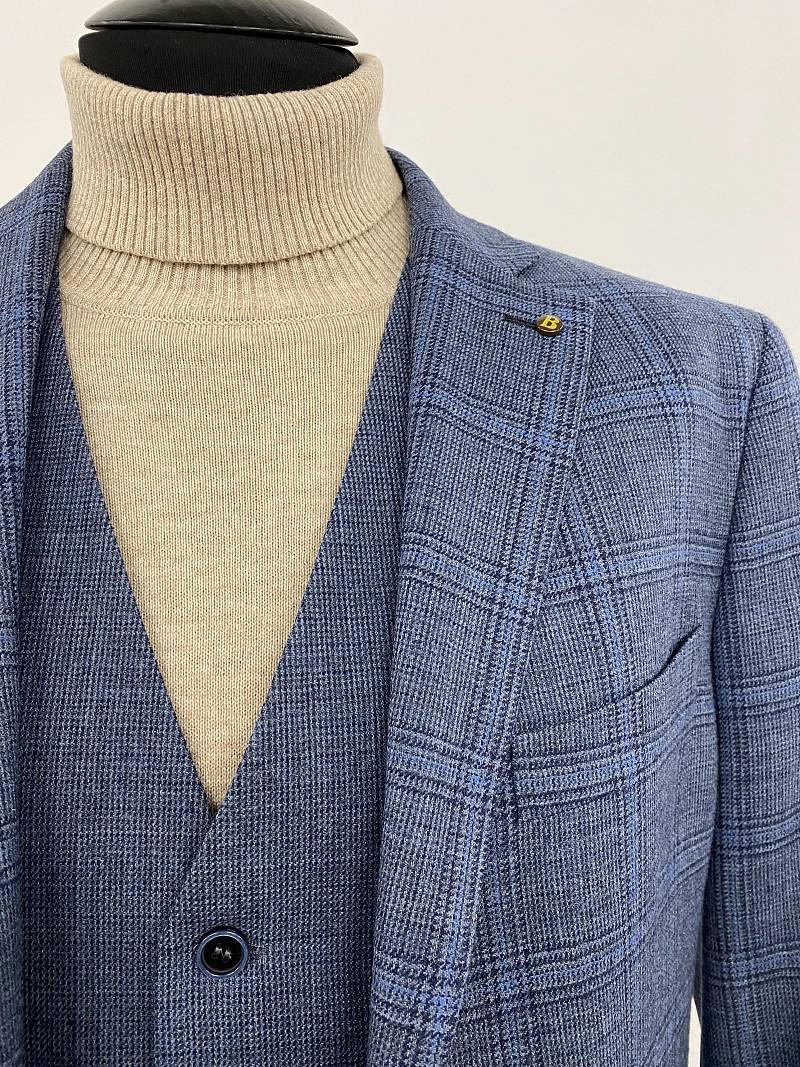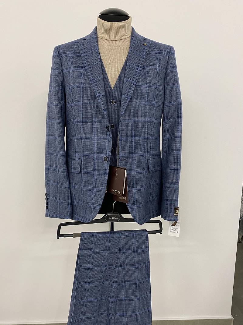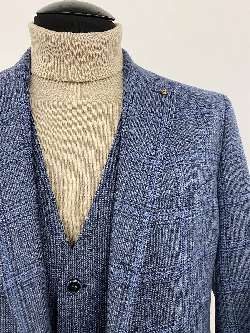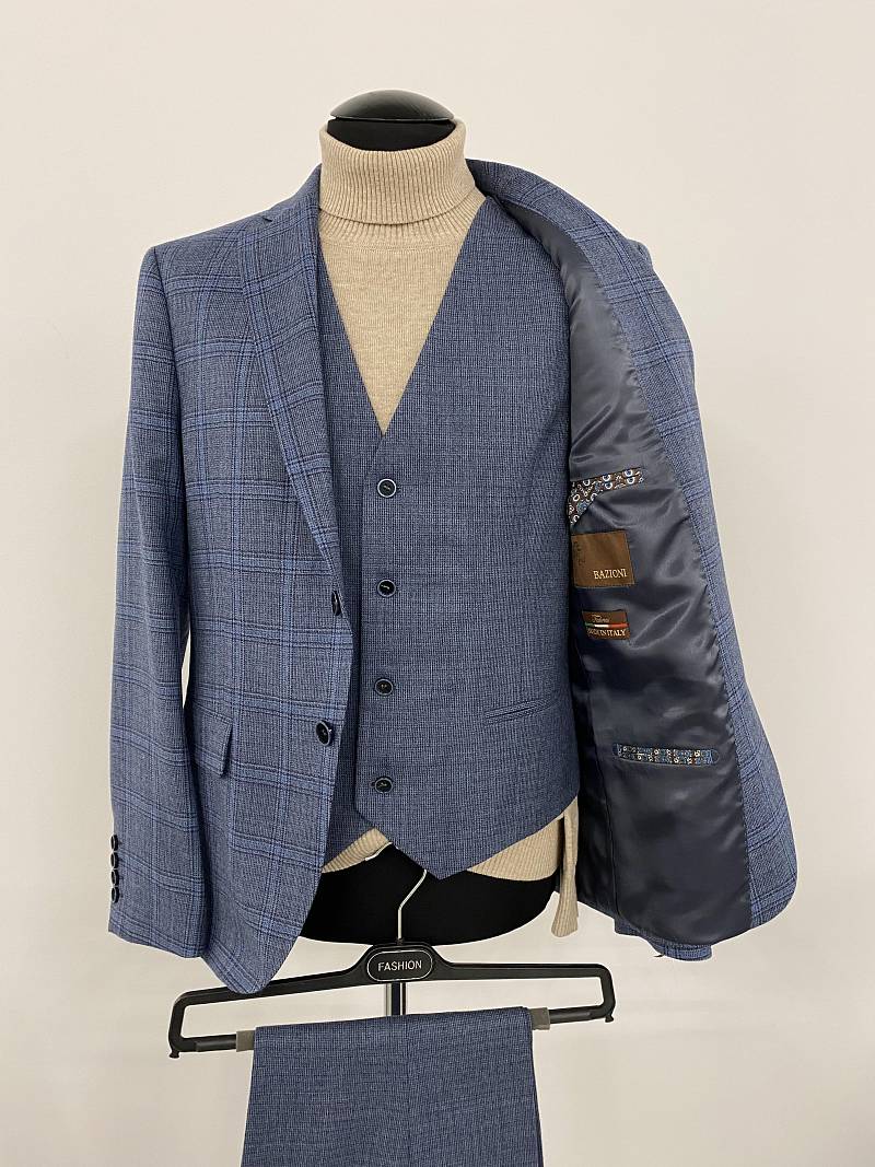 Slim fit (ПРИЛЕГАЮЩИЙ СИЛУЭТ), рекомендуется брать на размер больше. Пиджак однобортный на две пуговицы, с двумя боковыми карманами и нагрудной листочкой. Рукава втачные, двухшовные со шлицей и четырьмя декоративными пуговицами. По спинке расположены две шлицы. Пиджак на подкладке, с двумя внутренними карманами.