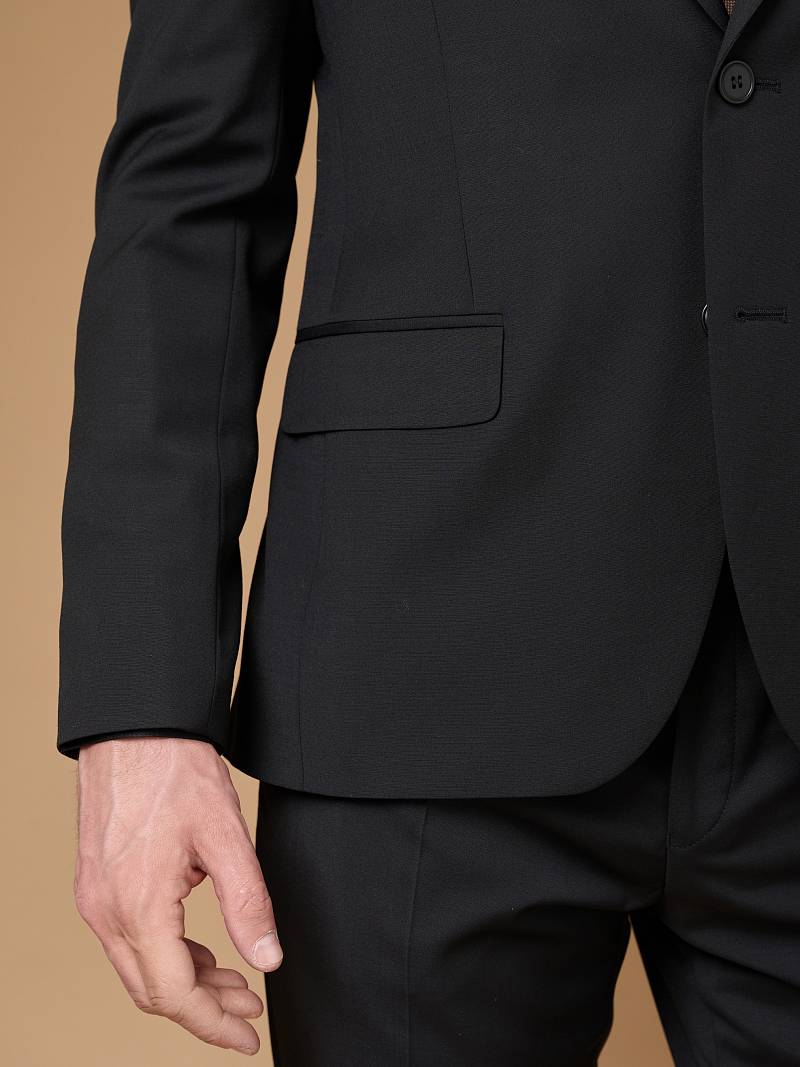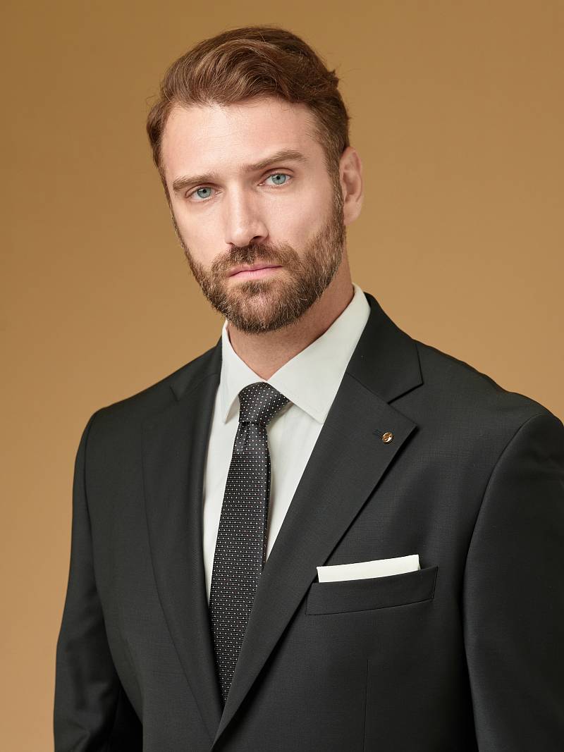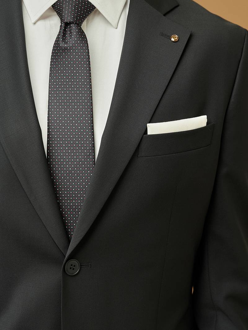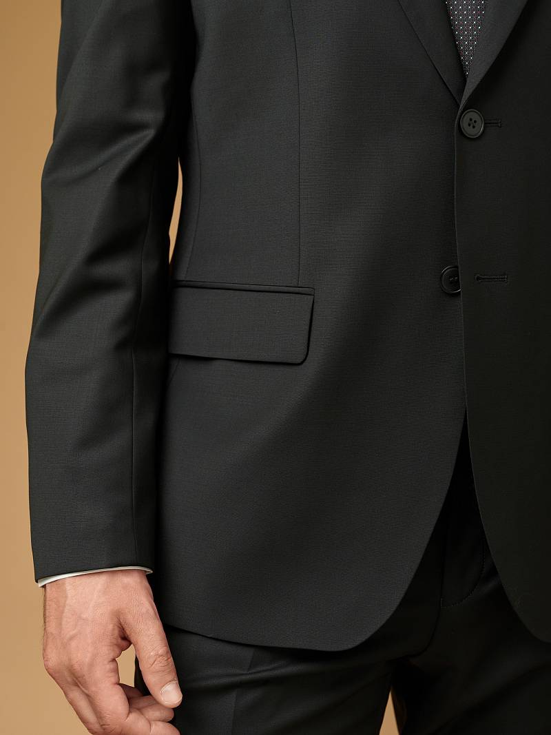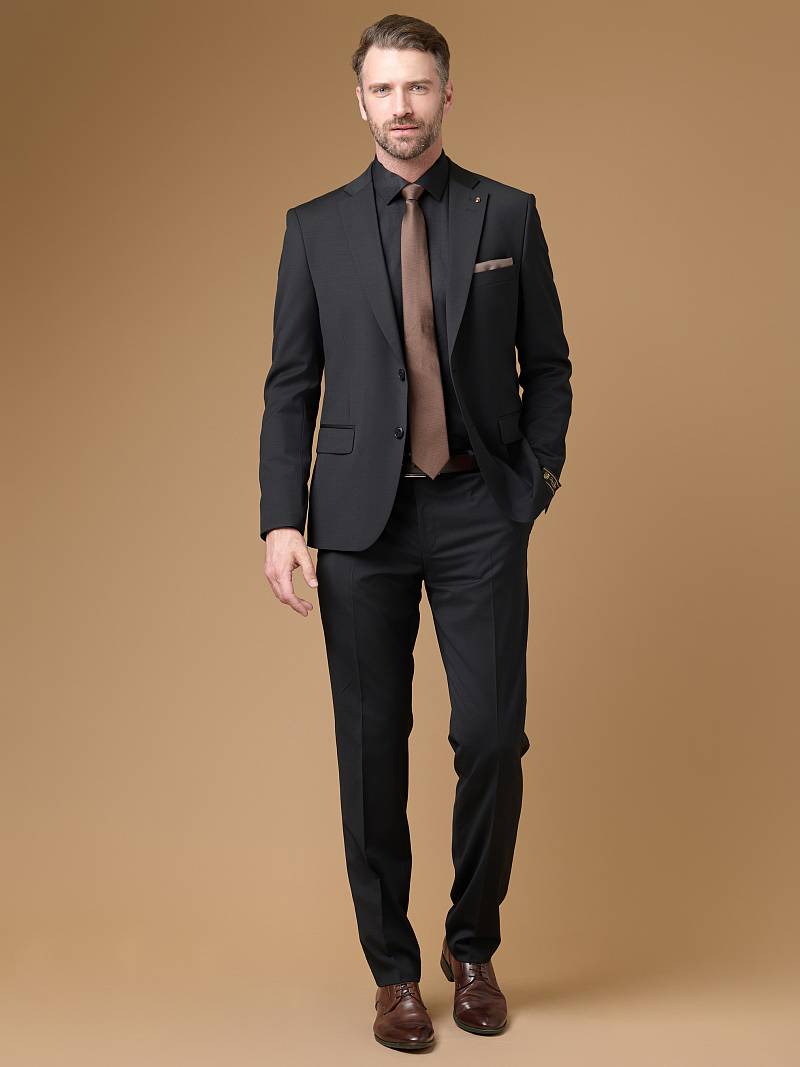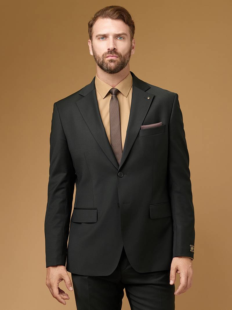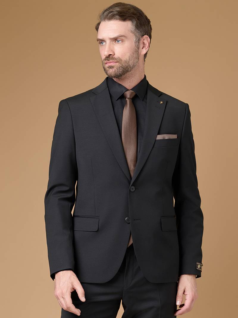 Classic fit (ПОЛУПРИЛЕГАЮЩИЙ СИЛУЭТ). Классический костюм двойка марки BAZIONI– это идеальное сочетание стиля и комфорта для мужчин. Для пошива лаконичного черного, однотонного костюма использовали премиальную шерсть с содержанием прочных волокон лайкры, которые не сковывают движение и обеспечивает дополнительный комфорт и удобство. Пиджак с классической шириной лацкана и мягкой линией плеч отлично сядет по фигуре, а расположенные по спинке две шлицы обеспечат дополнительный комфорт и свободу движения. Для придания образу торжественности подкладку нагрудного кармана можно использовать как платок-паше. Лацканы украсили небольшим значком в виде эмблемы бренда. Обработан пиджак шелковой подкладкой с двумя внутренними карманами. Брюки прямого кроя со стрелками и заниженной посадкой, с боковыми наклонными карманами и двумя задними карманами "в рамку". Верхний срез брюк обработан поясом с корсажной лентой и шлевками под ремень. Дизайнеры марки BAZIONI тщательно подходят к выбору материалов. Пуговицы подбираются и красятся индивидуально под каждую ткань, а прикладные материалы используют только от передовых производителей. Костюм мужской, классический, нарядный, повседневный, молодежный, для работы в офисе, модный, для мужа, сына, брата, на праздник.