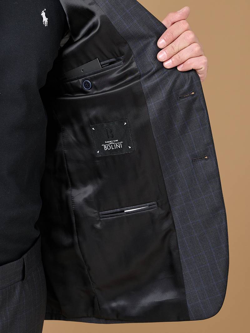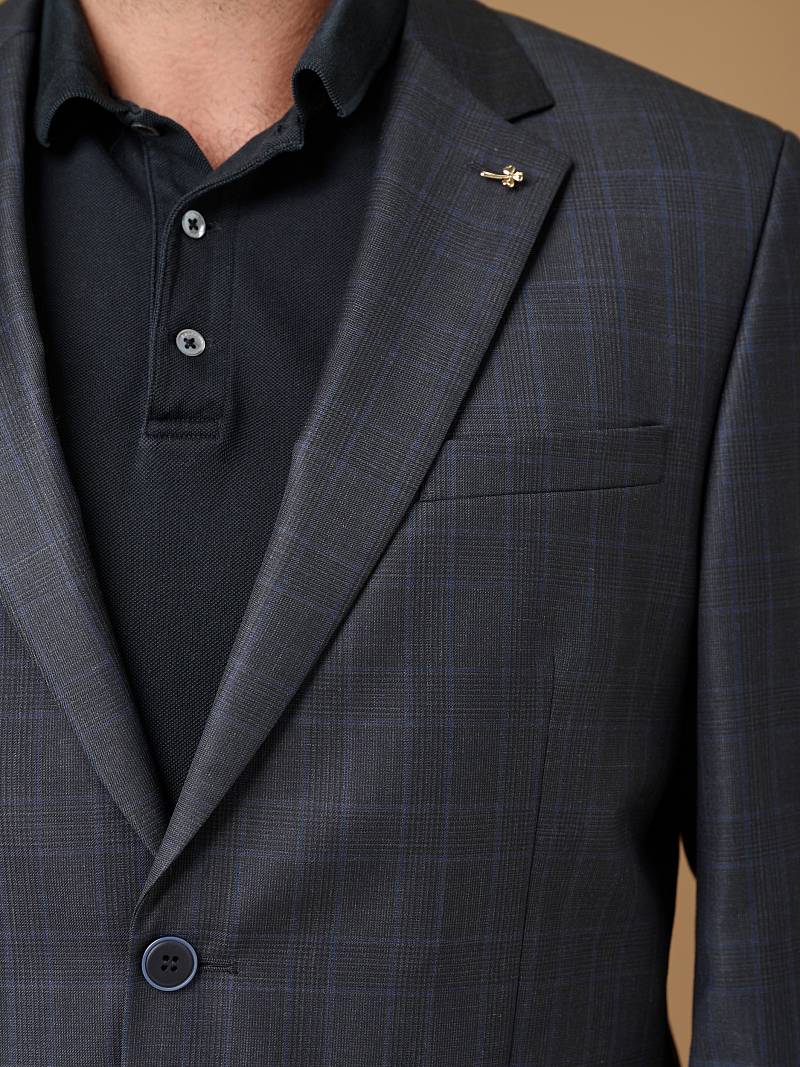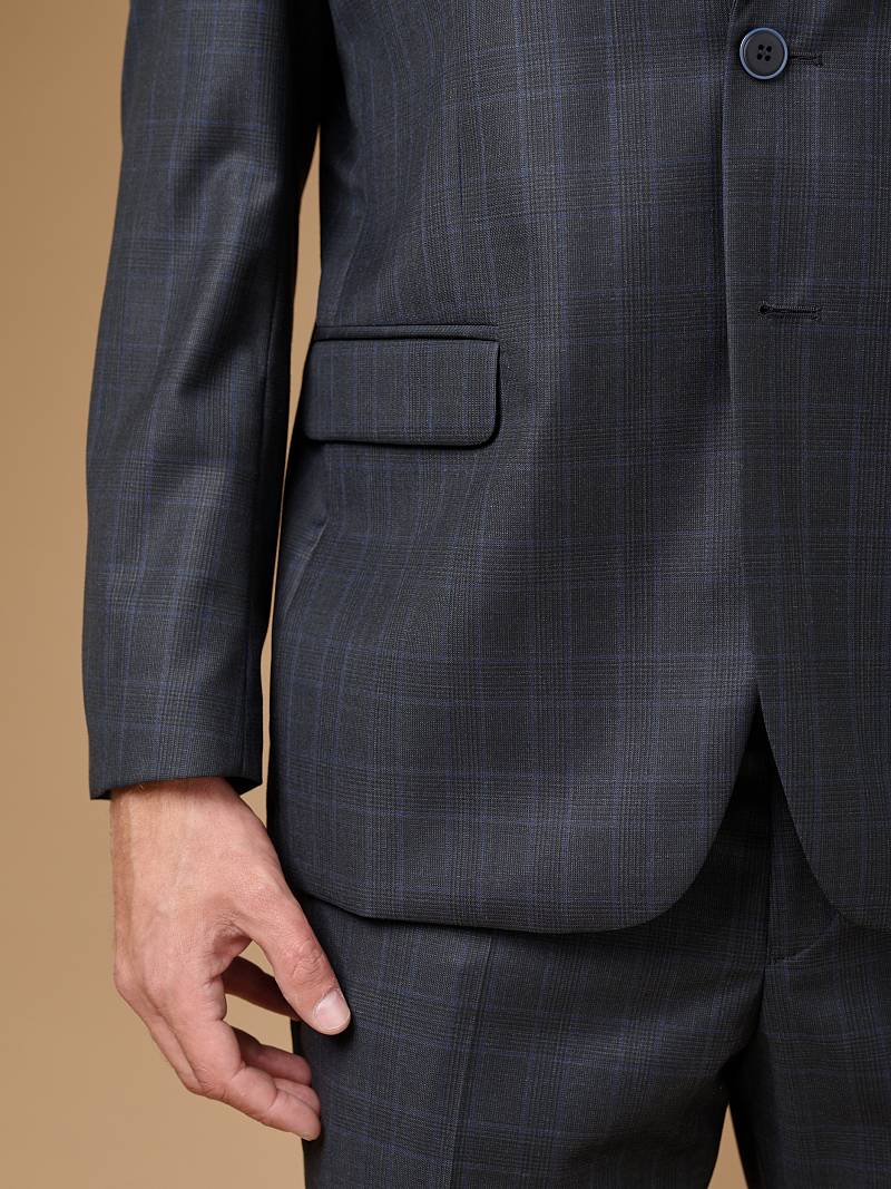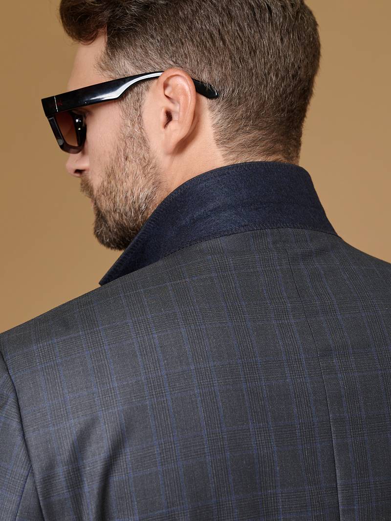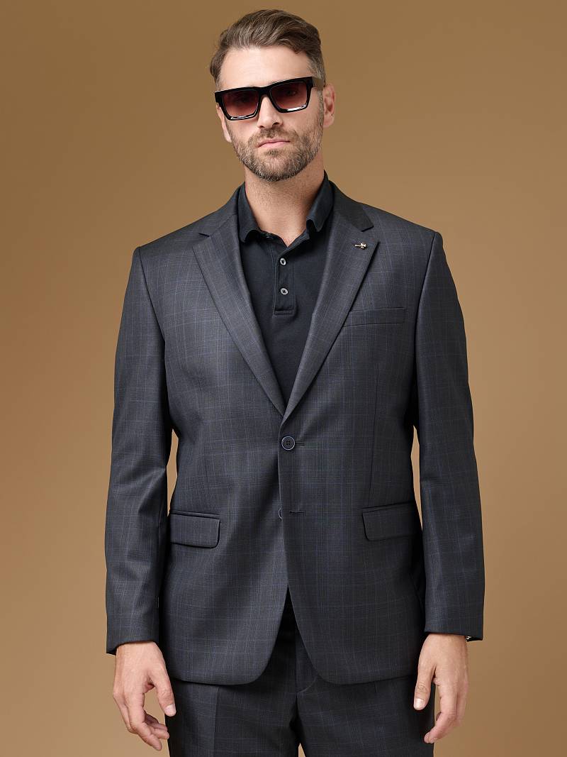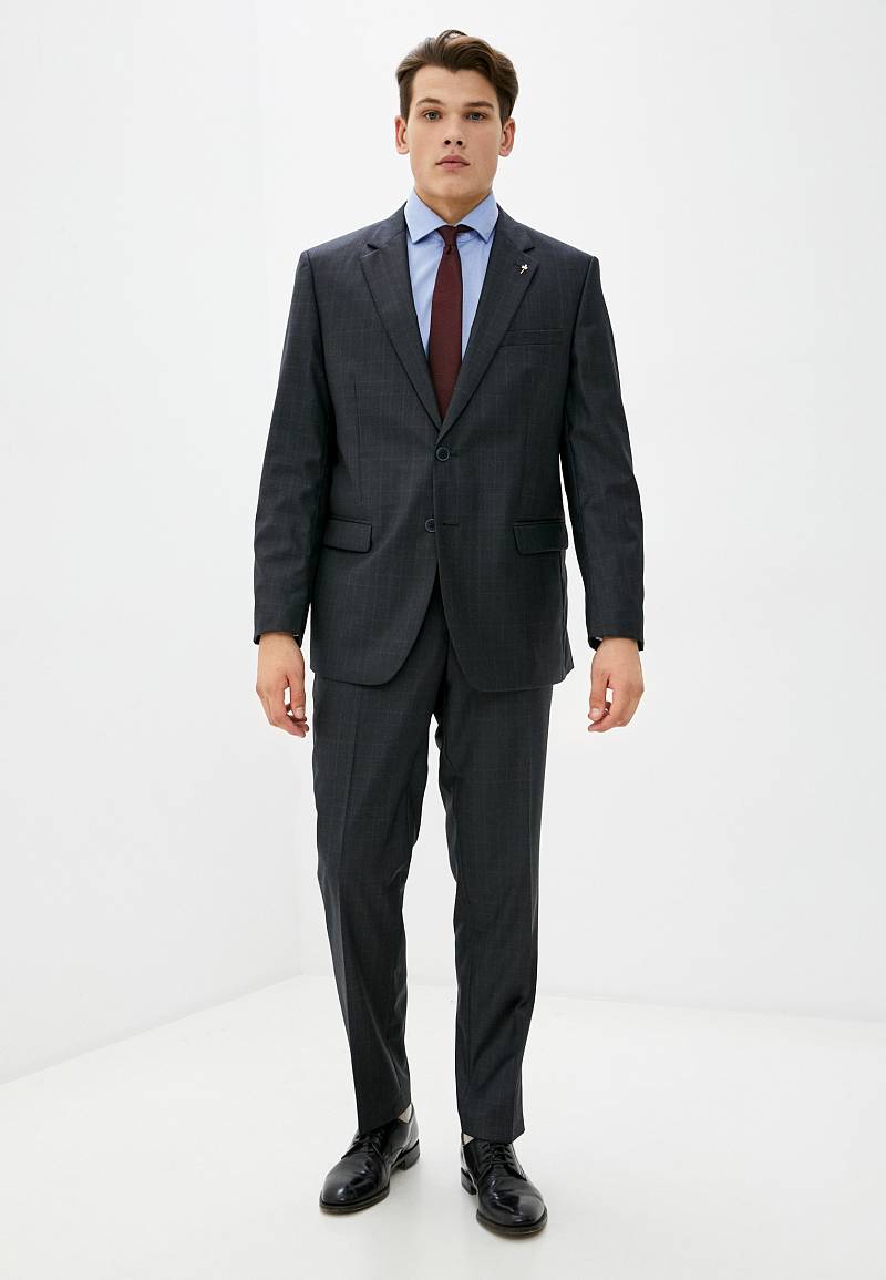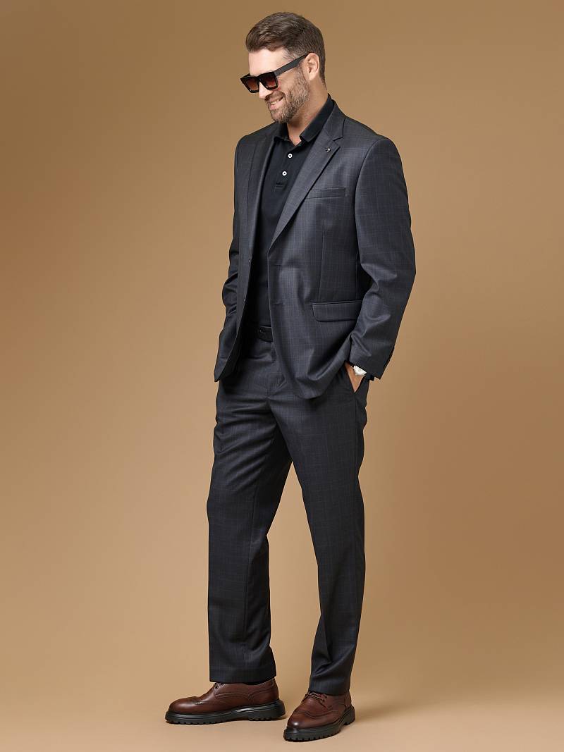 Классический костюм двойка Classic fit. Пиджак на две пуговицы, с боковыми и нагрудным карманами, по спинке две шлицы. Брюки без защипов с боковыми и одним задним карманом.