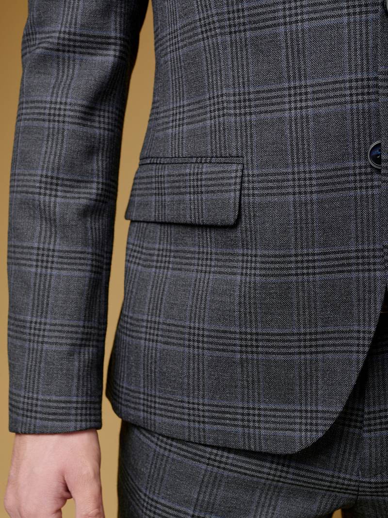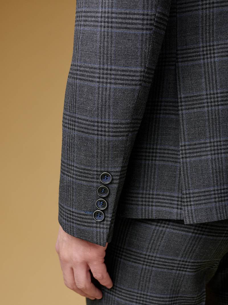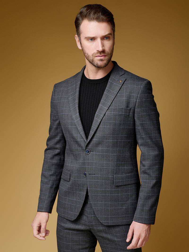 Классический костюм двойка Slim fit (ПРИЛЕГАЮЩИЙ СИЛУЭТ), рекомендуется брать на размер больше.Пиджак однобортный на две пуговицы, с двумя боковыми карманами с клапанами и нагрудной листочкой. Рукава втачные, двухшовные со шлицей и четырьмя декоративными пуговицами. По спинке расположены две шлицы. Пиджак на подкладке, с двумя внутренними карманами. Брюки без защипов, с боковыми наклонными карманами и двумя задними карманами «в рамку». Передние половинки на подкладке. Верхний срез брюк обработан поясом с корсажной лентой и шлевками под ремень. Застежка обработана на тесьму-молнию, с петлей-пуговицей на поясе и усилен металлическим крючком.