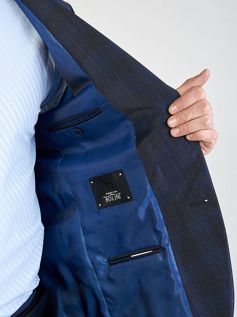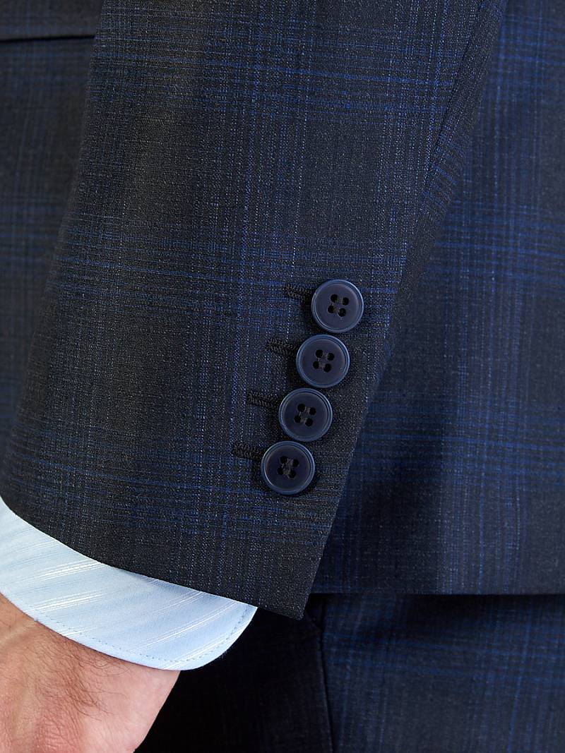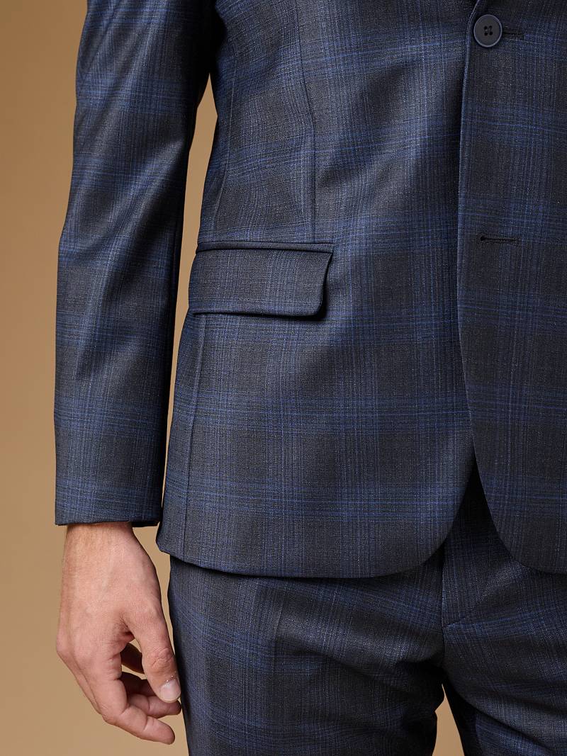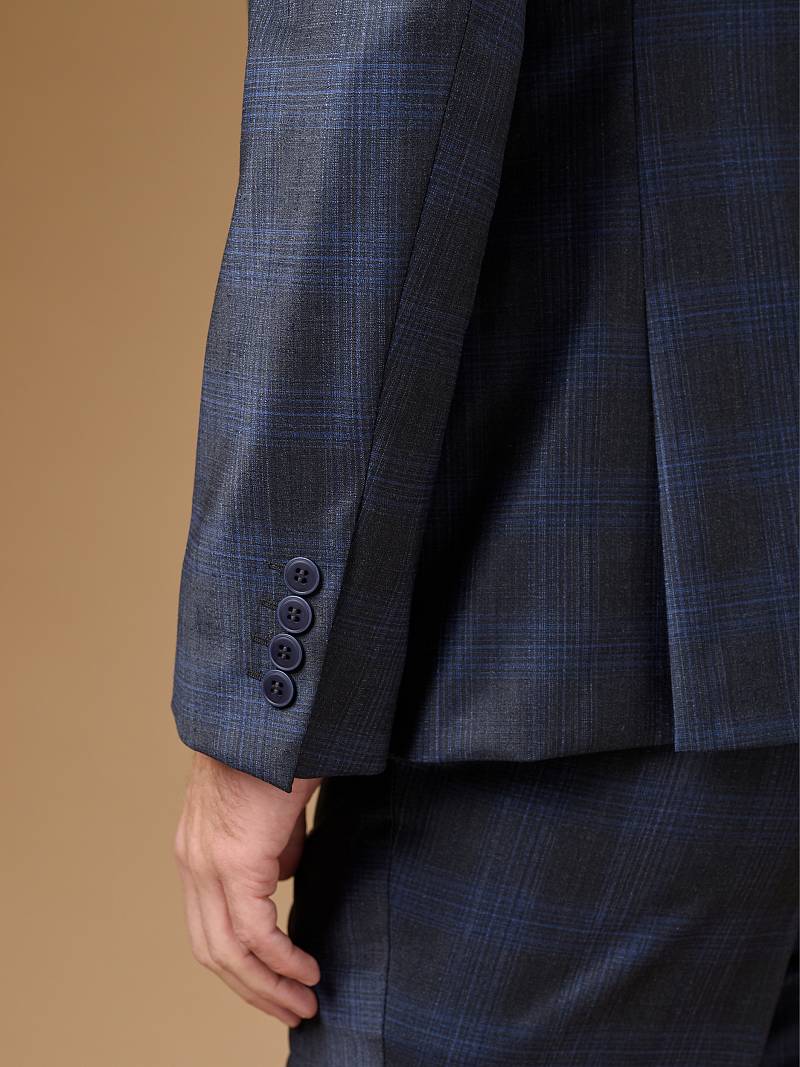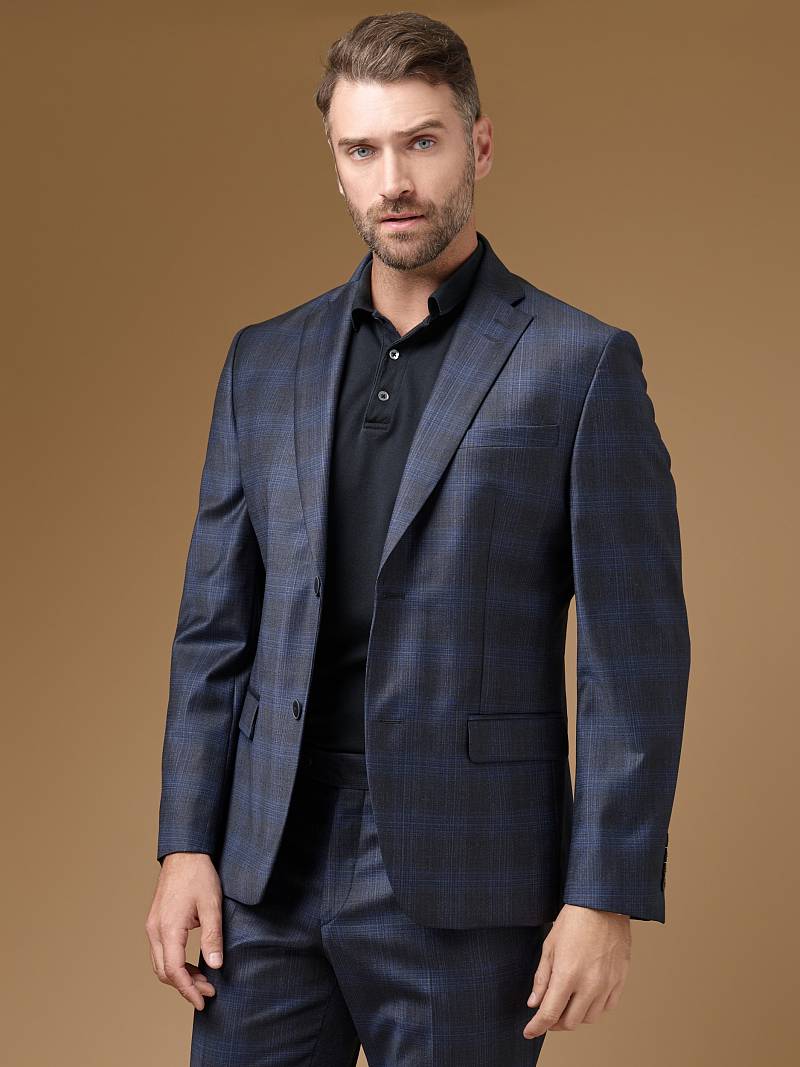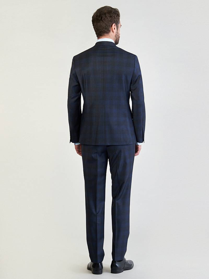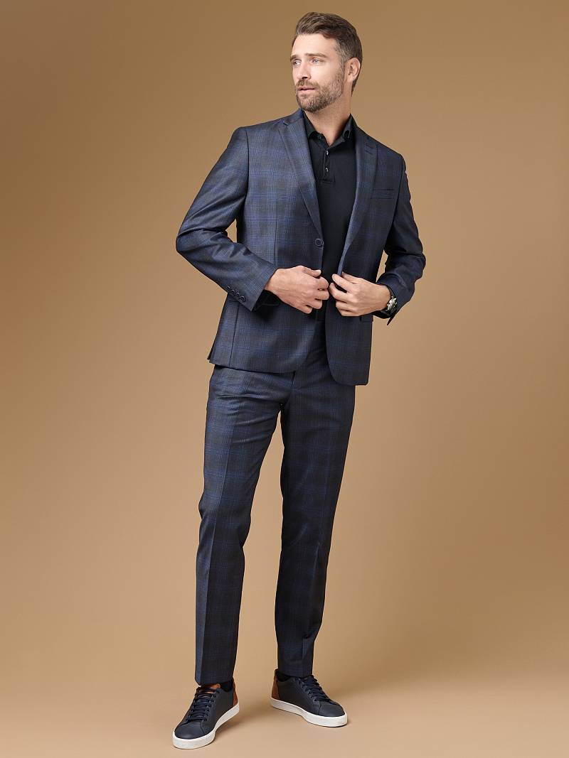 Классический костюм двойка Classic fit. Пиджак на две пуговицы, с боковыми и нагрудным карманами, по спинке две шлицы. Брюки без защипов с боковыми и одним задним карманом.