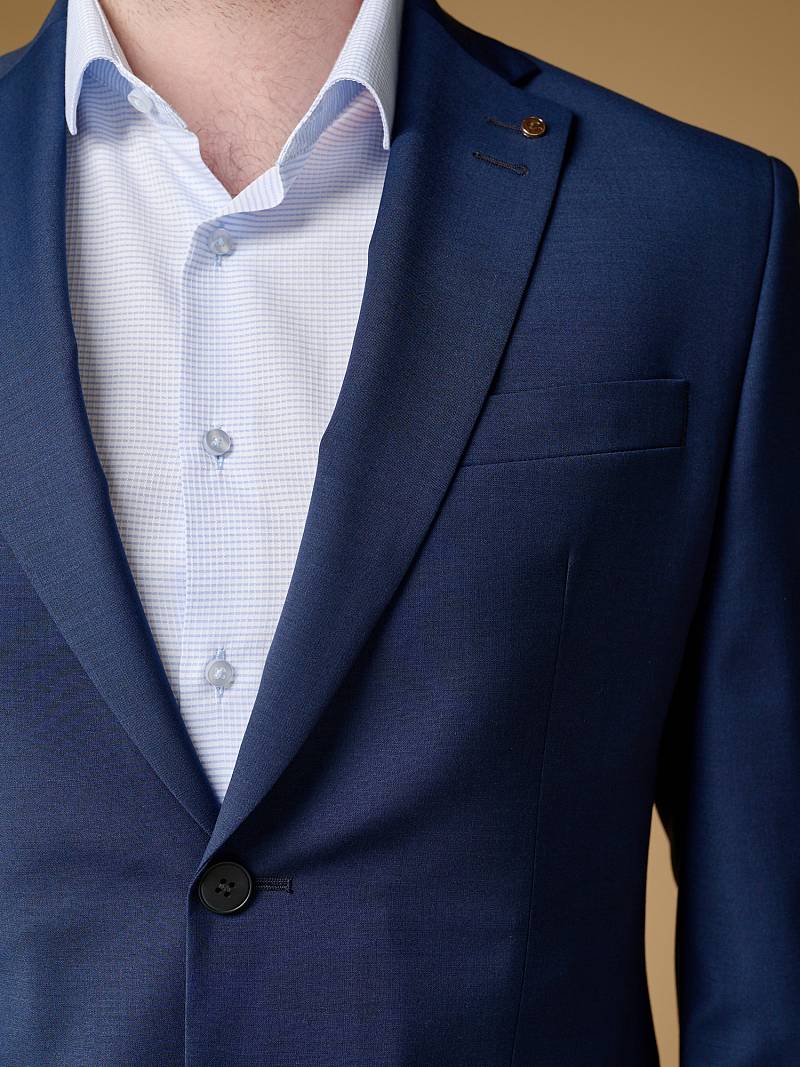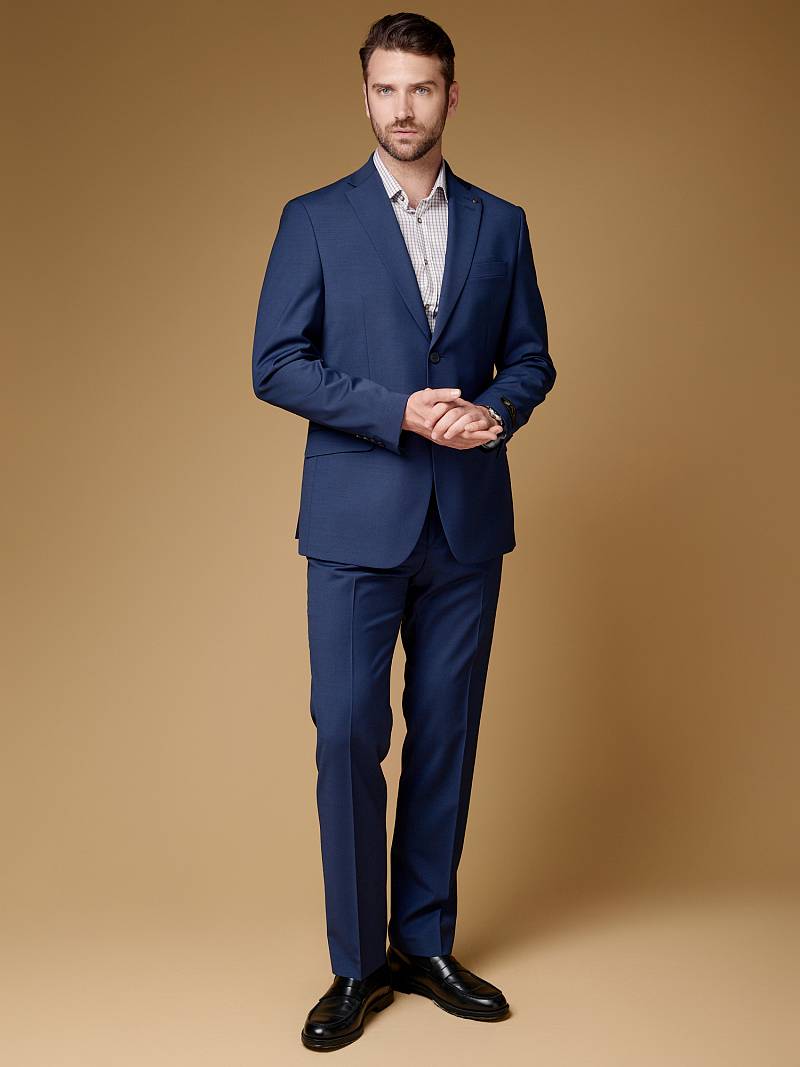 Classic fit (ПОЛУПРИЛЕГАЮЩИЙ СИЛУЭТ). Классический костюм двойка марки BAZIONI– это идеальное сочетание стиля и комфорта для мужчин. Для пошива лаконичного темно-синего, однотонного костюма использовали премиальную шерсть с содержанием прочных волокон лайкры, которые не сковывают движение и обеспечивает дополнительный комфорт и удобство. Пиджак с классической шириной лацкана и мягкой линией плеч отлично сядет по фигуре, а расположенные по спинке две шлицы обеспечат дополнительный комфорт и свободу движения. Для придания образу торжественности подкладку нагрудного кармана можно использовать как платок-паше. Лацканы украсили небольшим значком в виде эмблемы бренда. Обработан пиджак шелковой подкладкой с двумя внутренними карманами. Брюки прямого кроя со стрелками и заниженной посадкой, с боковыми наклонными карманами и двумя задними карманами "в рамку". Верхний срез брюк обработан поясом с корсажной лентой и шлевками под ремень. Дизайнеры марки BAZIONI тщательно подходят к выбору материалов. Пуговицы подбираются и красятся индивидуально под каждую ткань, а прикладные материалы используют только от передовых производителей. Костюм мужской, классический, нарядный, повседневный, молодежный, для работы в офисе, модный, для мужа, сына, брата, на праздник.