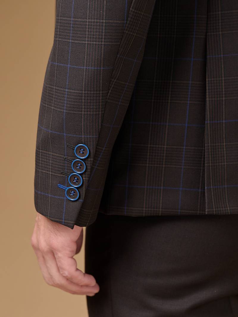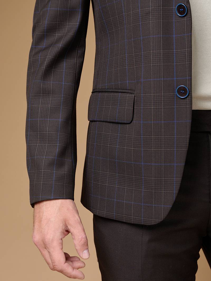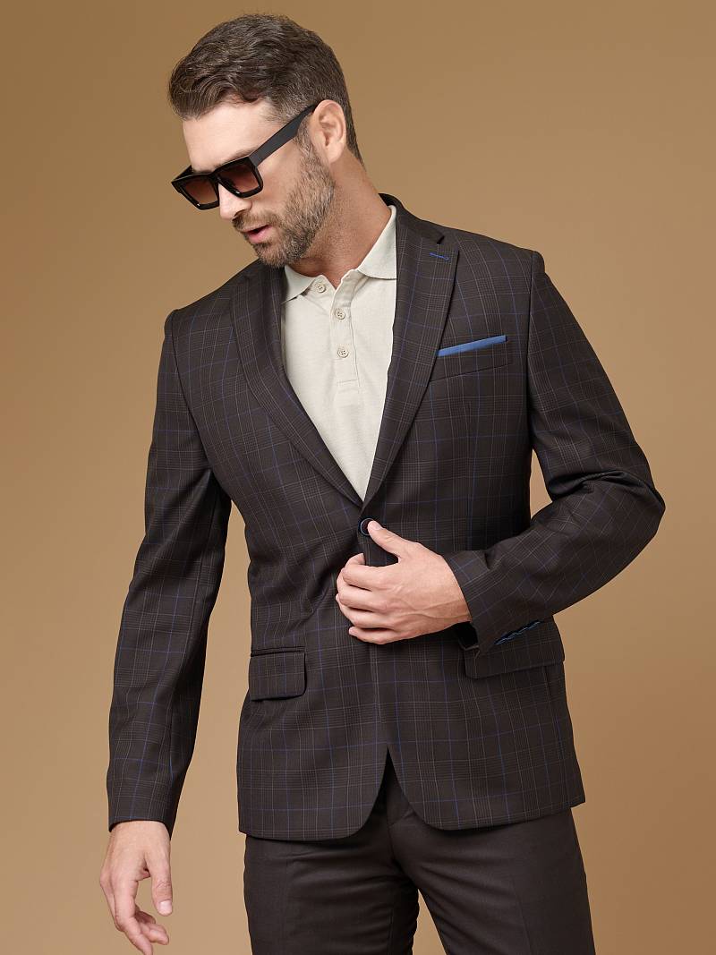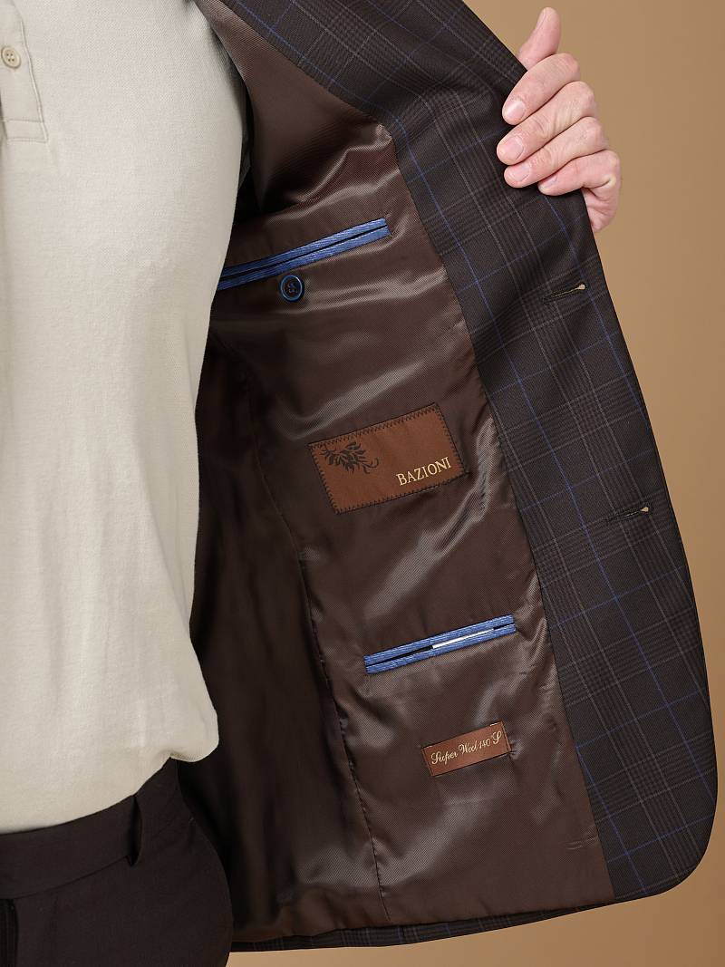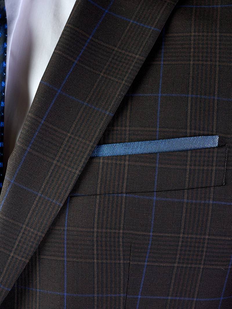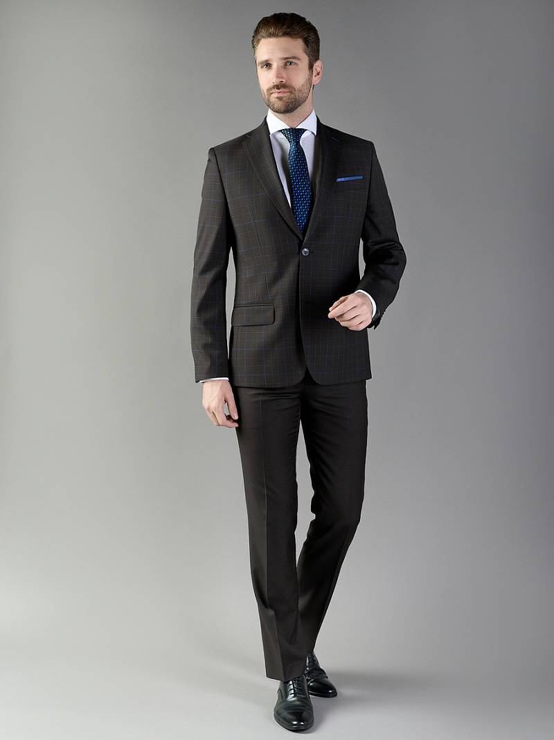 Классический костюм двойка Classic fit. Пиджак на две пуговицы, с боковыми и нагрудным карманами, по спинке две шлицы. Брюки без защипов с боковыми и одним задним карманом, выполнены из ткани компаньона.