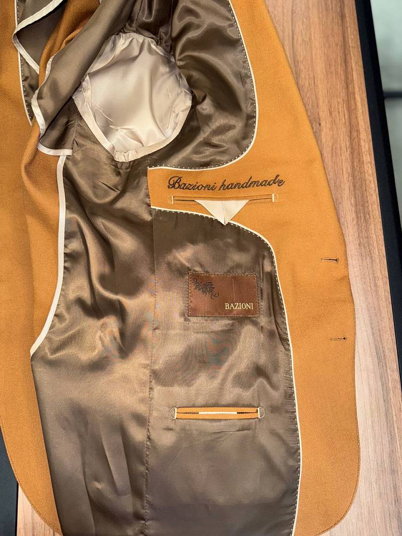 Представляем костюм, воплощающий саму суть итальянского летнего шика и непревзойденного мастерства. Костюм Bazioni из благородного льна – это не просто одежда, это инвестиция в вечную прохладу и безупречный силуэт. Изготовленный из льна высочайшего качества, костюм дарит непревзойденную легкость и комфорт даже в самый жаркий день. Натуральная фактура ткани с годами лишь обретает неповторимый шарм и индивидуальность. Пиджак на полуподкладке обеспечивает идеальную свободу движений, легкость и оптимальную воздухопроницаемость, сохраняя при этом безукоризненную форму. Выполненная вспушка по воротнику, лацканам, накладным карманам и рабочие петли на рукавах - штрих, отличающий костюм от массового производства. Истинное благородство кроется в деталях. Фирменная надпись «Bazioni» изящно вышита под воротником и внутри пиджака еще один эксклюзивный элемент и напоминание об исключительном качестве, стоящих за этим изделием. Костюм Bazioni создан для ценителей вечных ценностей. Это воплощение средиземноморской непринужденности, облаченное в безупречный крой и отшлифованное поколениями мастеров. Он станет вашим верным спутником на десятилетия, приобретая характер и становясь неотъемлемой частью вашего стиля.