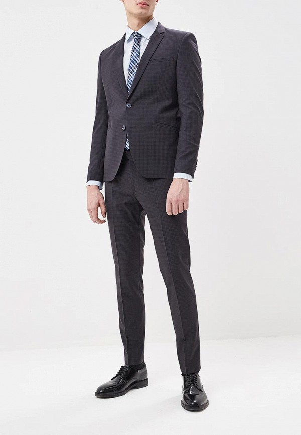 Классический костюм двойка Ultra slim fit. Пиджак на две пуговицы, с боковыми и нагрудным карманами, по спинке две шлицы. Брюки без защипов с боковыми и двумя задними карманами.