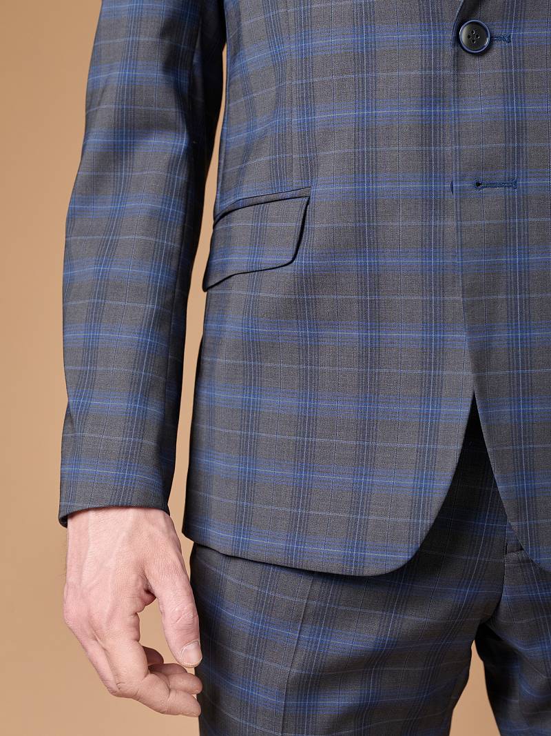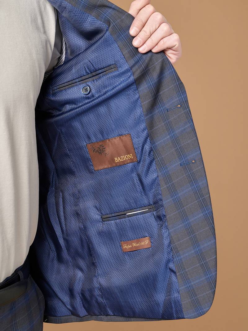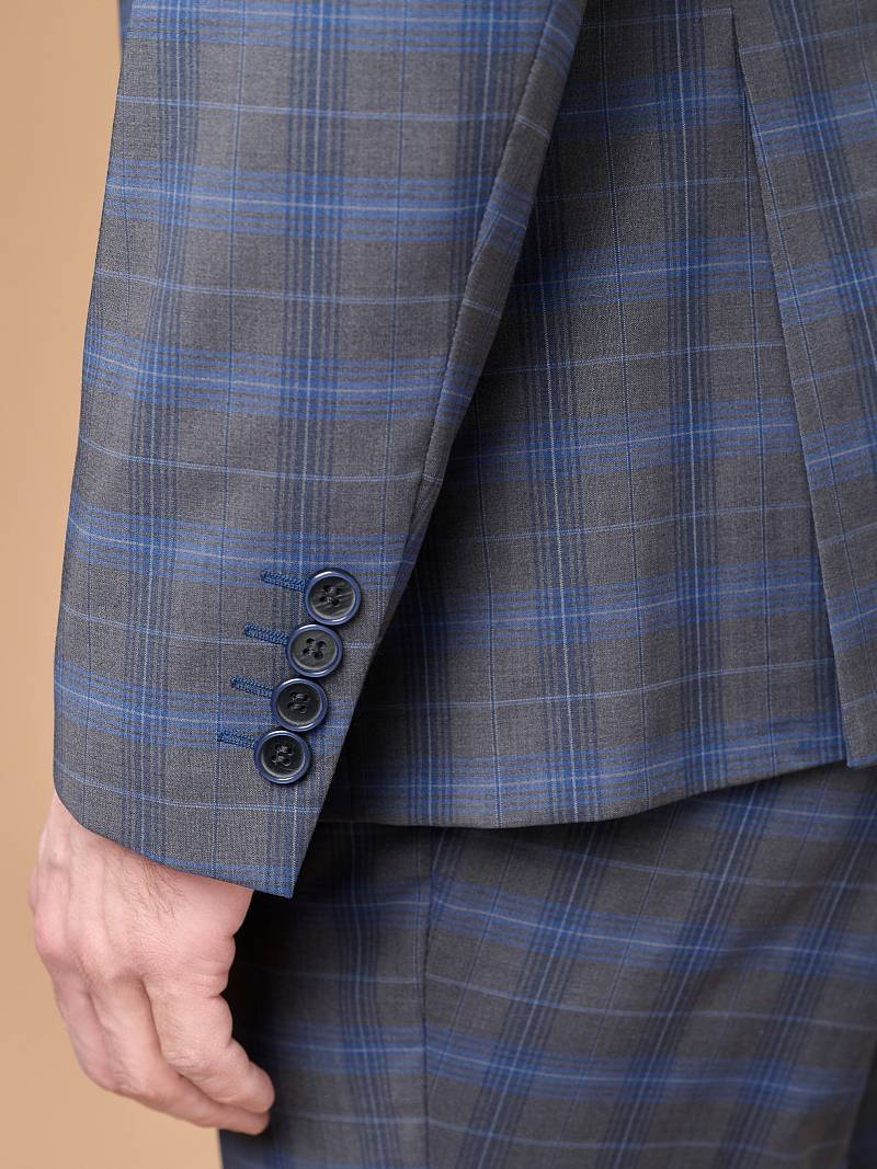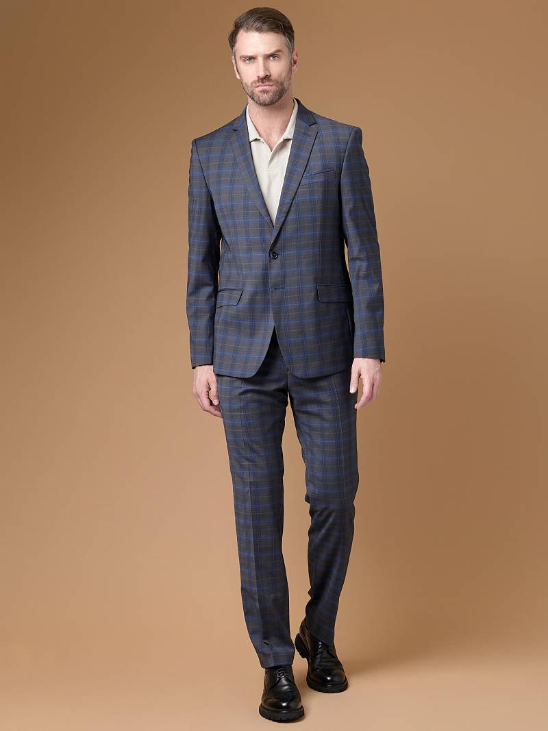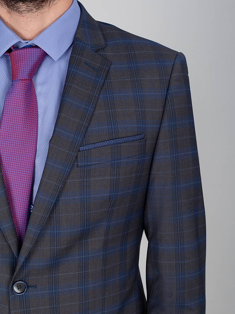 Классический костюм двойка Slim fit. Пиджак на две пуговицы, с боковыми и нагрудным карманами, по спинке две шлицы, в нагрудном кармане декоративный платок. Брюки без защипов с боковыми и одним задним карманом.